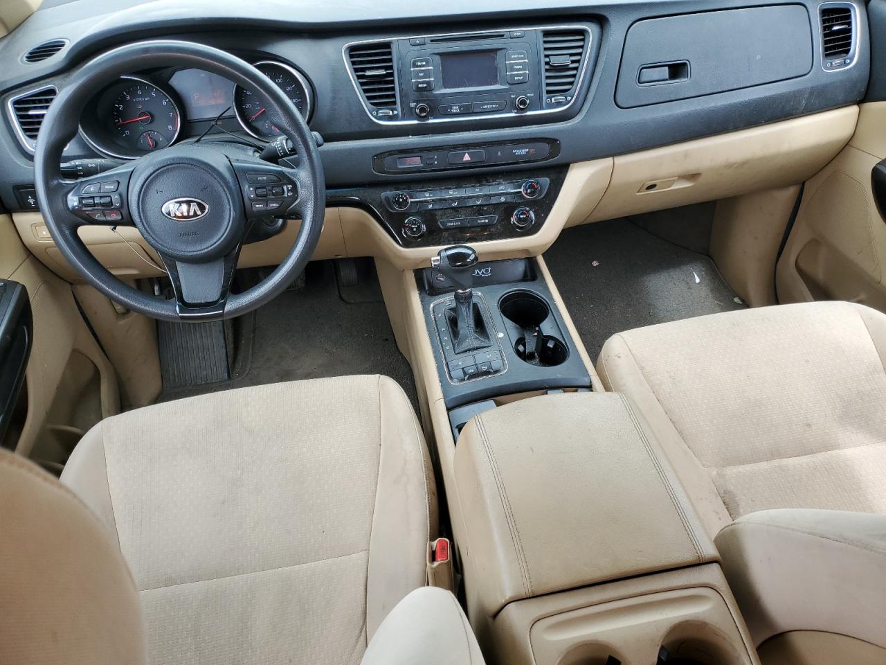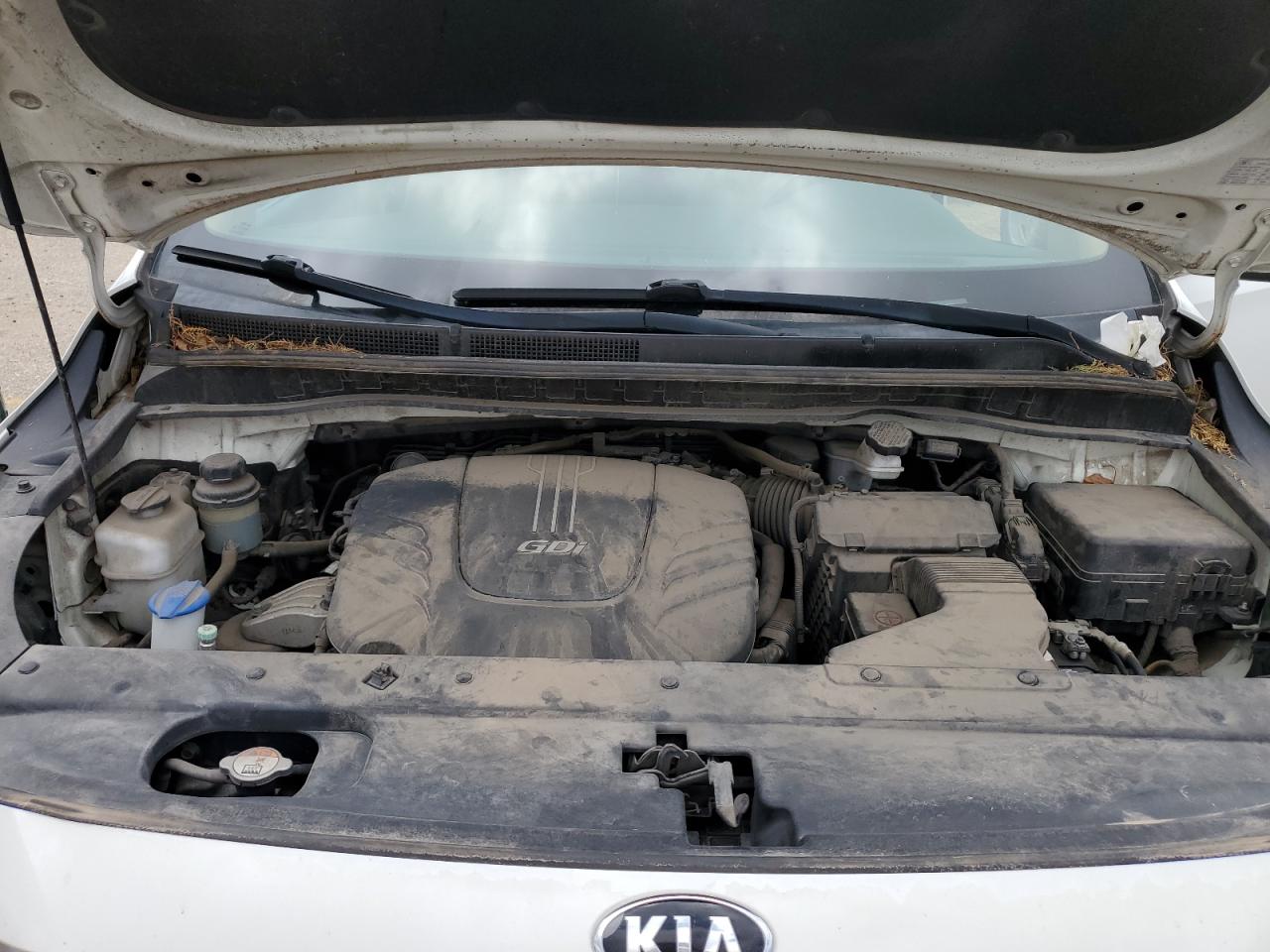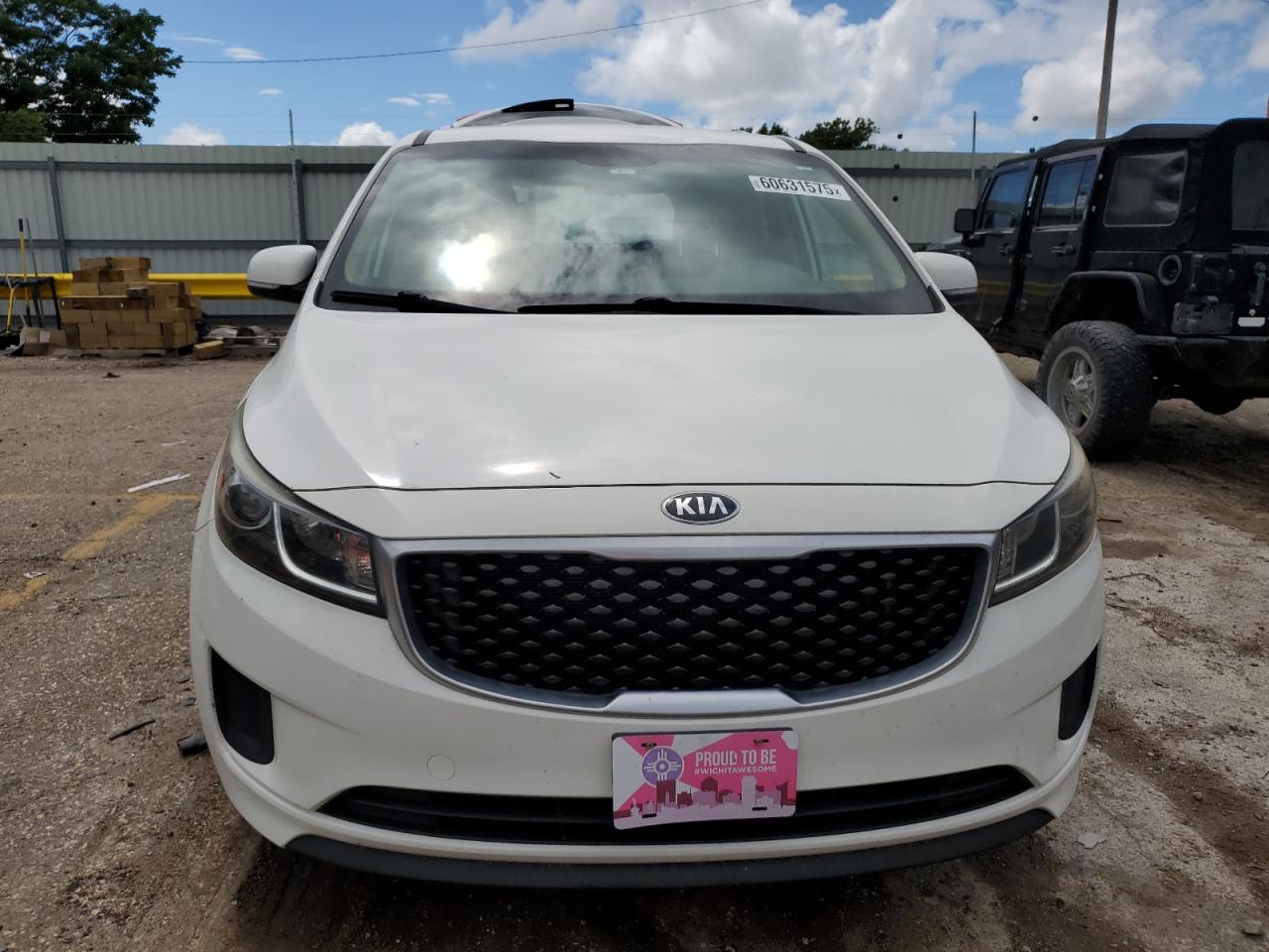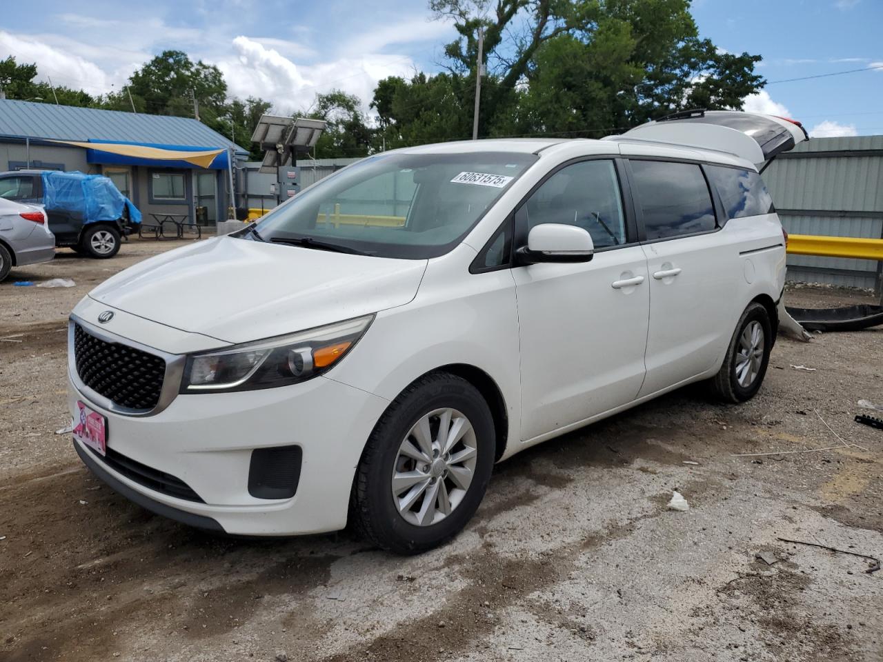 FairKIA SEDONA LX 2016, white color, Run & Drive Verified. Primary damage is REAR END, with no secondary damage. The car's exterior shows moderate damage, particularly at the rear, while the interior is in good condition. The vehicle is drivable, but repairs are needed.