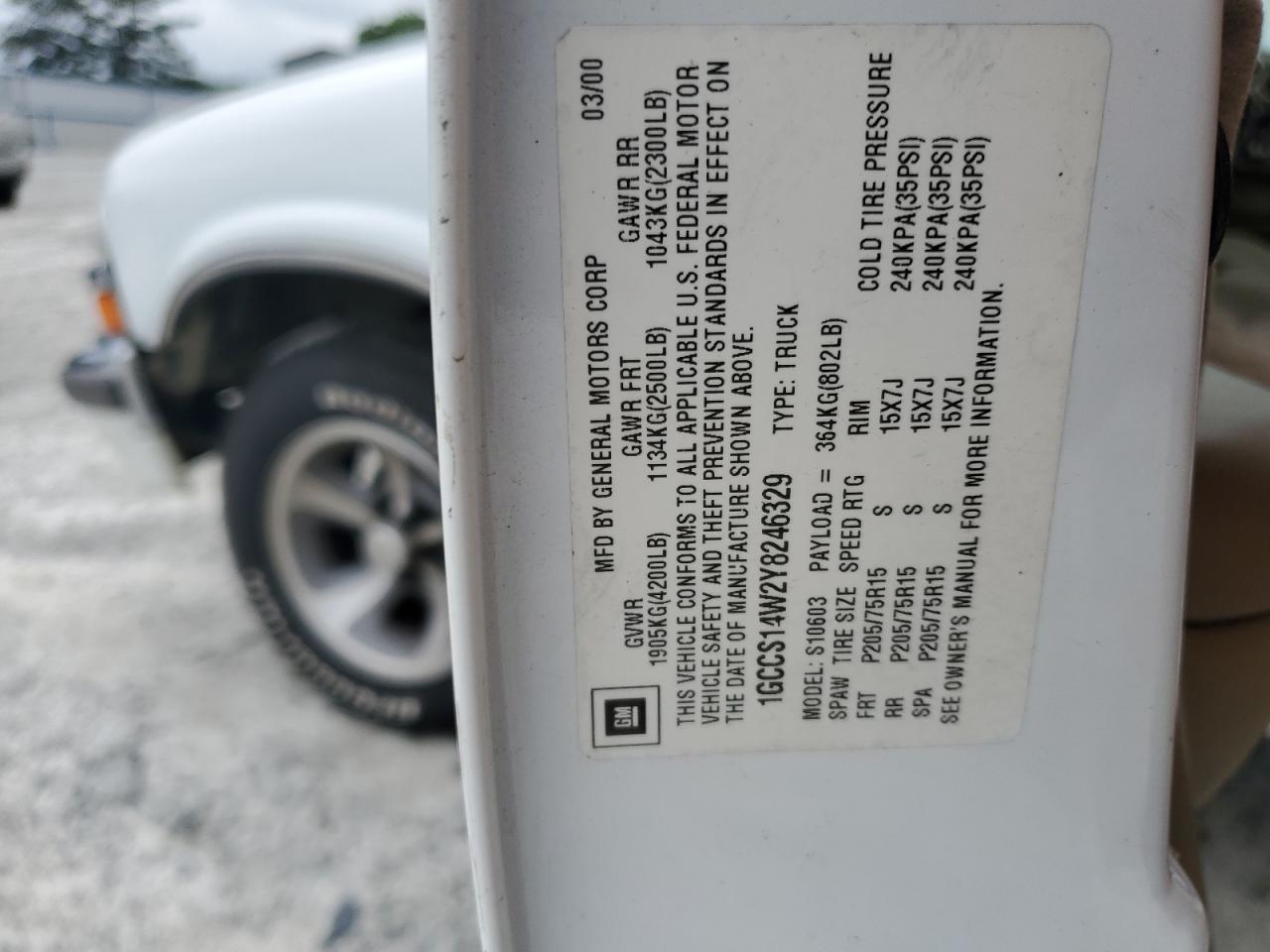 FairThe CHEVROLET S TRUCK S1 2000 is a white pickup truck with visible damage. The primary damage is to the rear end, and there's secondary damage to the front end. The vehicle has a Run & Drive Verified status.
