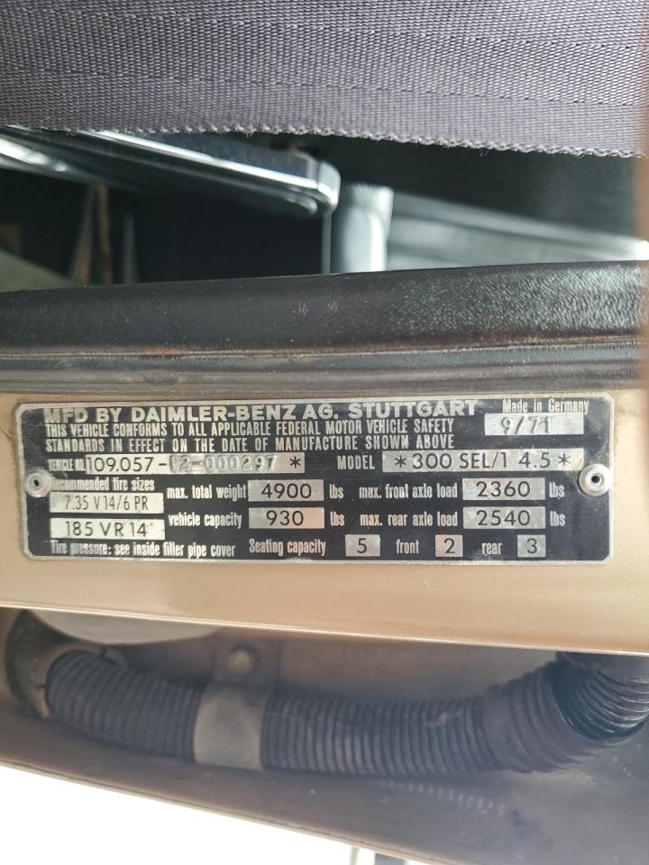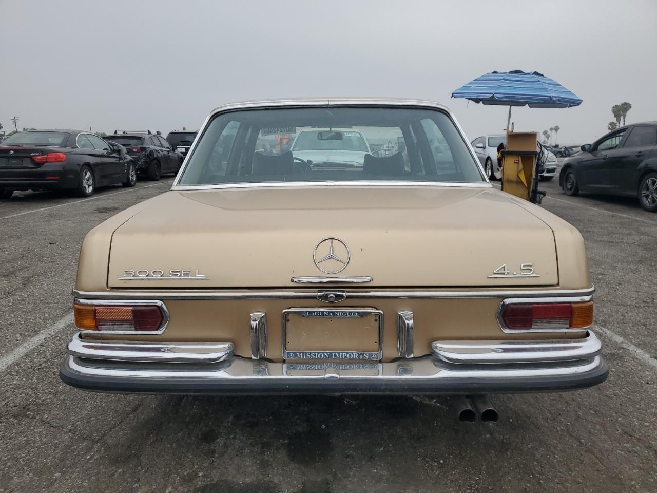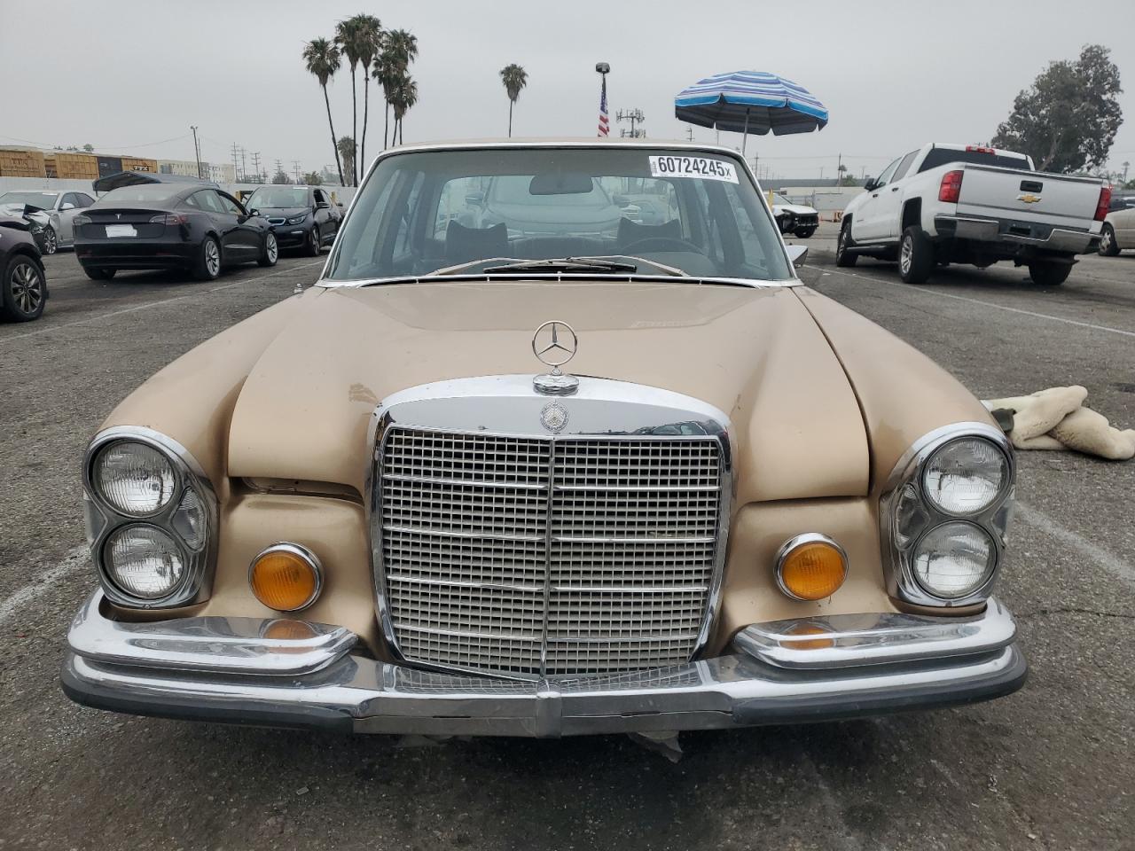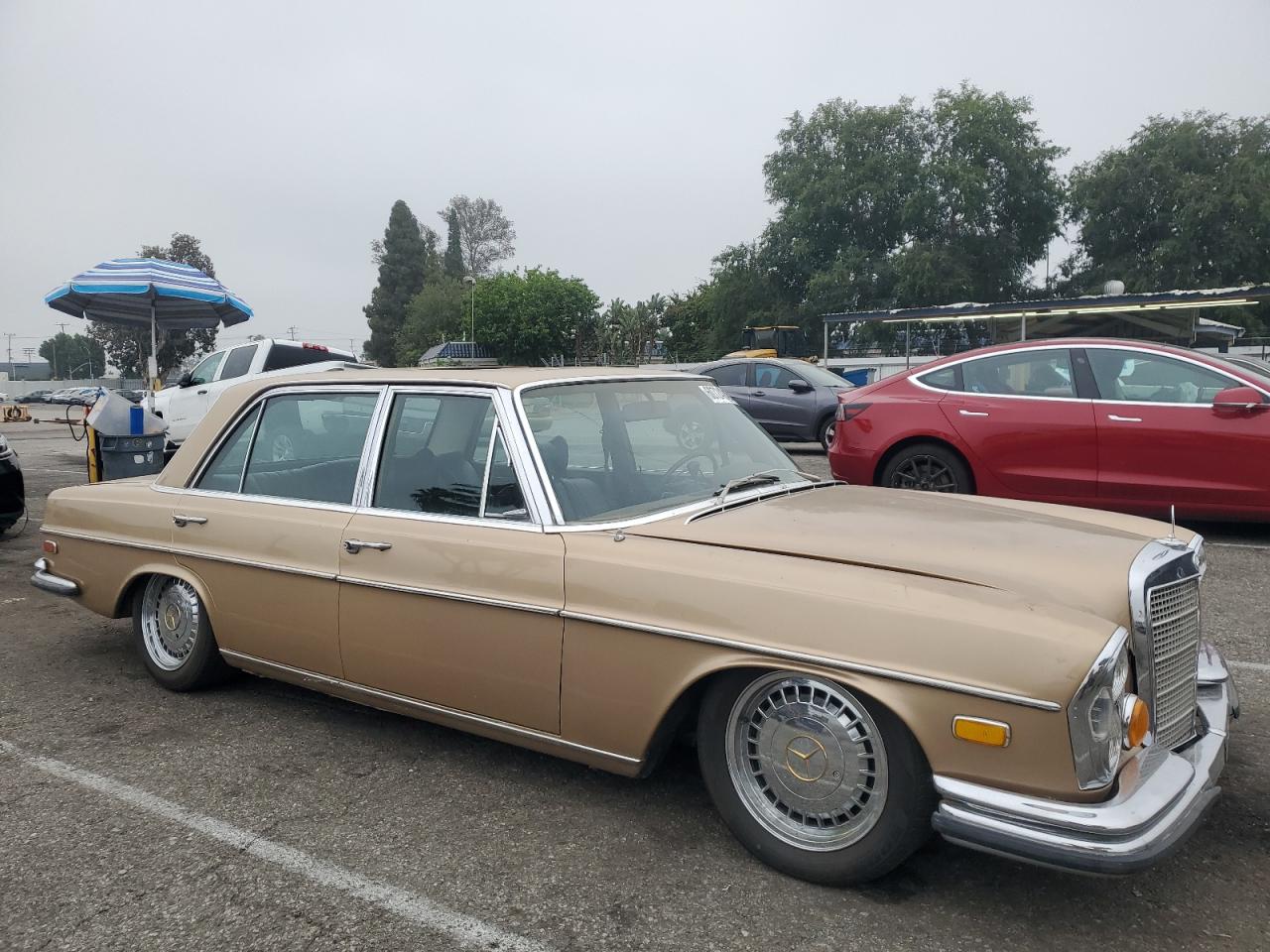 GoodThe 1972 Mercedes-Benz 300SEL 4.5 is a classic car with a gold exterior. The car's start code is Run & Drive Verified. The vehicle shows signs of cosmetic wear and tear, with minor scratches and dents. The wheels and lights appear to be in fair condition. The interior shows wear consistent with its age, with some visible damage to the seats and trim. The car is drivable, but requires some cosmetic repairs.