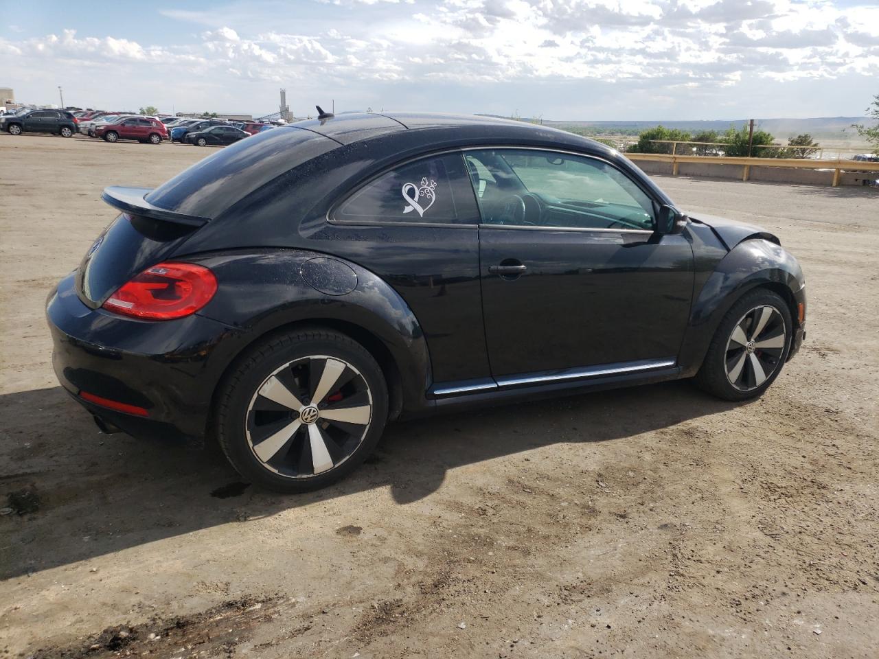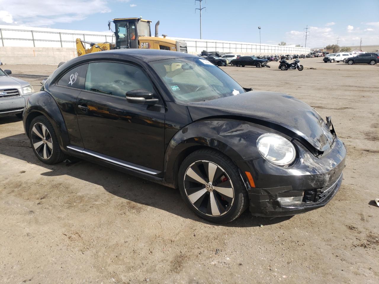 FairThis is a black 2012 VOLKSWAGEN BEETLE TURBO with front end damage. The car starts and drives. The primary damage is to the front end, with no secondary damage noted. The wheels, lights, and glasses appear to be intact, but the front end damage suggests that body panels require repair or replacement. The interior shows signs of wear, but overall is in good condition.