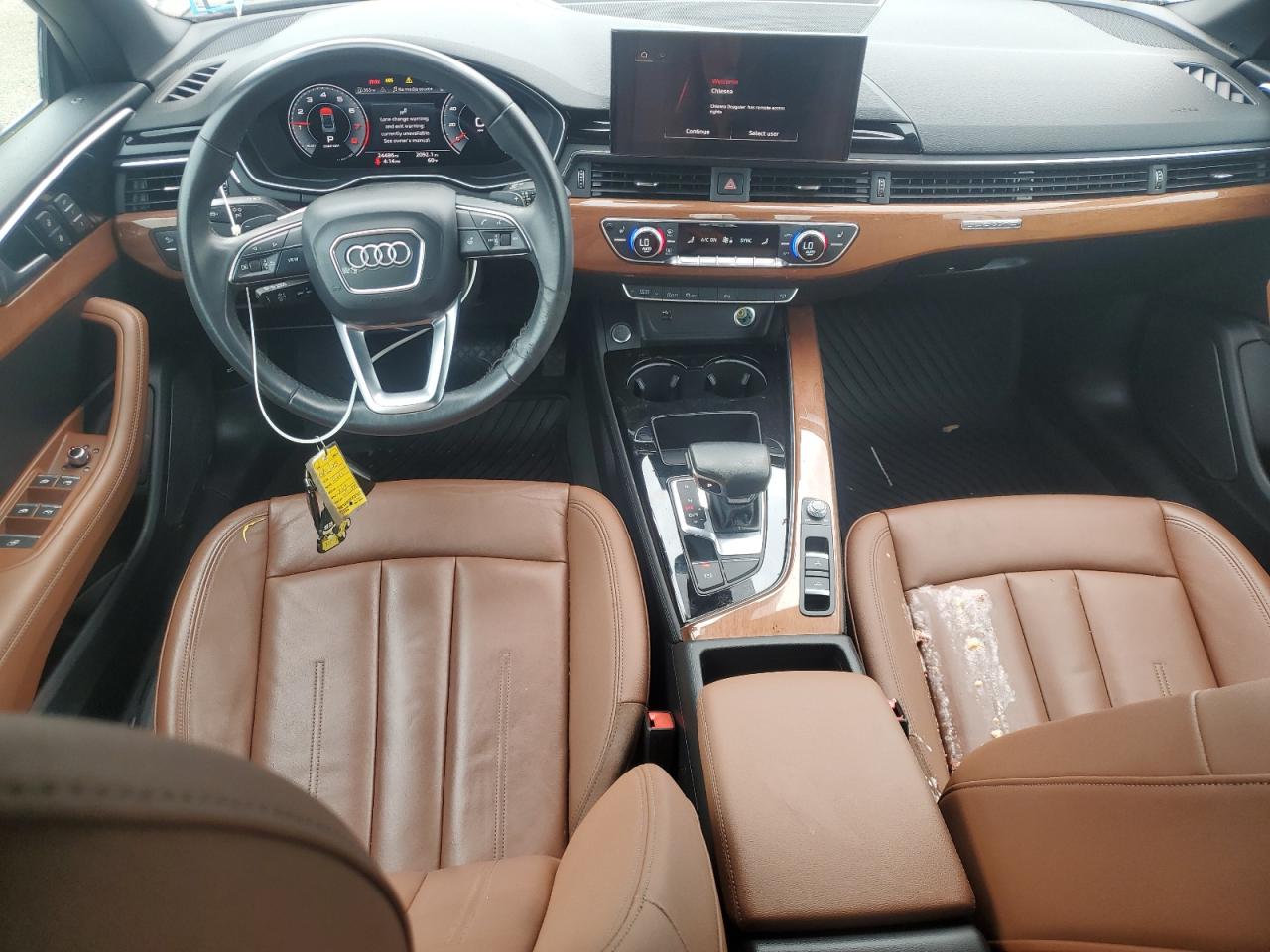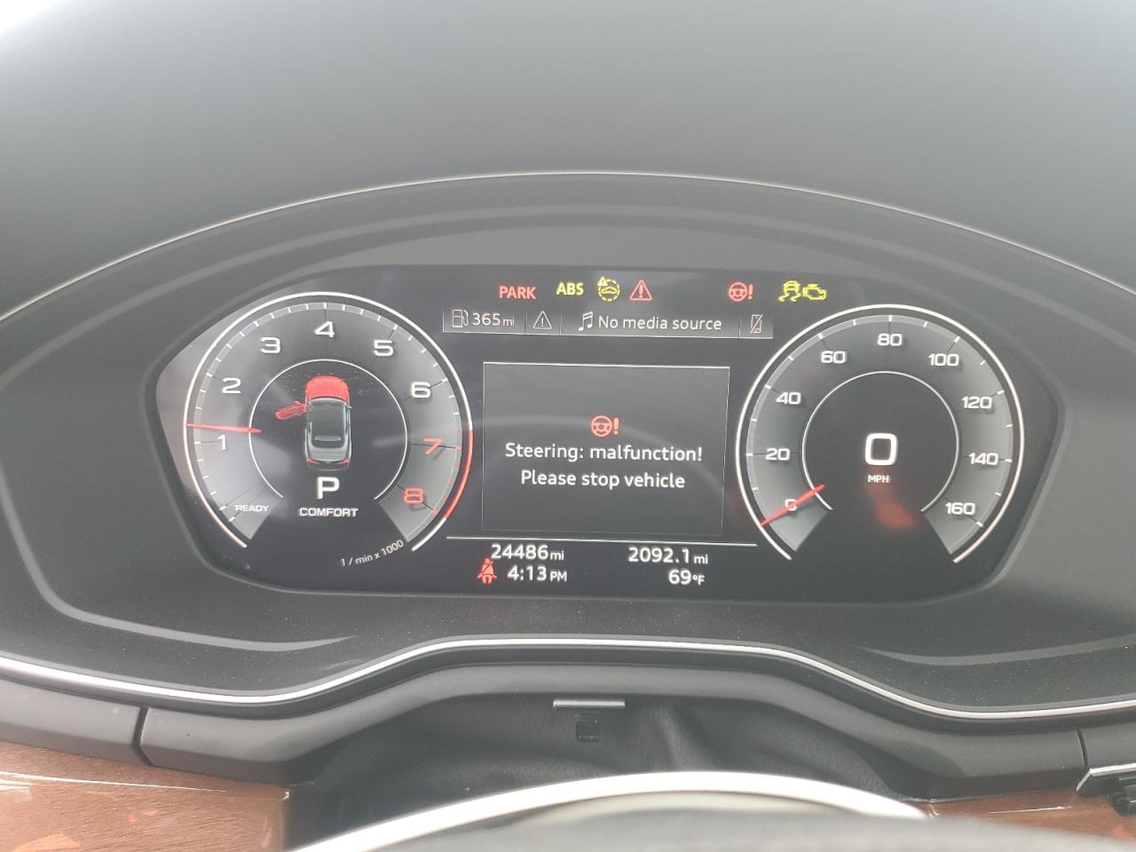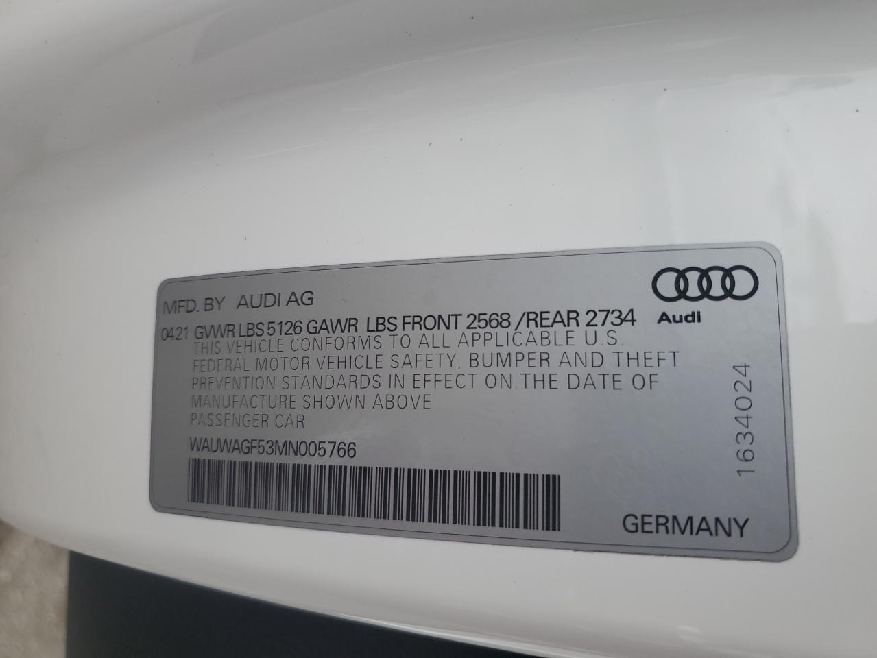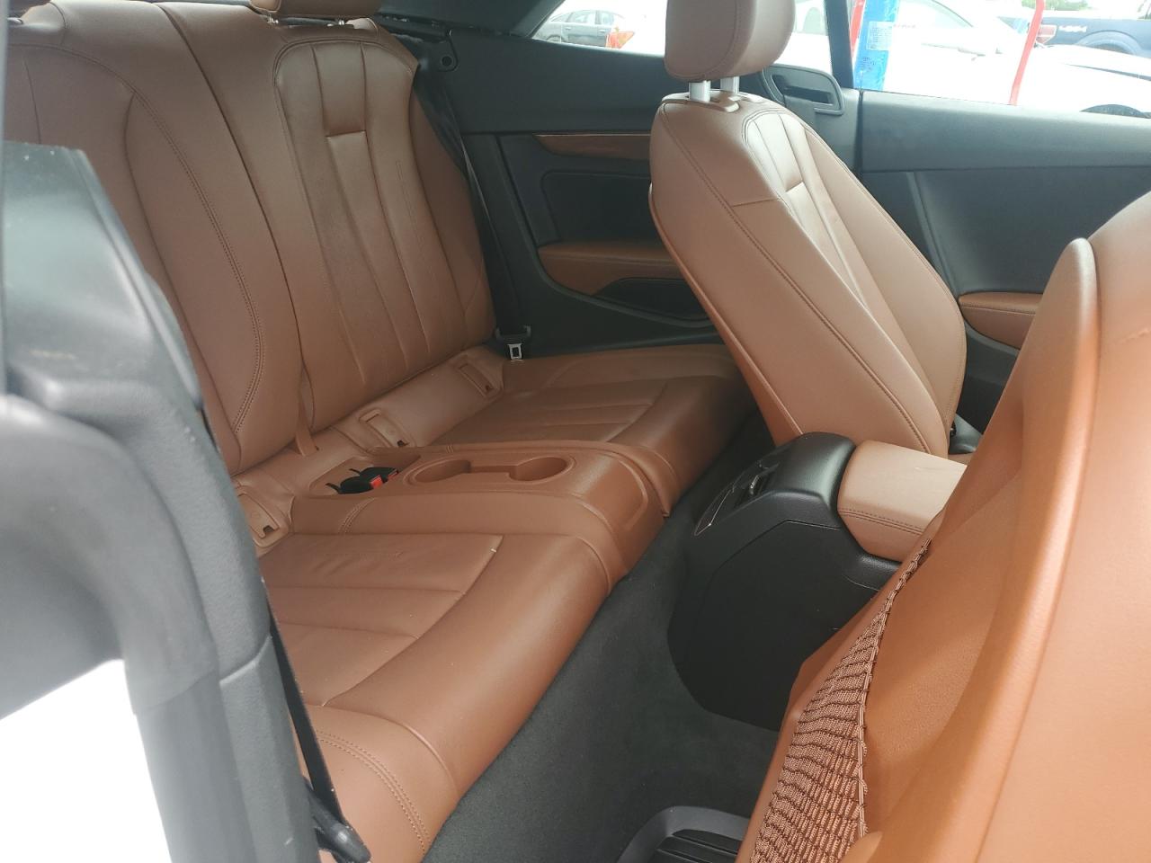 FairThis is a damaged 2021 Audi A5 Premium convertible. It has significant front-end and side damage, with a white exterior and a black convertible top. The interior features brown leather seats and wood trim. The car is listed as Run & Drive Verified.