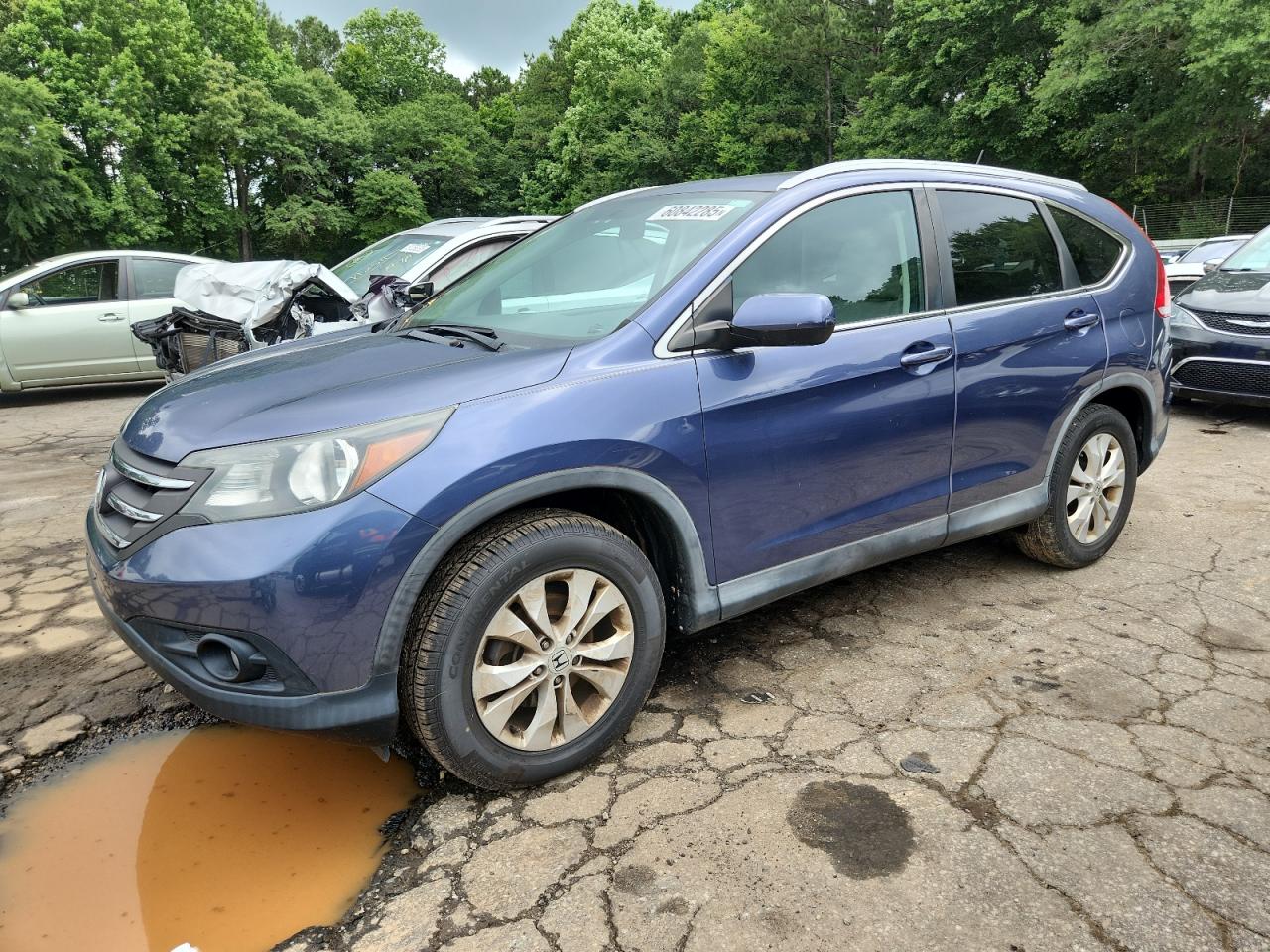 FairThe 2014 Honda CR-V EXL, blue in color, presents with rear-end damage. The vehicle is a Run & Drive Verified unit. Despite the rear impact, the car appears drivable, with no immediate mechanical issues visible in the provided images. Interior shows wear. The lights and glasses appear intact. Summary: The car has rear-end damage and falls under the 'Body' vehicle damage category. The overall condition is 'Fair,' reflecting the impact but also indicating the vehicle's drivability. Interior condition is Good. Search Query: 2014 Honda CR-V EXL, body damage, rear-end collision, drivable, blue, Fair condition, damaged car for sale, Honda SUV, salvage title, repairable vehicle.