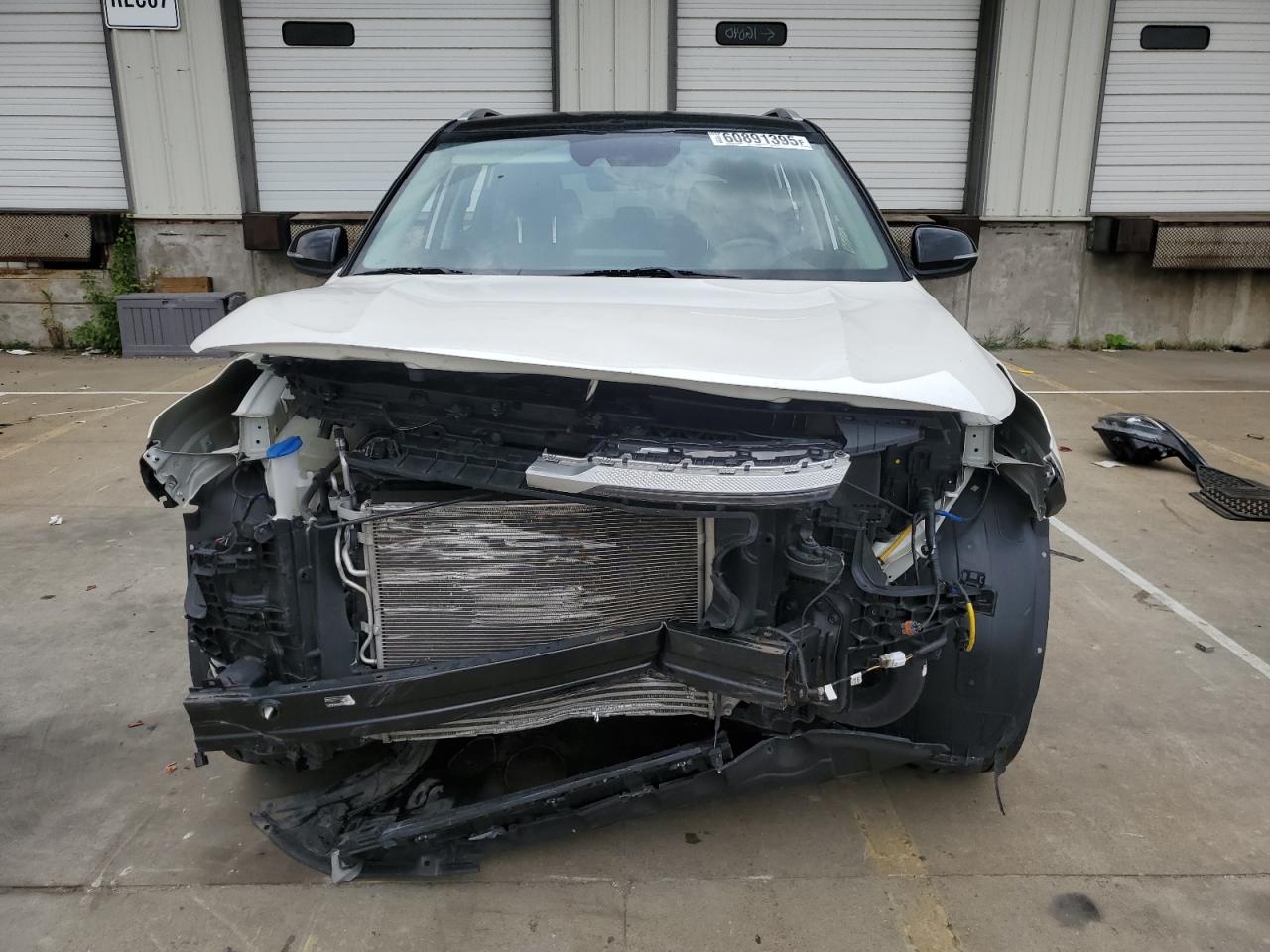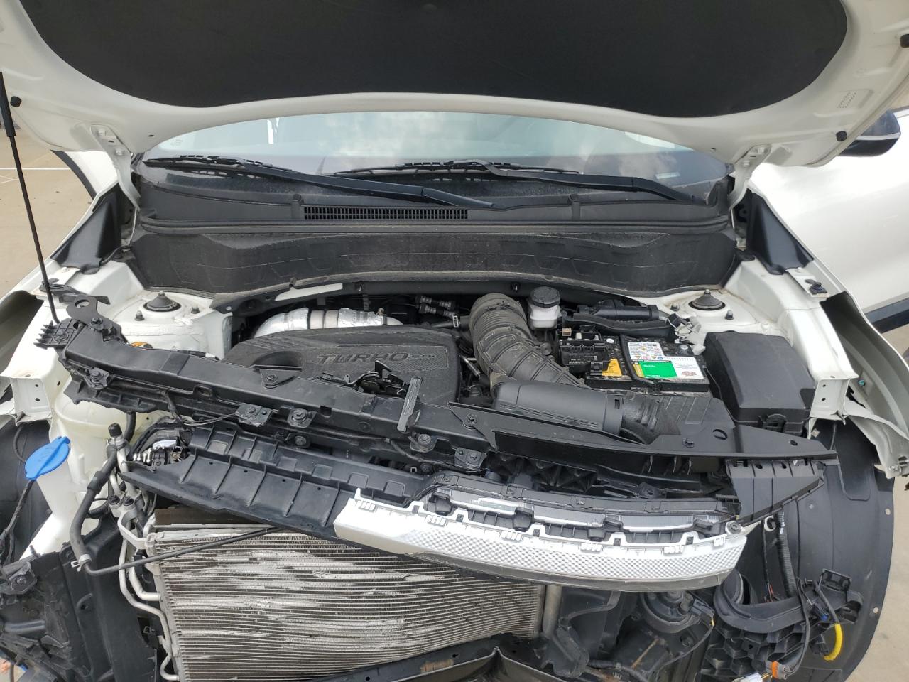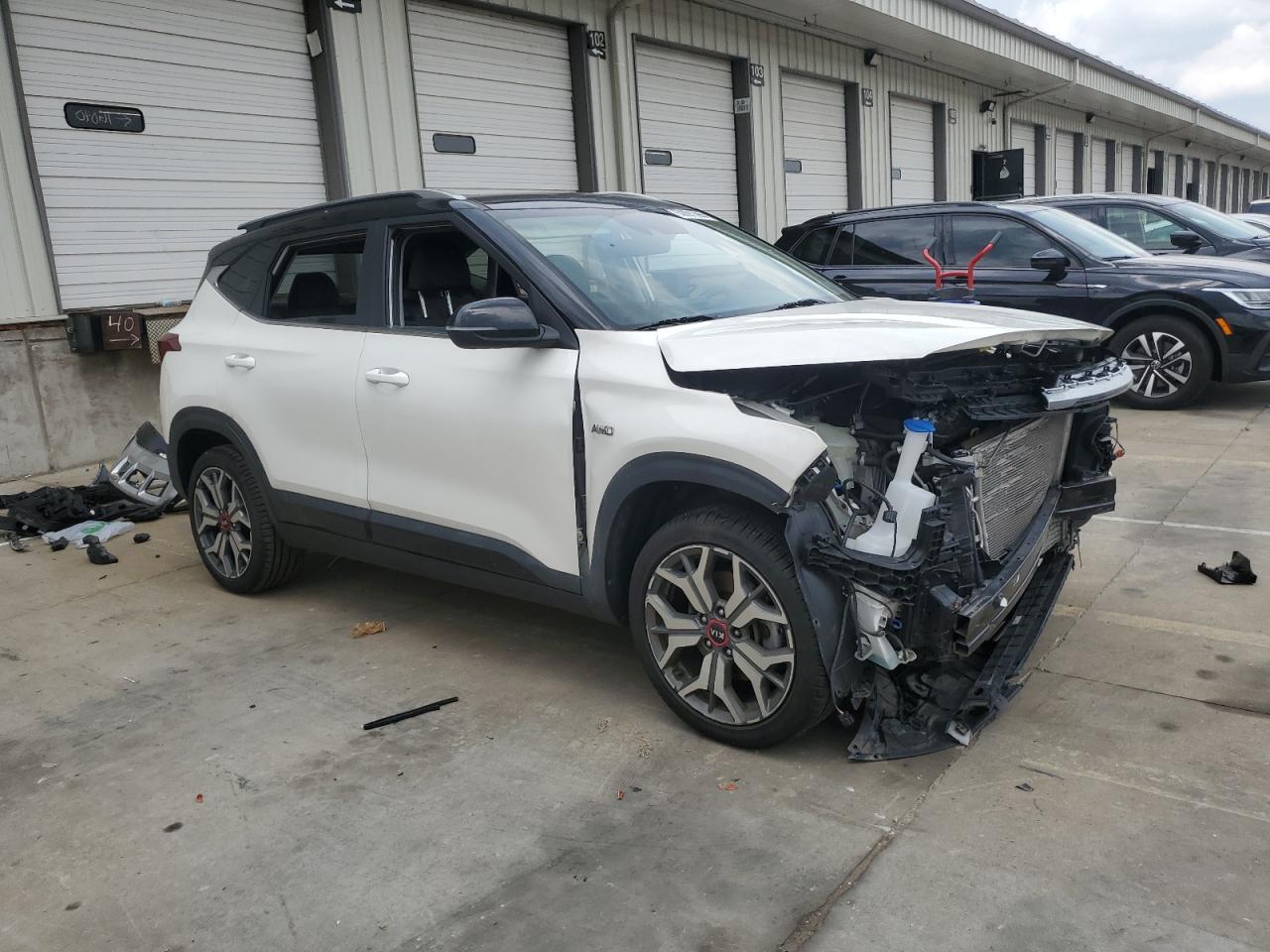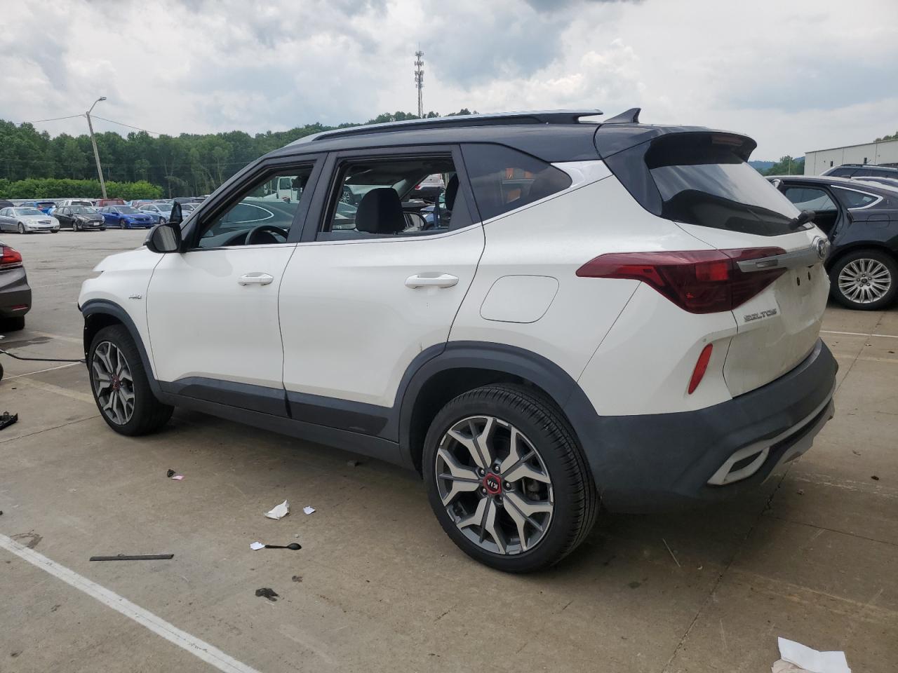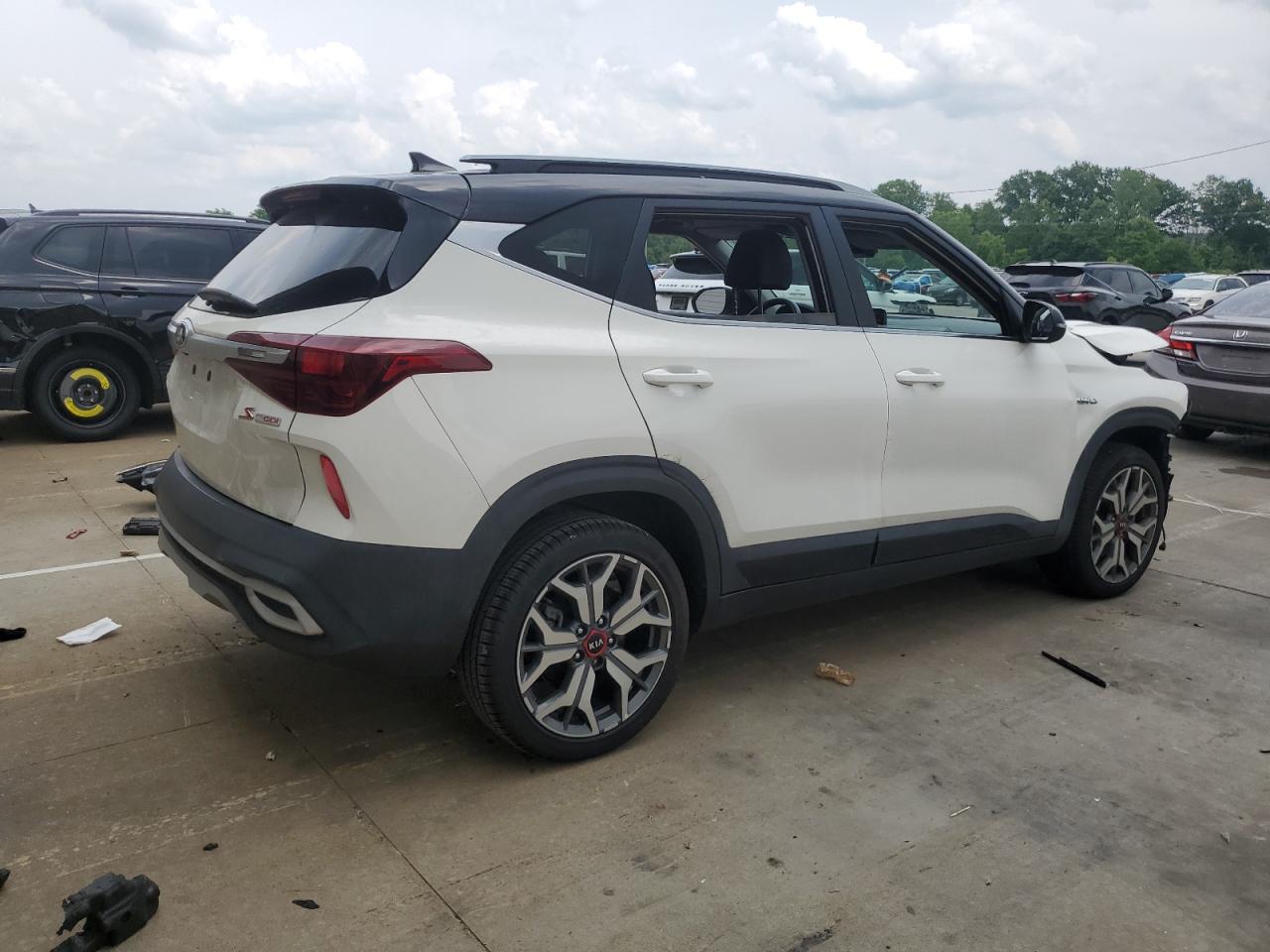 FairThis is a white 2021 KIA SELTOS S. The primary damage is to the front end, with significant damage to the front bumper, hood, and possibly the front fenders. The headlights and front grill are missing. The car appears to have sustained a frontal collision. The wheels appear to be intact. The interior condition appears to be good with no obvious damage. The dashboard shows a mileage of 53,609.
