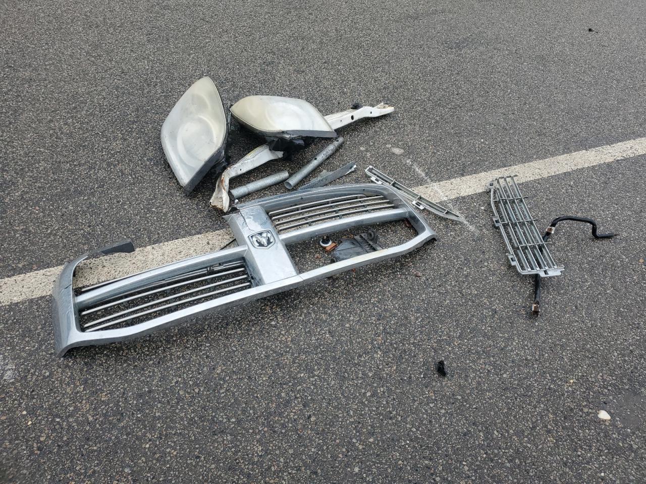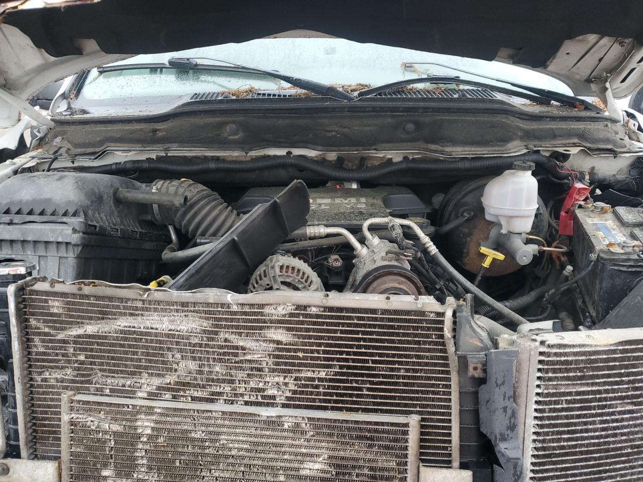 FairThe 2008 Dodge Ram 1500 S in white shows significant front-end damage, indicating a major collision. The exterior exhibits moderate damage, with clear signs of impact on the front, and some rust is visible. The interior displays moderate wear and tear, visible on seats and dashboard. The vehicle is reported to be run and drive verified.