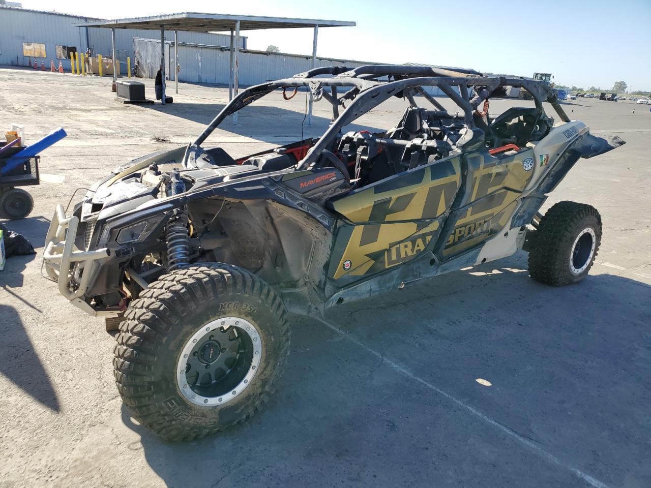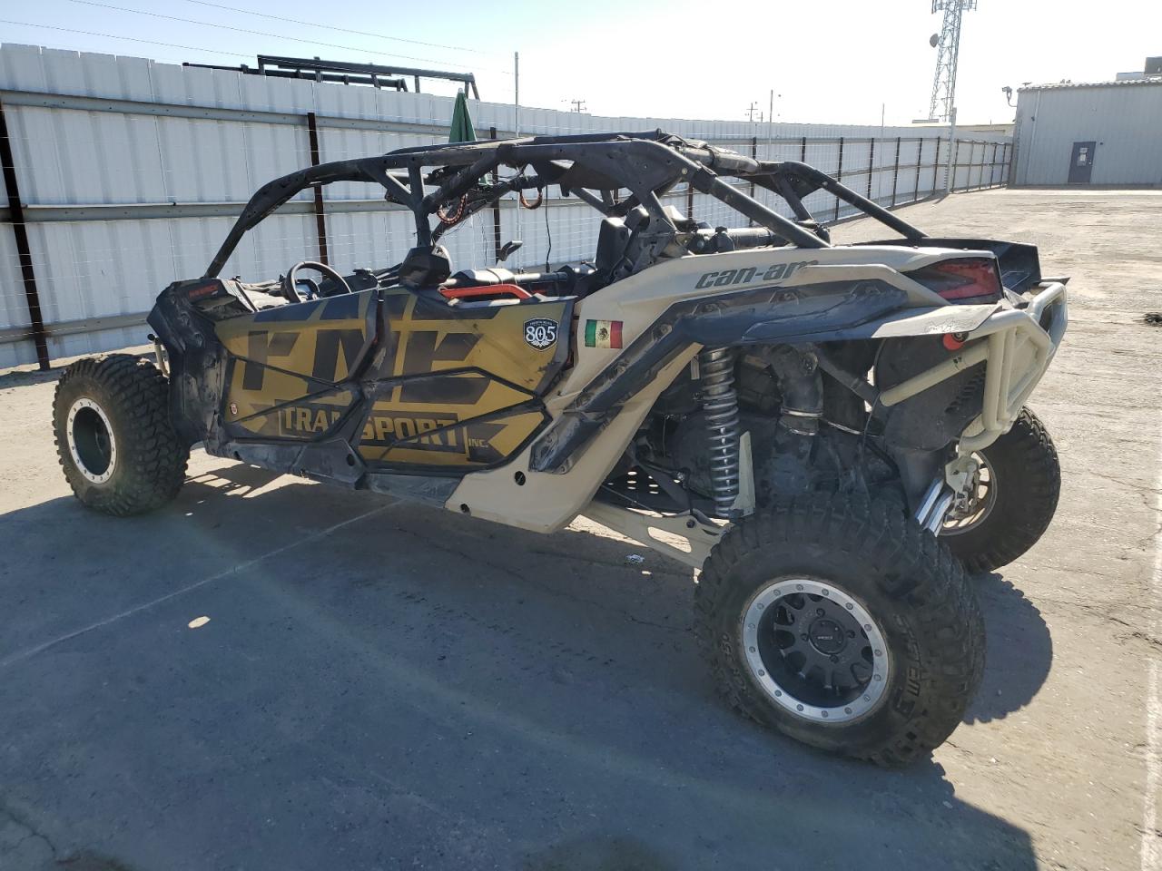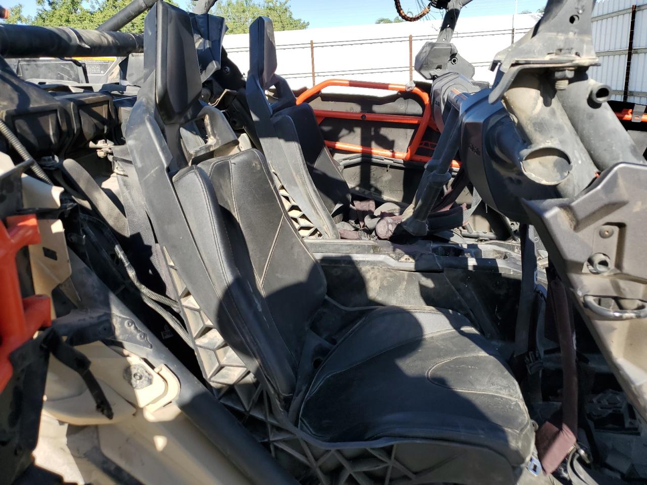 FairThe Can-Am Maverick X3 2021, presents significant damage primarily to its front end. The vehicle's tan body panels show substantial damage, affecting its overall aesthetic and structural integrity. The interior shows damage to seats. The vehicle's wheels appear to be intact, but the front-end damage indicates considerable repair is needed, rendering it not drivable in its current state.