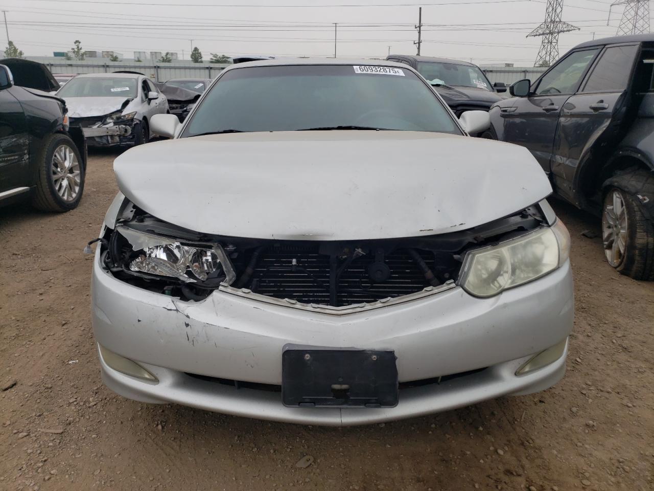 FairThe 2003 Toyota Camry Solara has sustained significant front-end damage, primarily to the body panels. The vehicle is silver in color and is listed as Run & Drive Verified. Interior condition appears to be good with visible wear and tear. The lights and glasses seem to be in acceptable condition. The car has a cosmetic damage with some body damage, but it is drivable. The airbags' state is unknown.