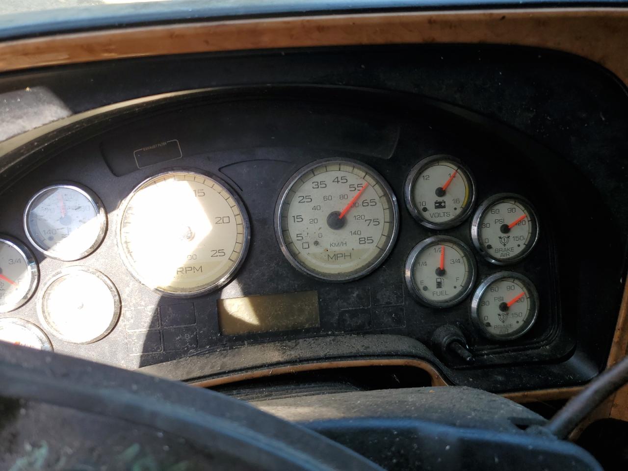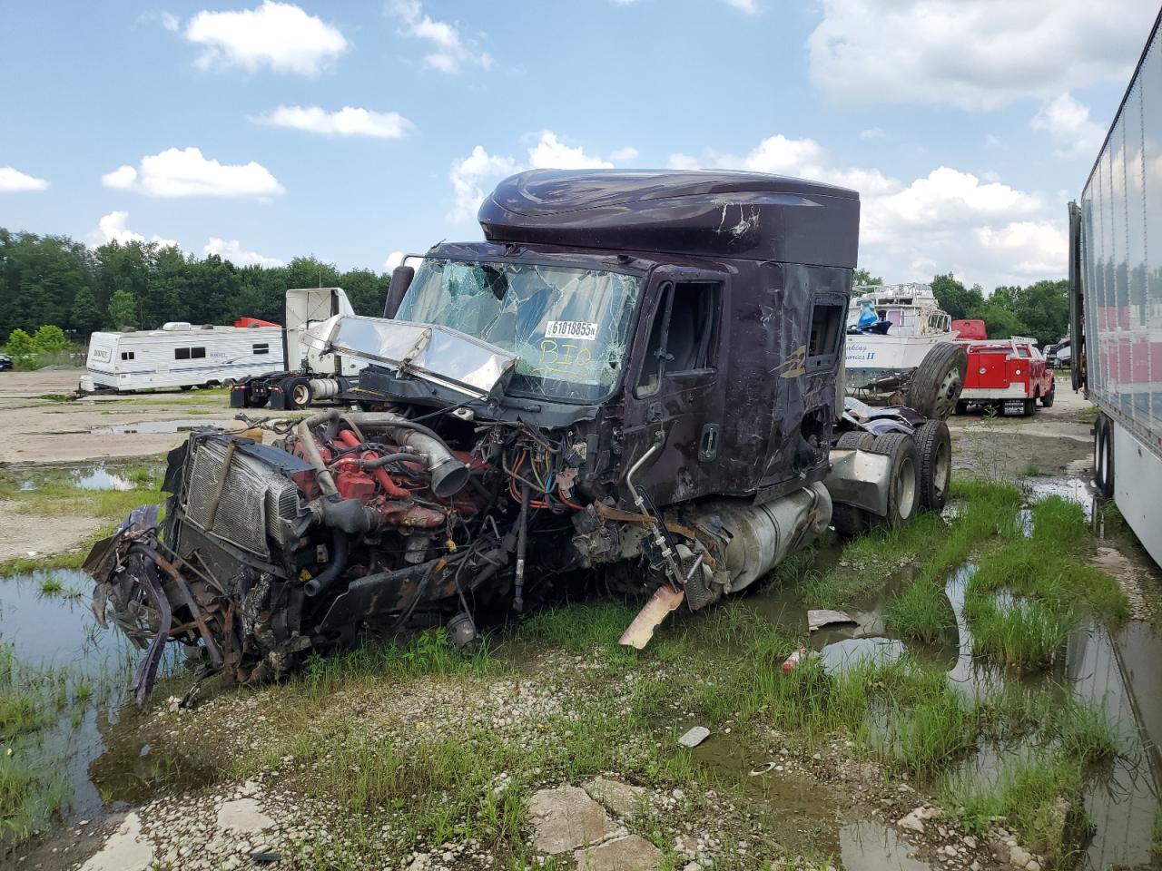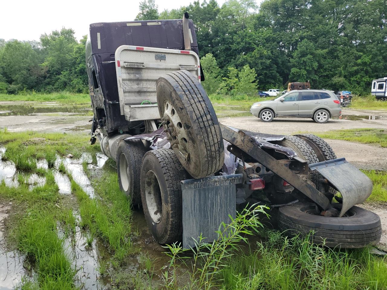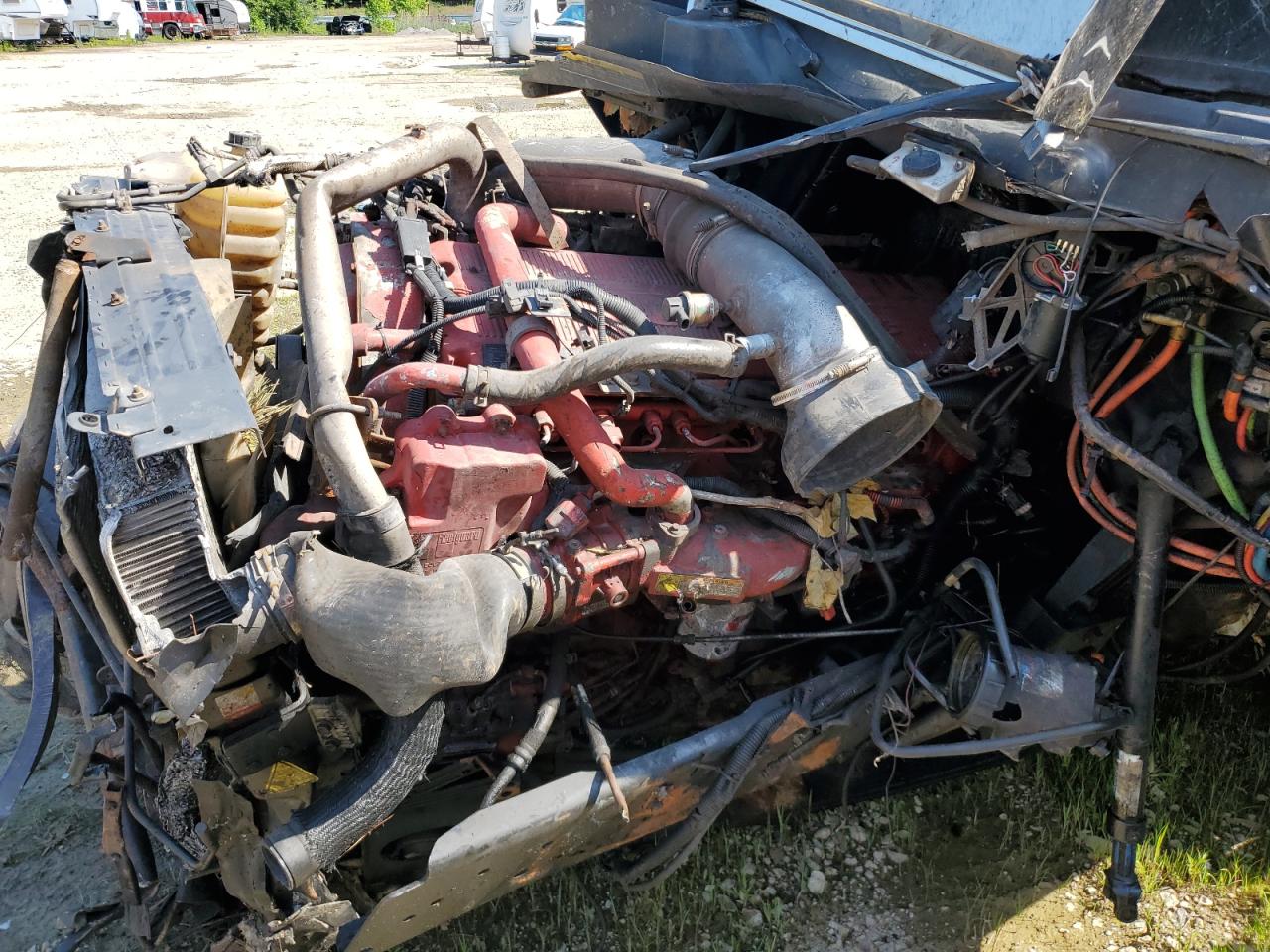 PoorThe INTERNATIONAL PROSTAR 2016 has sustained severe damage. The vehicle's exterior shows extensive damage, including significant deformation of the cab and front end due to an accident. The maroon-colored truck appears to have been involved in a rollover, with the front of the vehicle completely crushed. The wheels are intact but appear to have been affected by the impact. The interior shows damage, including airbags deployed. The dashboard and cabin show wear and tear.