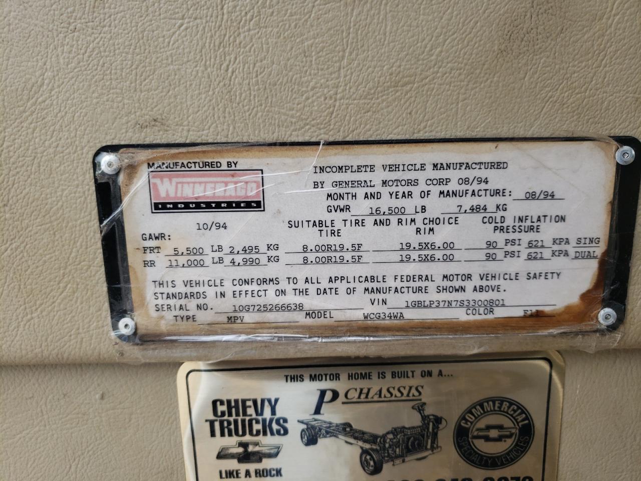 FairThe 1995 CHEVROLET P30 motorhome, cream in color, presents with side body damage, classified under the Vehicle Damage Category as Body. The start code is Run & Drive Verified. The vehicle’s overall exterior condition is rated as Fair, with the interior assessed as Good. The overall state of the vehicle is also considered Fair.