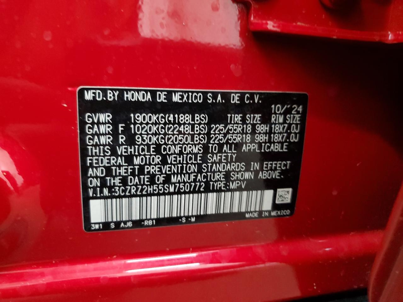 FairThis red 2025 HONDA HR-V SPORT has sustained front-end damage, the vehicle's exterior condition is rated as fair, and the interior condition is very good. The car starts and drives, the wheels appear intact, and the lights and glass are in good condition. There is no damage in the other parts of the car. The car's overall state is fair due to the front-end body damage.