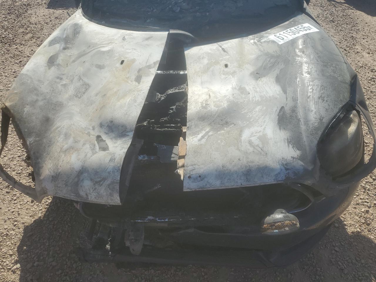 Burn damage throughout the vehicle, with extensive charring to the body, interior components, and potentially the frame. The lights and glass are severely affected. The wheels are visible but potentially damaged. Interior damage includes extensive burning of seats and dashboard.