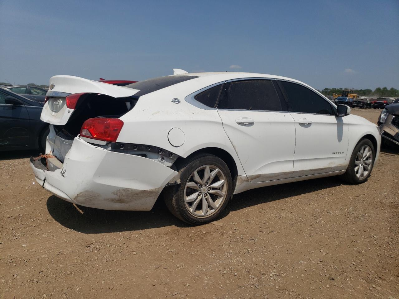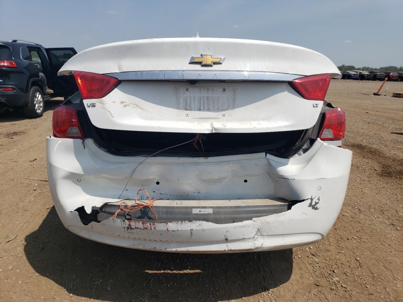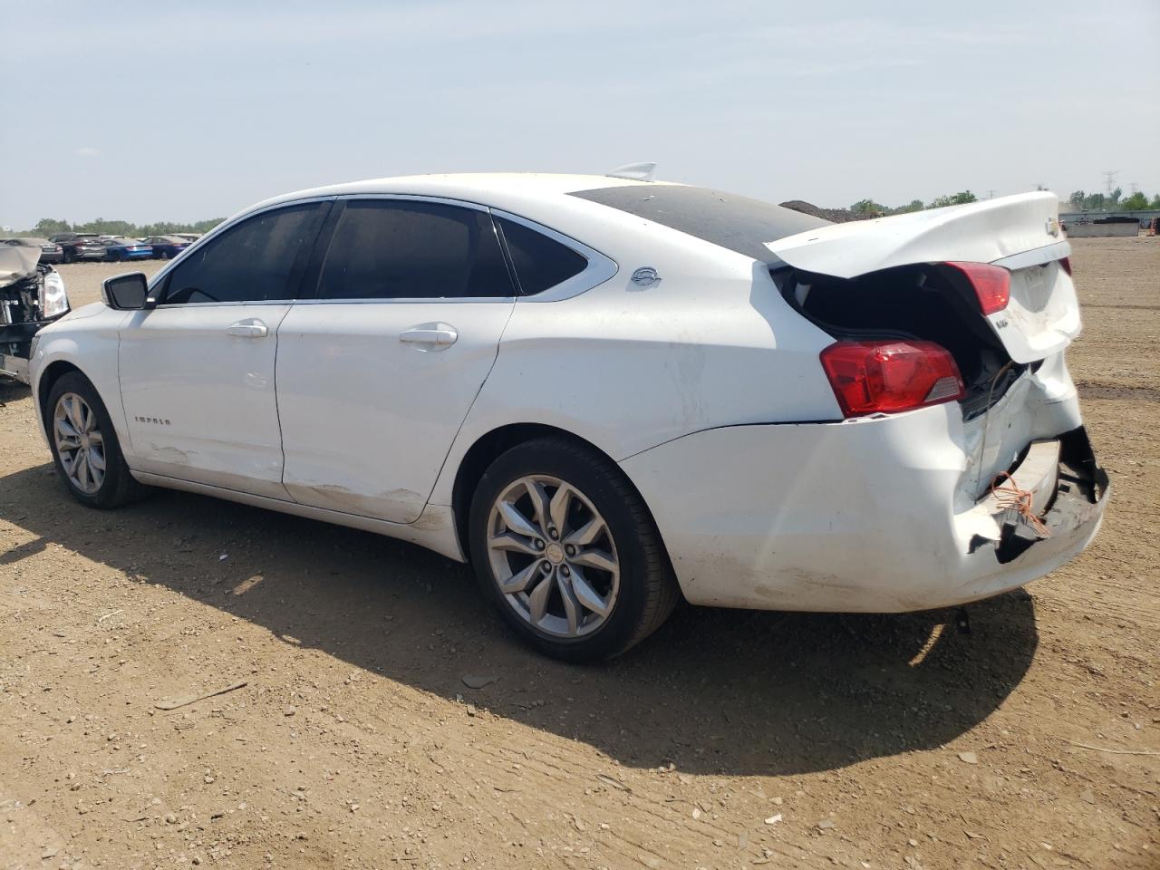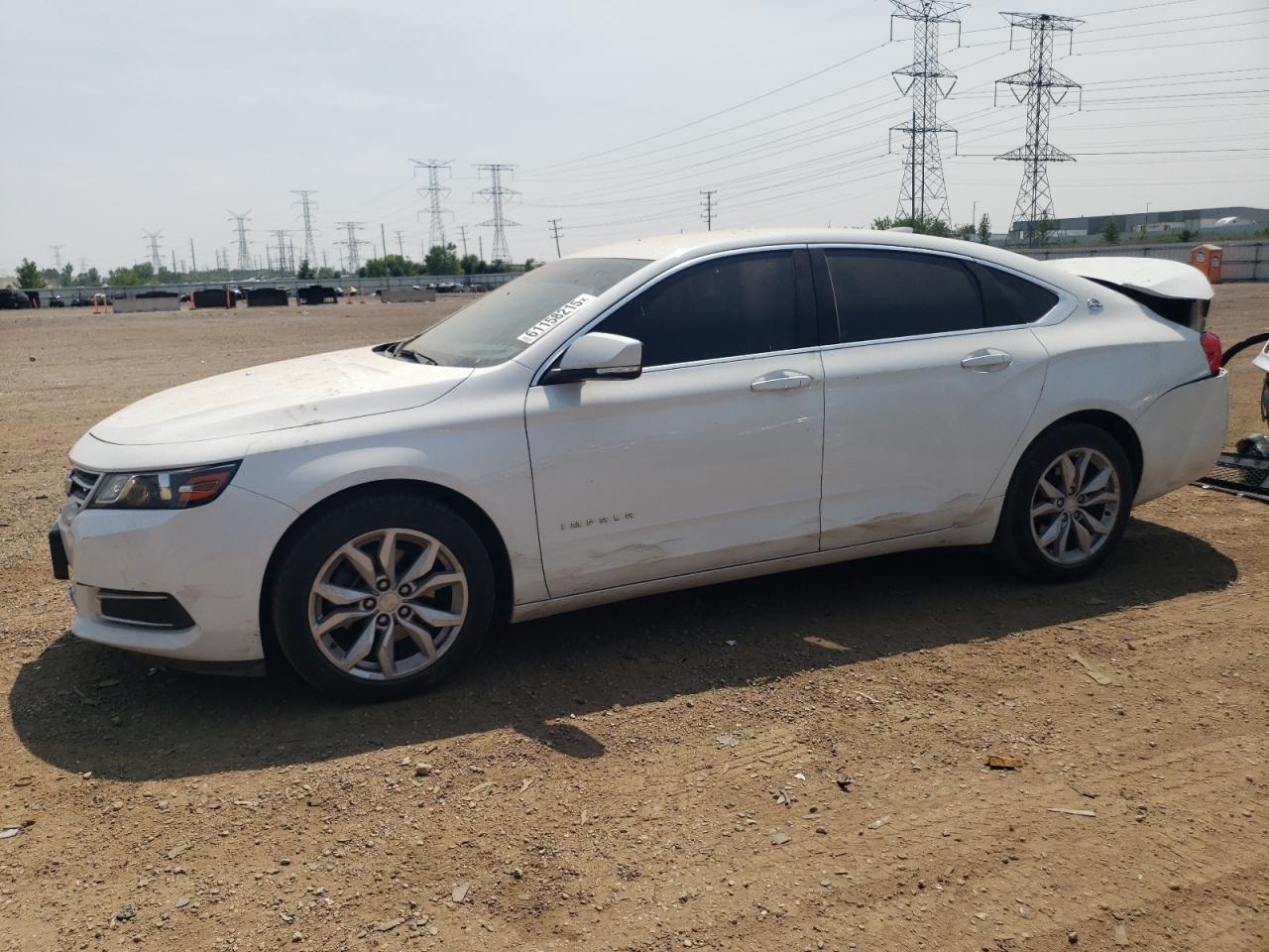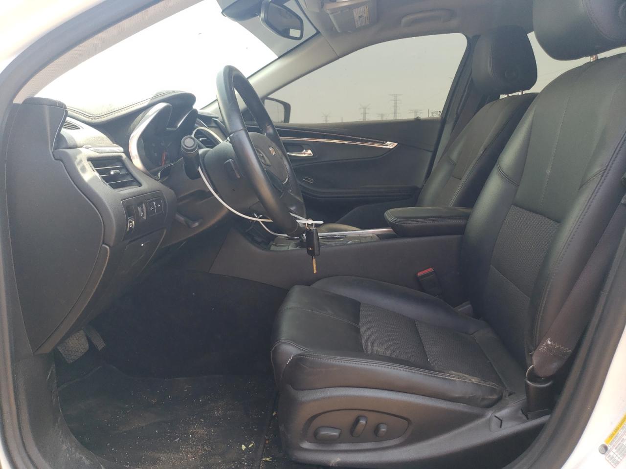 FairThe 2016 CHEVROLET IMPALA LT in white, sustained significant rear-end damage, indicating a Body Vehicle Damage Category. The exterior condition is assessed as Fair due to the damage, despite the wheels appearing intact and the car being drivable. The interior, with black leather seats, shows a Good overall condition. The vehicle's start code is Run & Drive Verified.