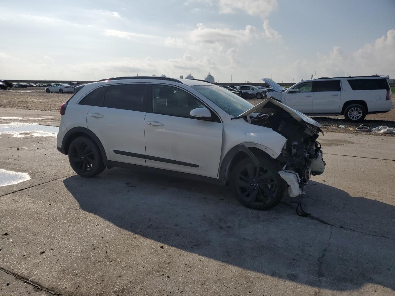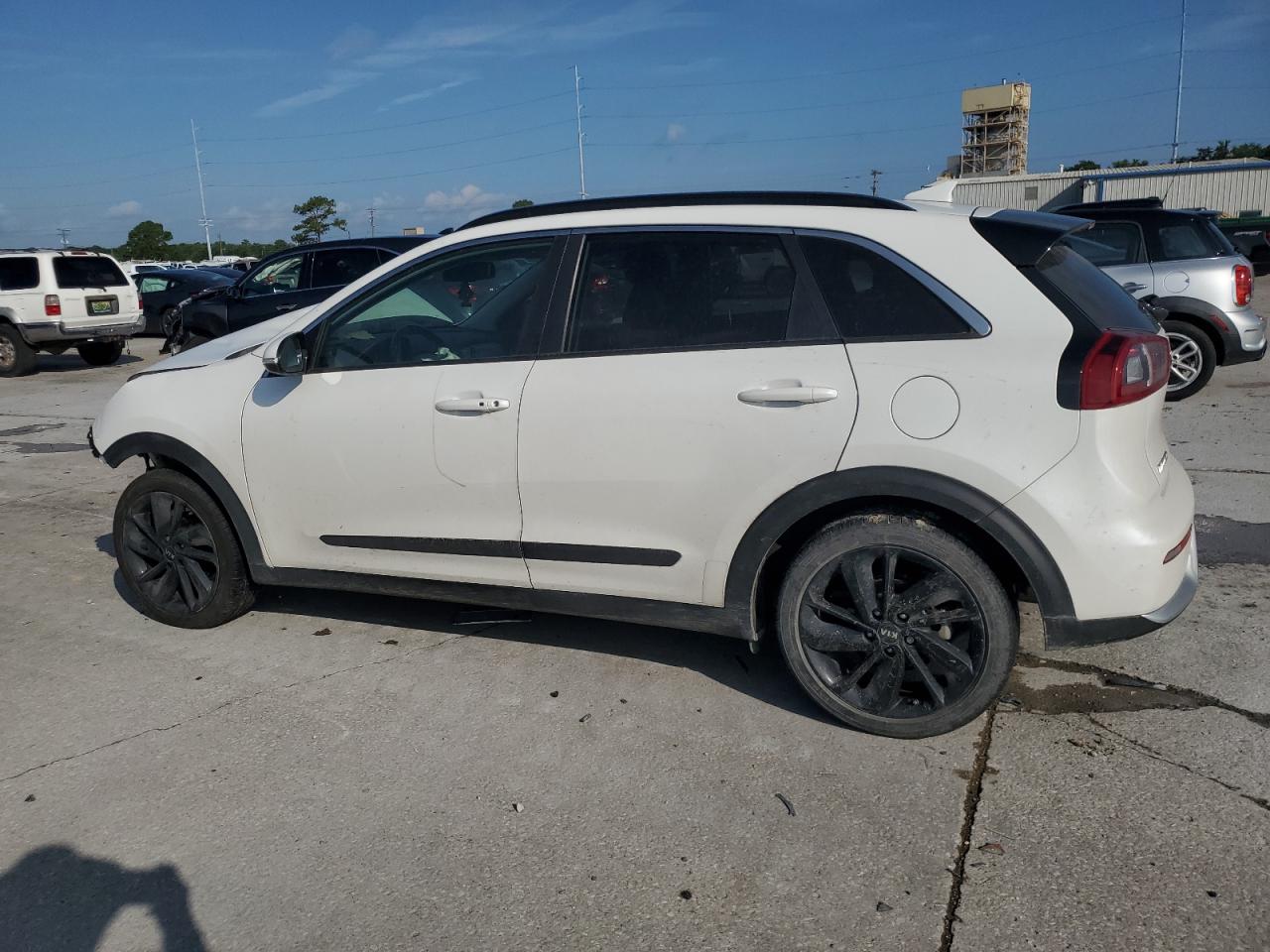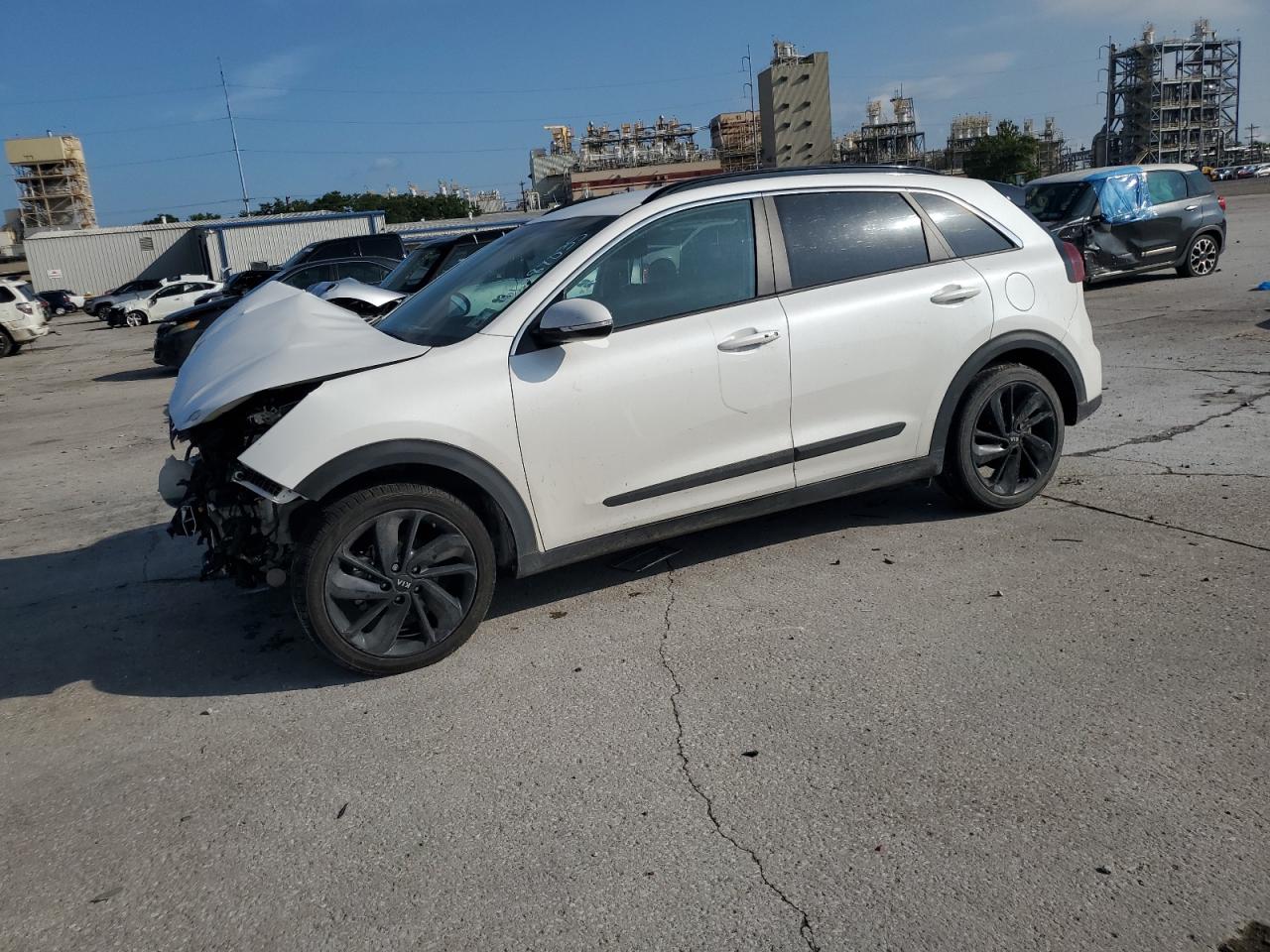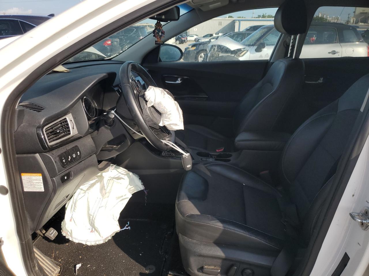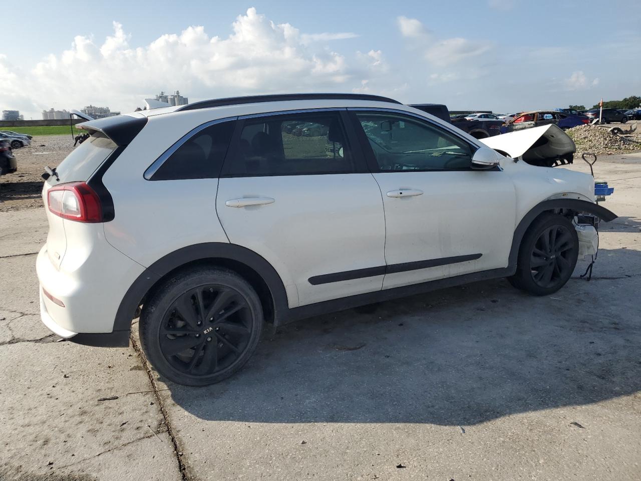 FairThe white 2019 KIA NIRO EX exhibits significant front-end damage. The vehicle's exterior condition is rated as 'Fair', while the interior condition is 'Poor'. The overall state of the car is 'Poor'. The airbags have deployed, and the front end has substantial damage, the car is not drivable. It is a salvage vehicle.
