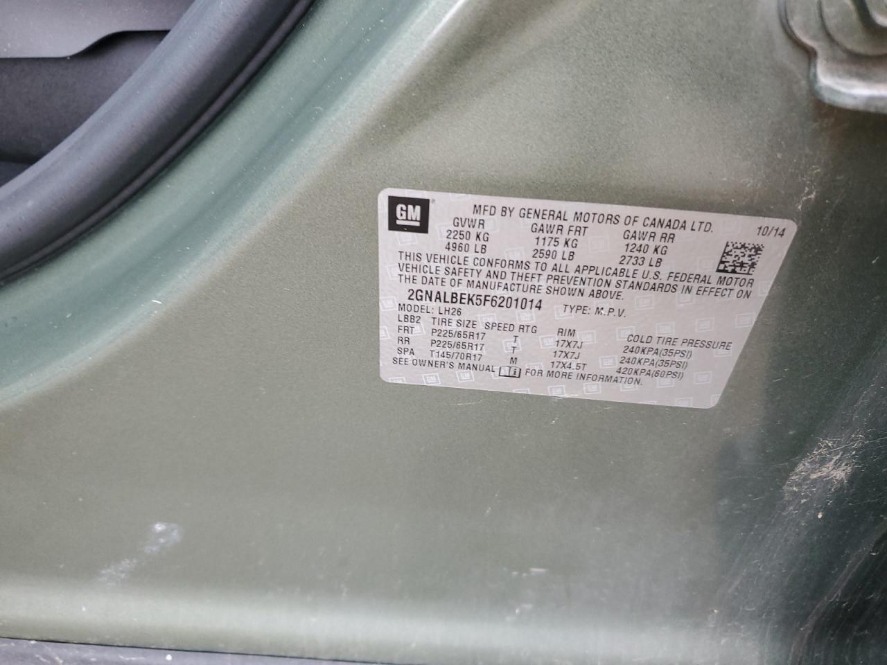 FairThe 2015 CHEVROLET EQUINOX LT is green with primary rear-end damage and secondary front-end damage. The car is listed as Run & Drive Verified. The exterior shows moderate damage, while the interior appears to be in good condition. The wheels and glasses appear to be intact. The car itself is a compact SUV, known for its versatility and fuel efficiency.