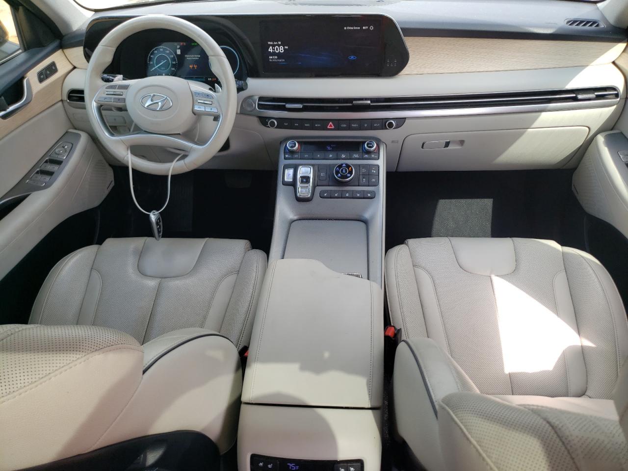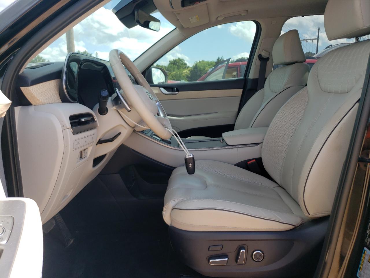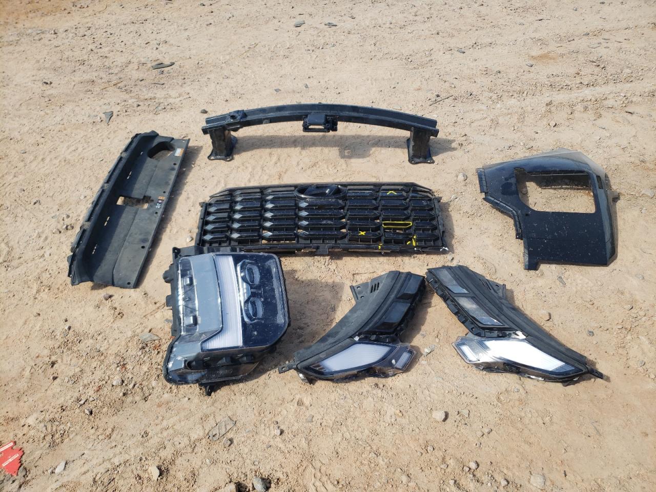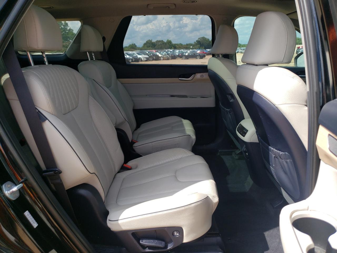 FairHYUNDAI PALISADE L 2023, black color with front and rear end damage. Run & Drive Verified. The front end shows significant damage, including the bumper and hood, while the rear end has damage as well. The interior shows minimal damage. The car is drivable despite the visible damage.