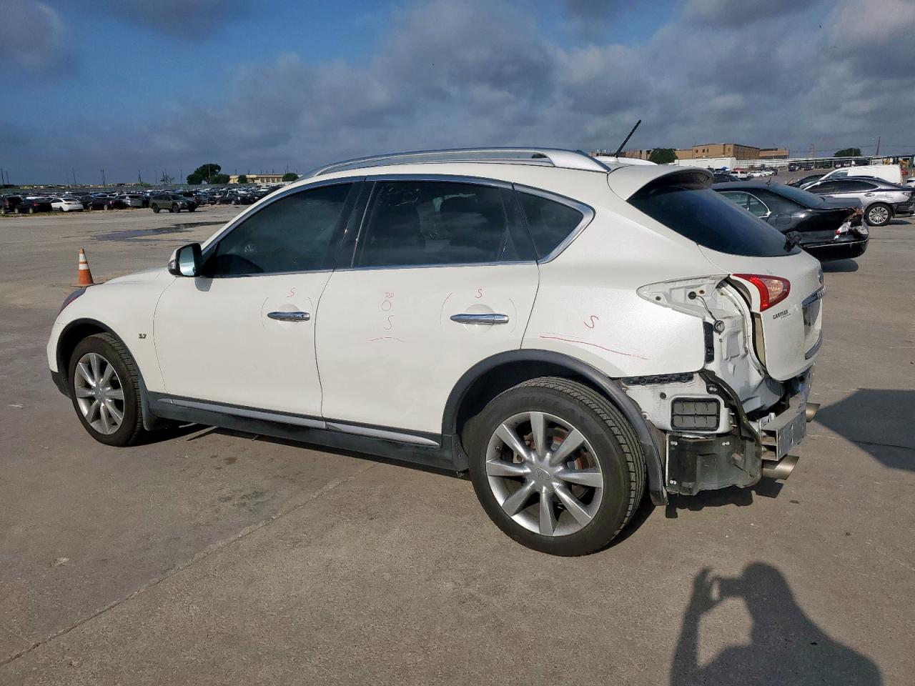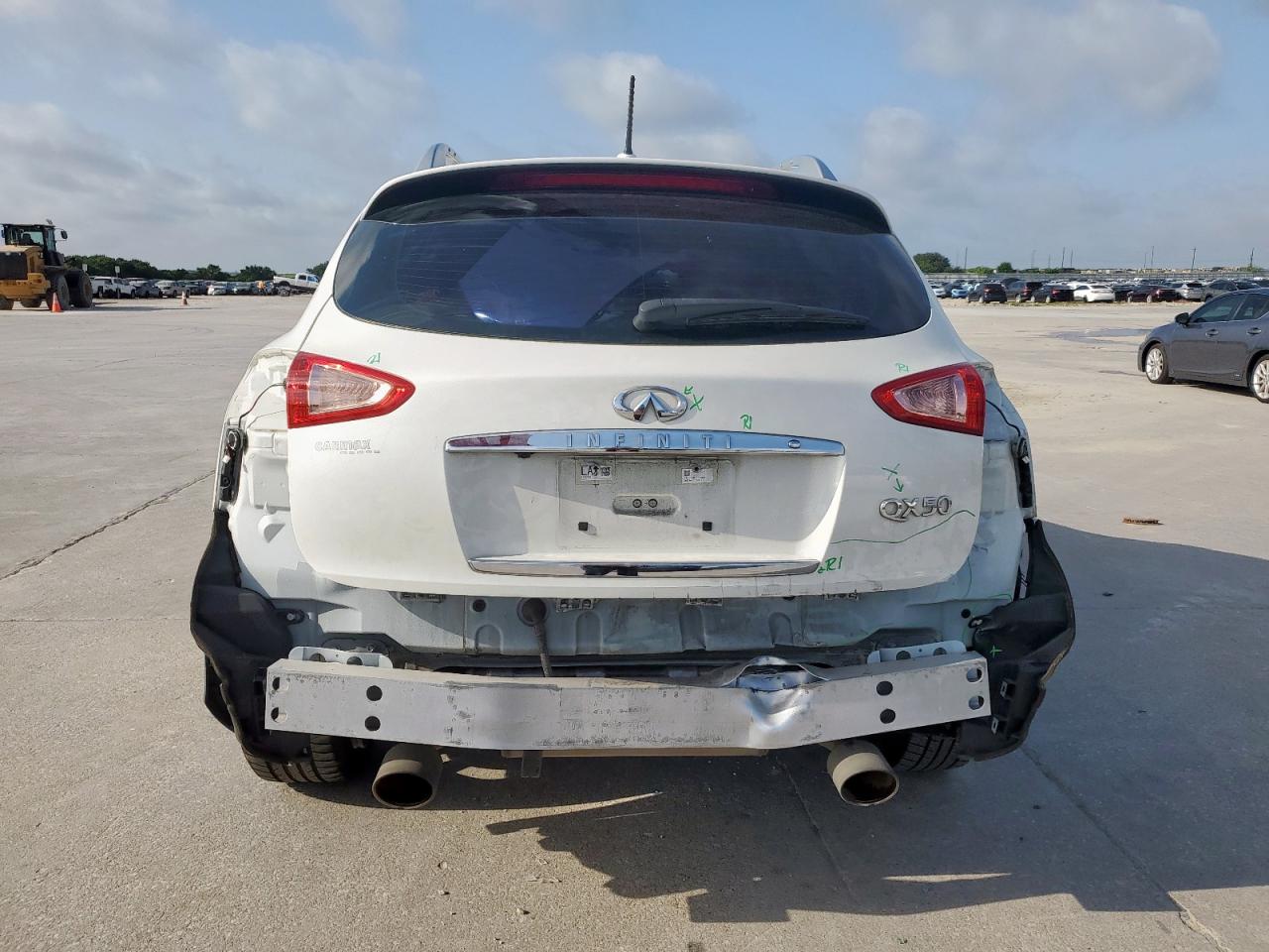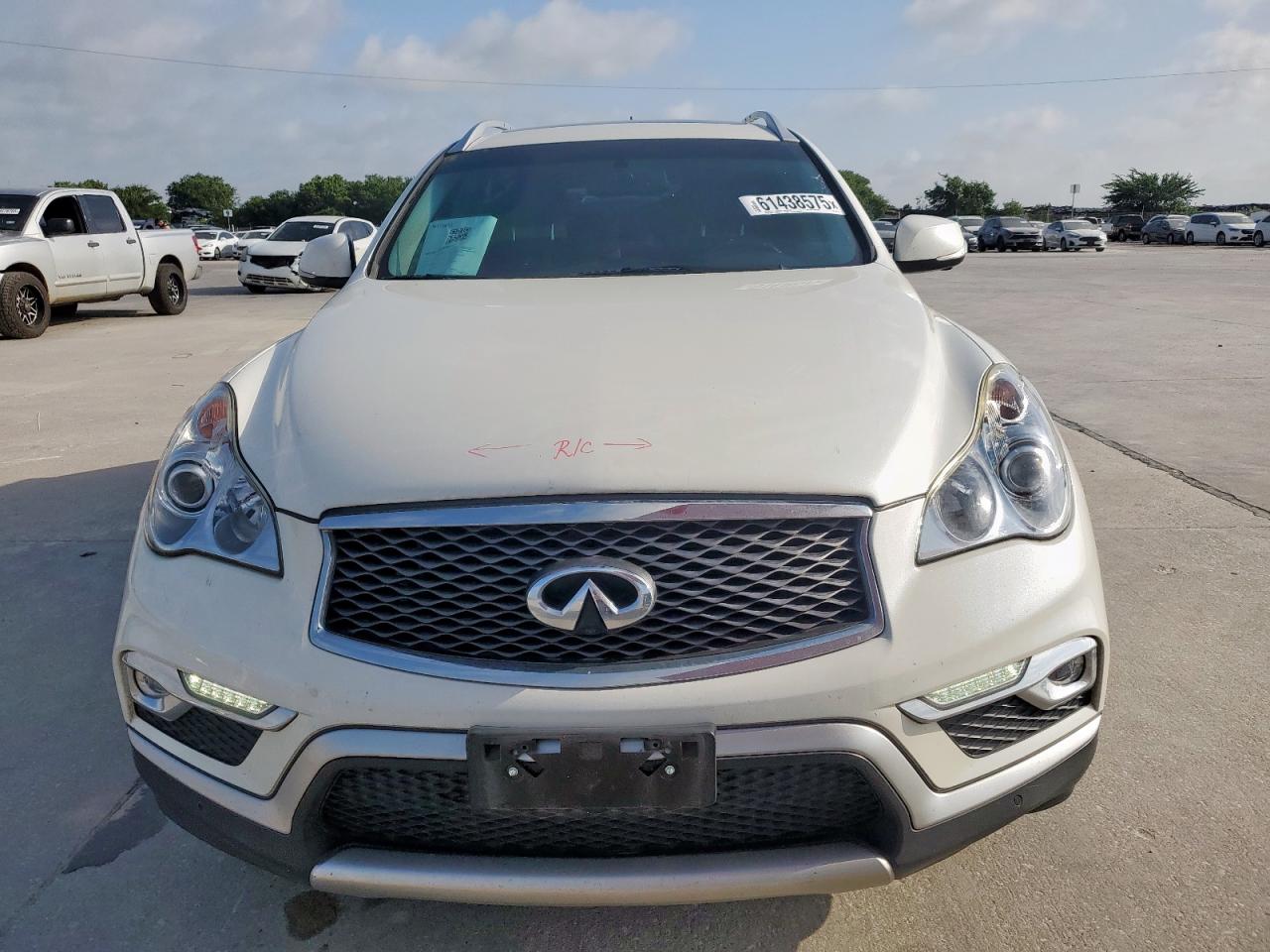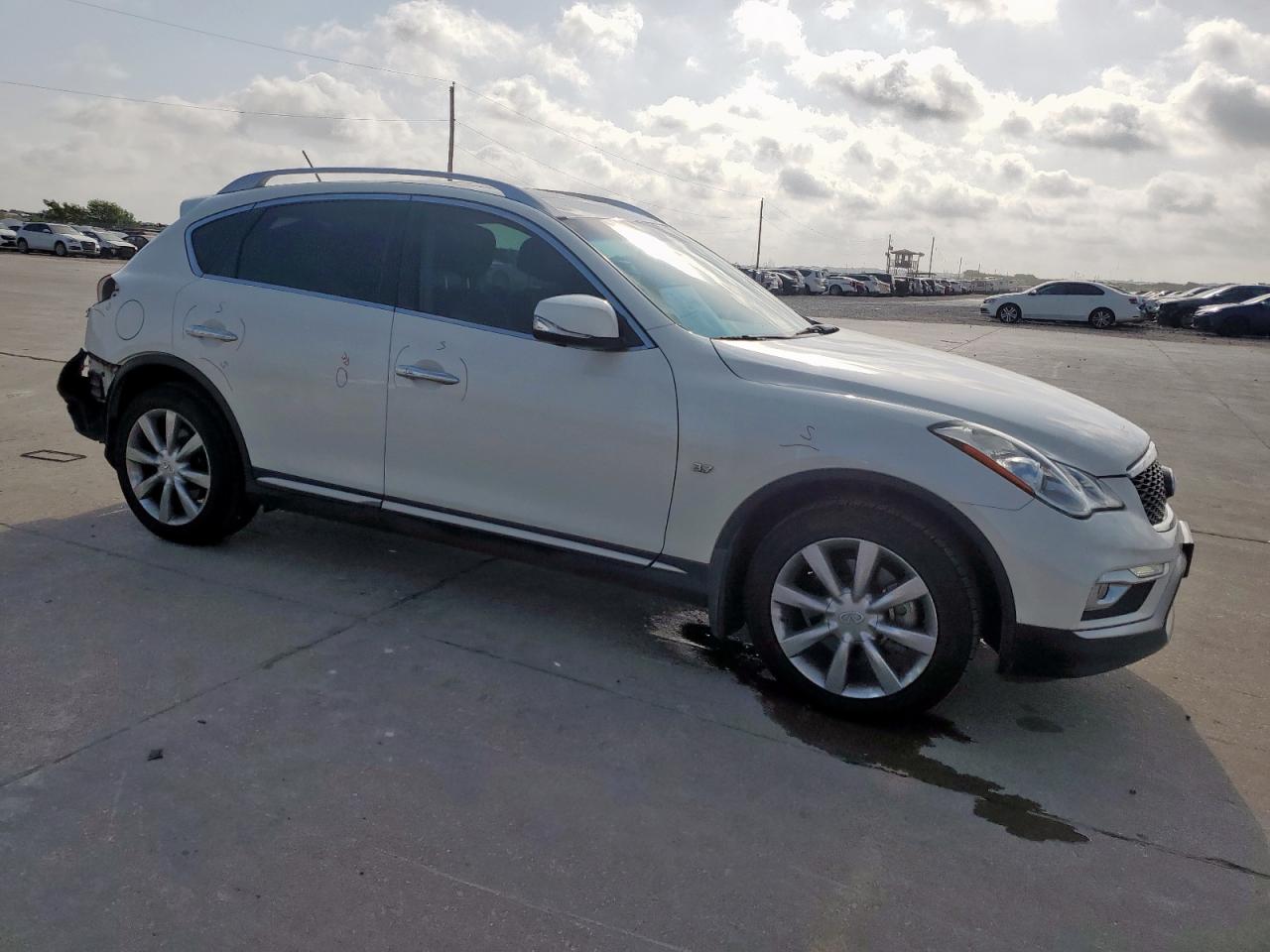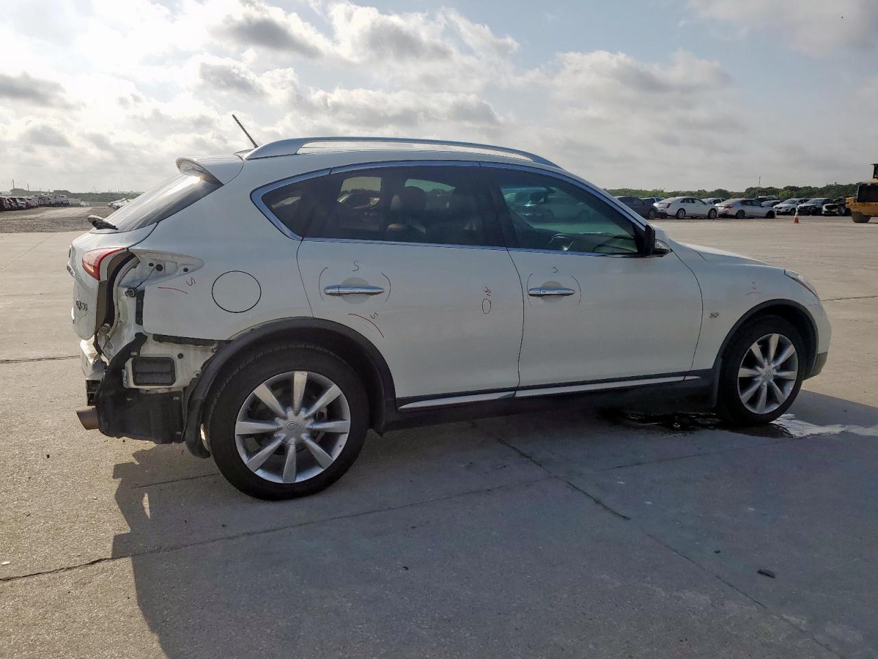 FairINFINITI QX50 2017 with Rear End damage and Run & Drive Verified status. The car's exterior is white. The vehicle is drivable despite the damage. The interior appears to be in good condition. The damage is concentrated in the rear of the vehicle.