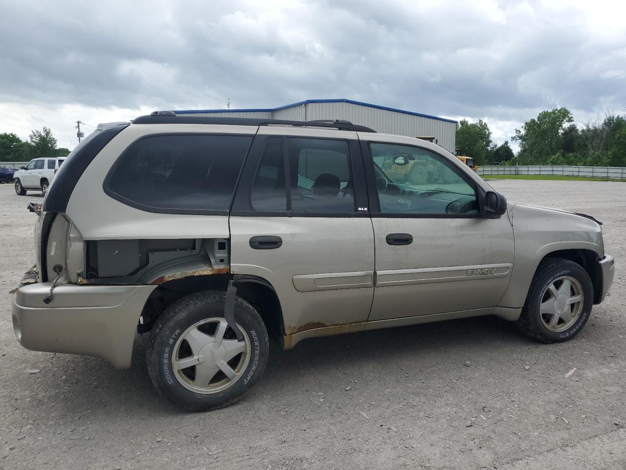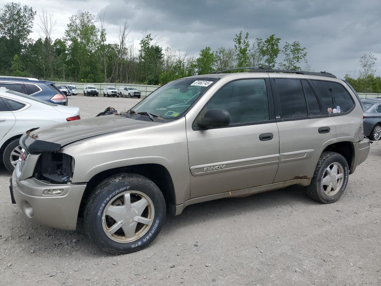 FairThe 2002 GMC Envoy presents with significant exterior damage, including body panel damage. The interior shows moderate wear and tear. This SUV is drivable despite the need for repairs. The starting code indicates it is running and verified to drive. The tan exterior exhibits body damage, and the lights and glasses appear functional. The vehicle's state indicates it requires considerable repair.