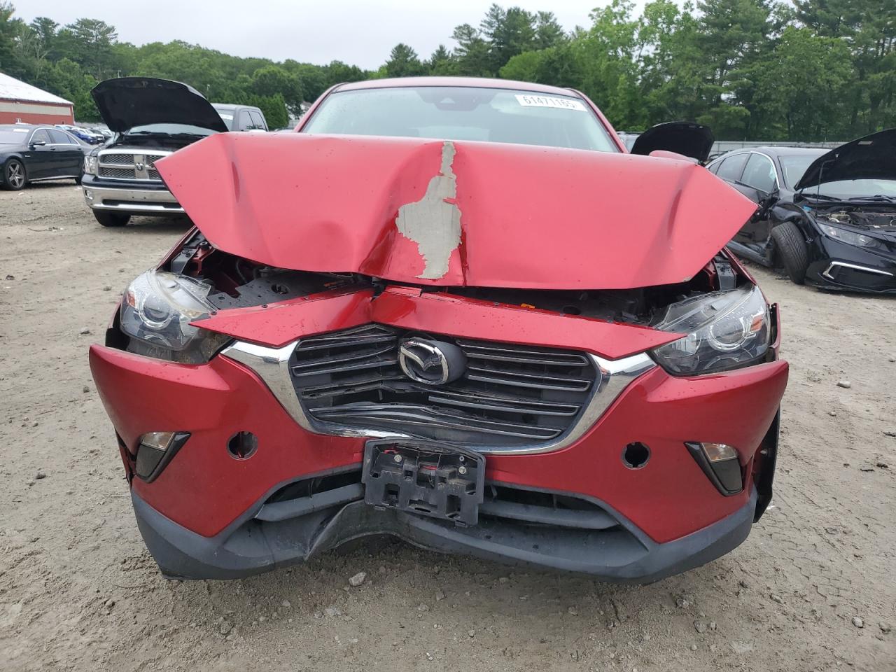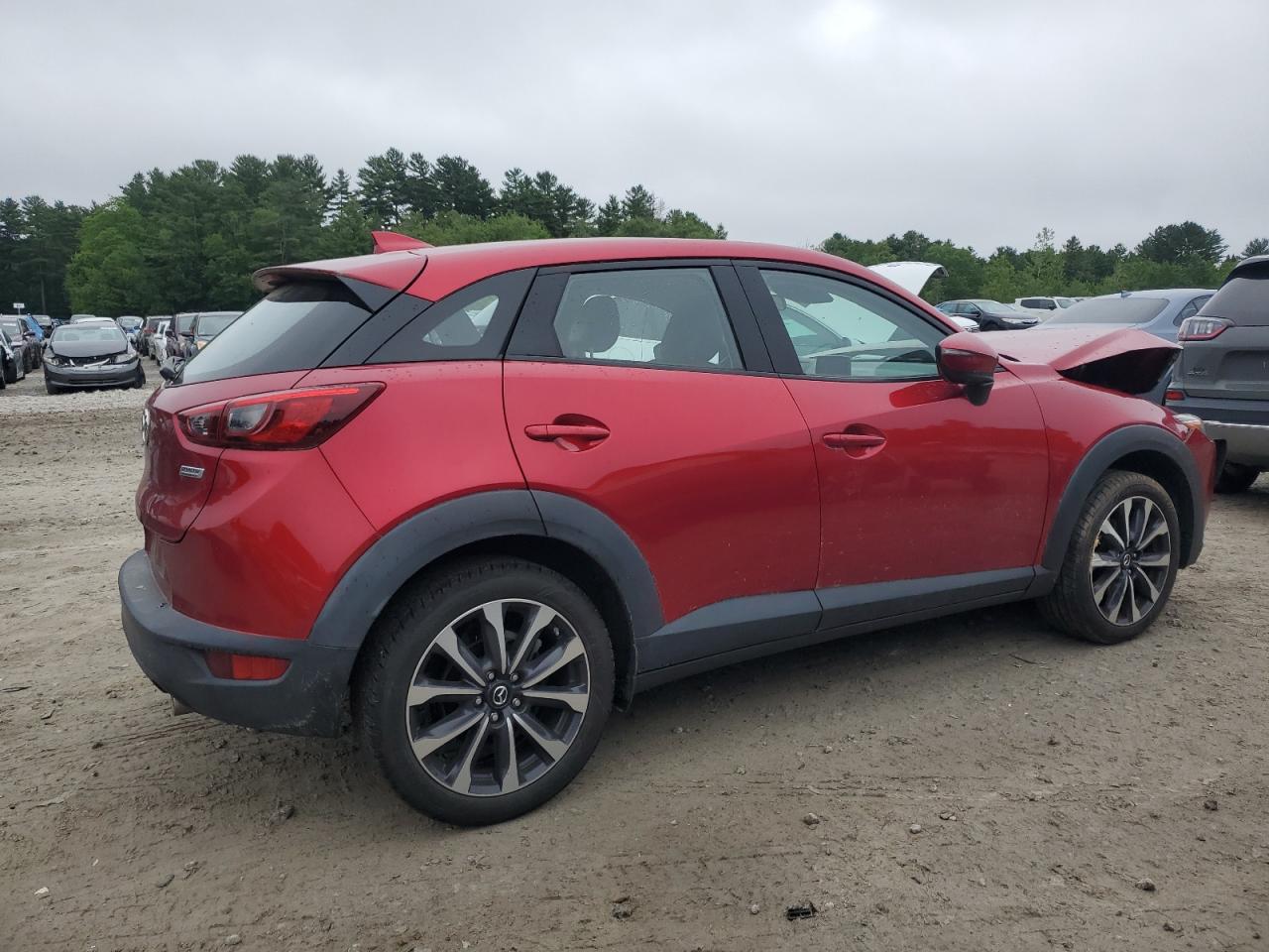 FairThis is a 2019 MAZDA CX-3 TOURING, red in color. The car has significant front-end damage, indicating a collision. There is damage to the body panels, with the front end heavily impacted. The wheels appear to be intact, and the lights are present but possibly damaged. The glass seems to be in good condition. The interior shows some wear, but the seats appear to be in decent shape. The airbags may have deployed, as indicated by the images. The vehicle is likely drivable pending the extent of any mechanical damage.