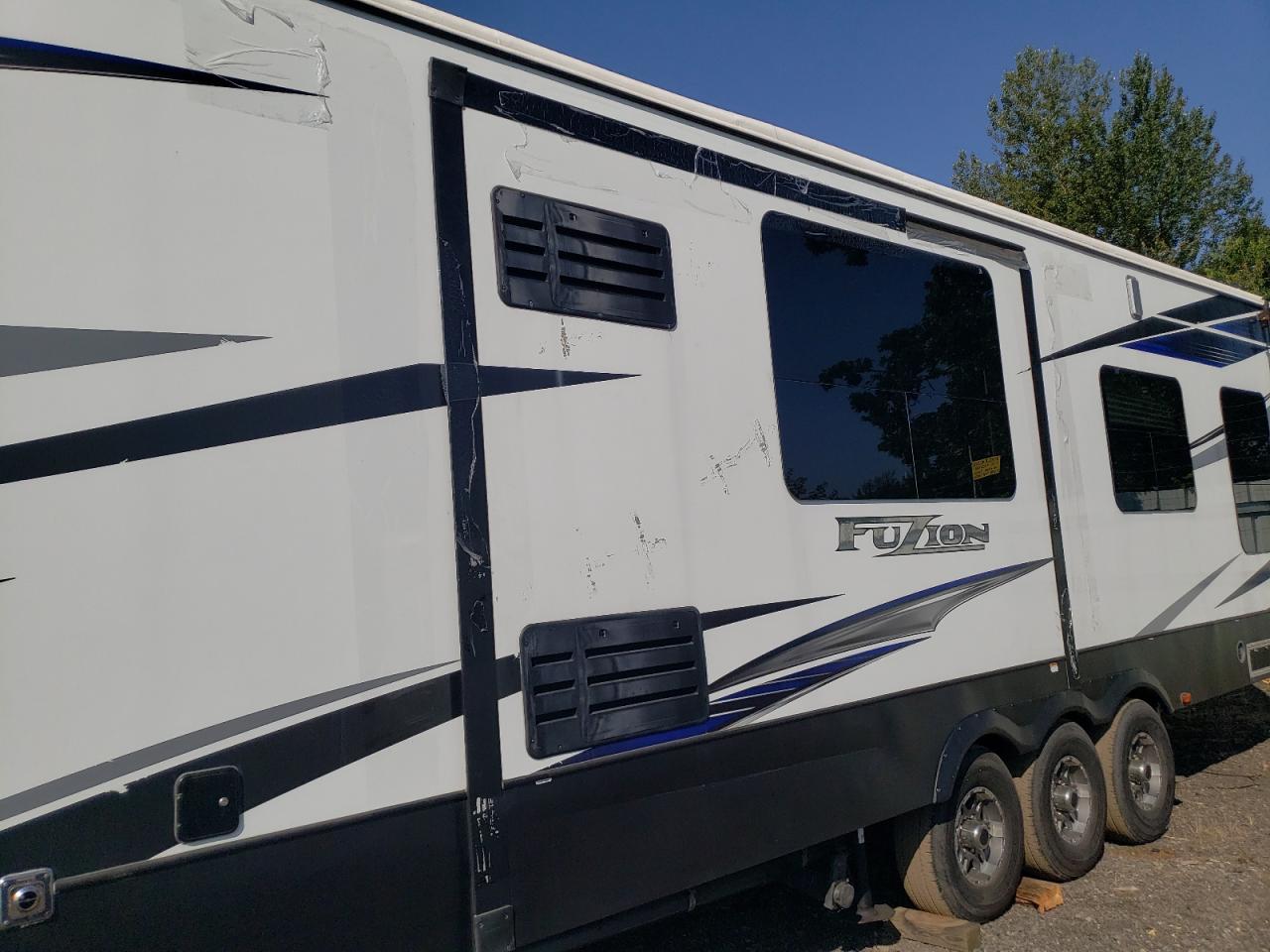 GoodThe 2019 Keystone Fuzion RV shows minor cosmetic damage, primarily with small dents and scratches. The white exterior has some wear, consistent with its age. The interior condition appears to be very good. The vehicle is drivable, with no apparent mechanical issues.