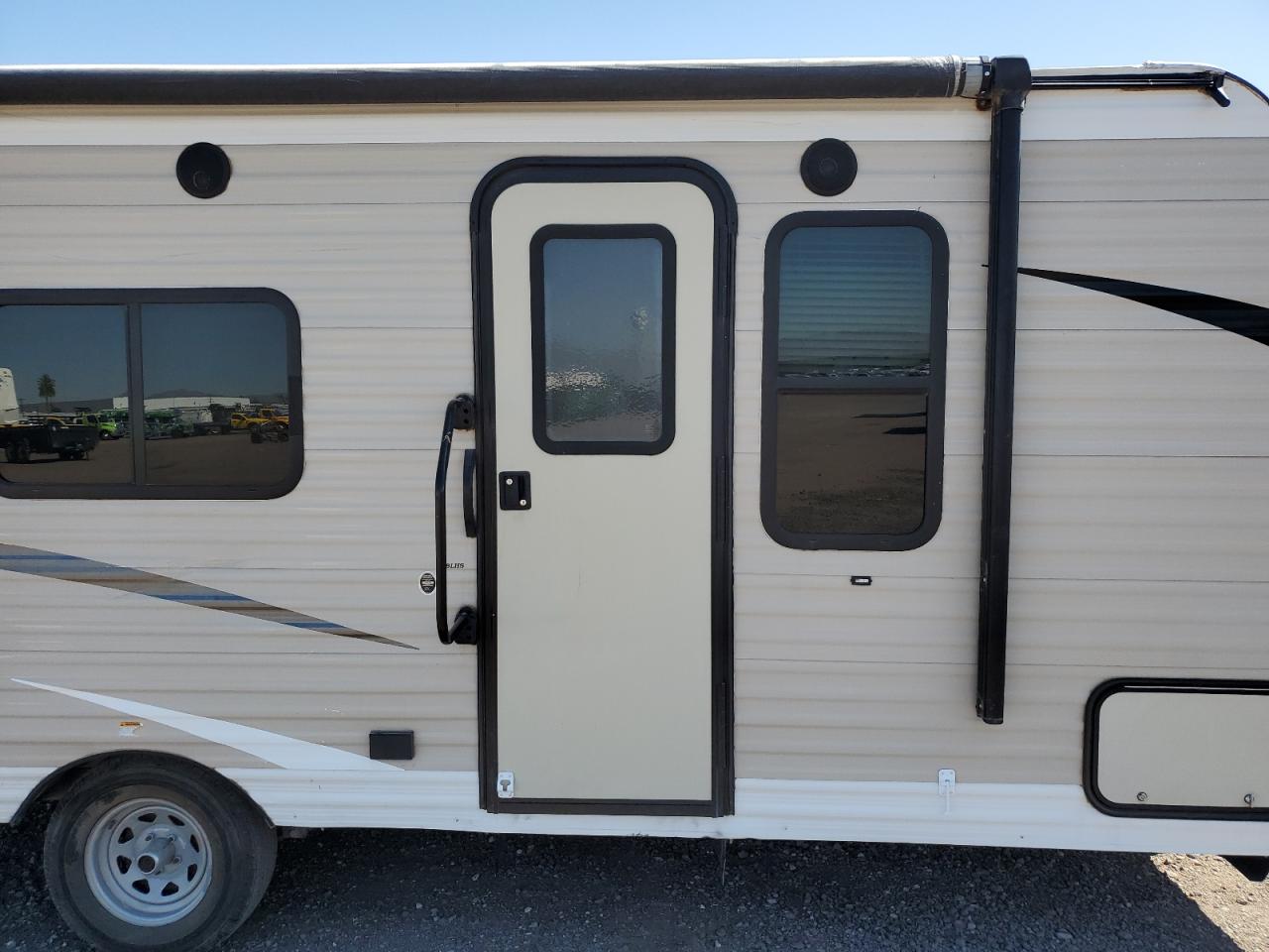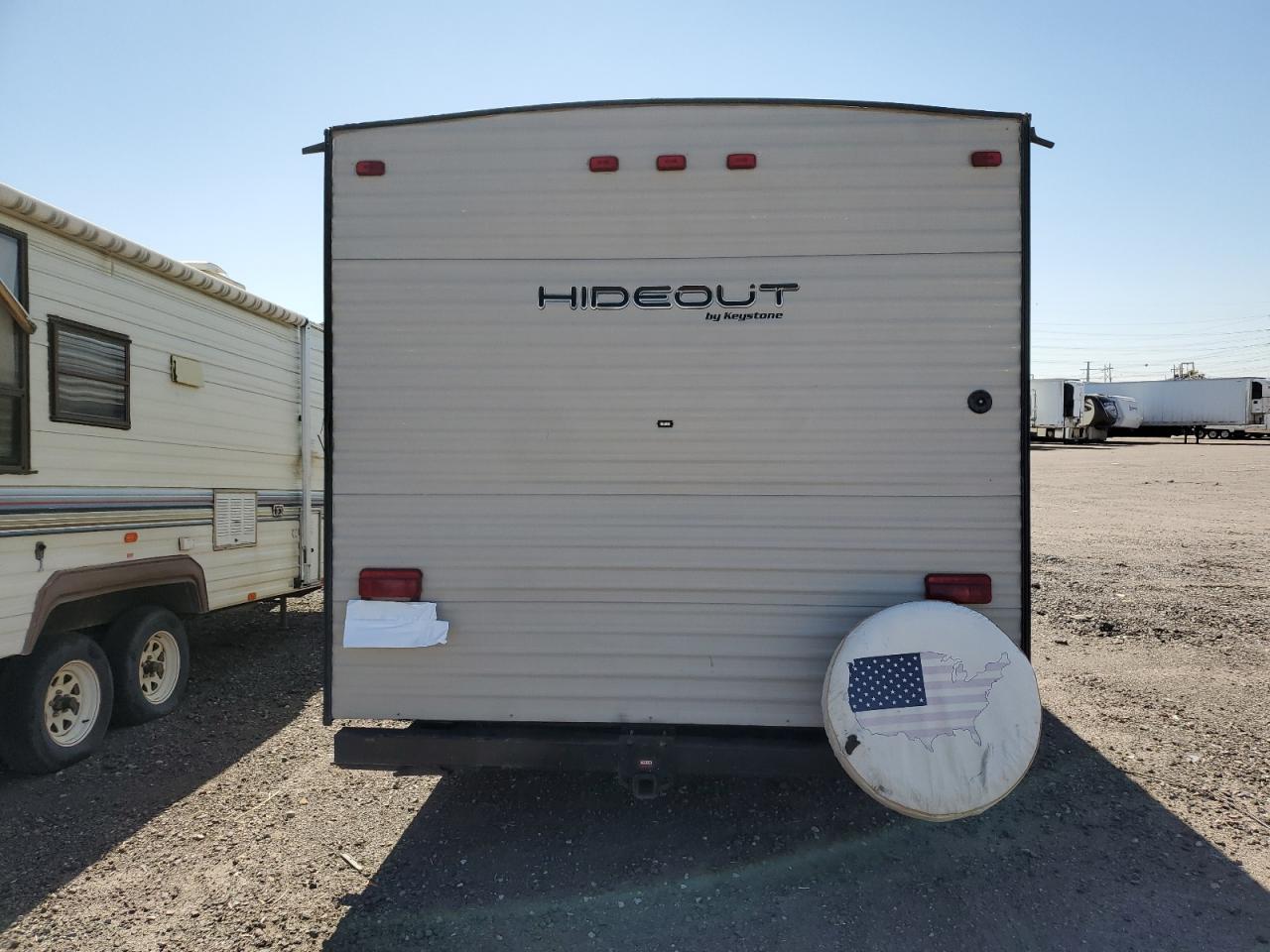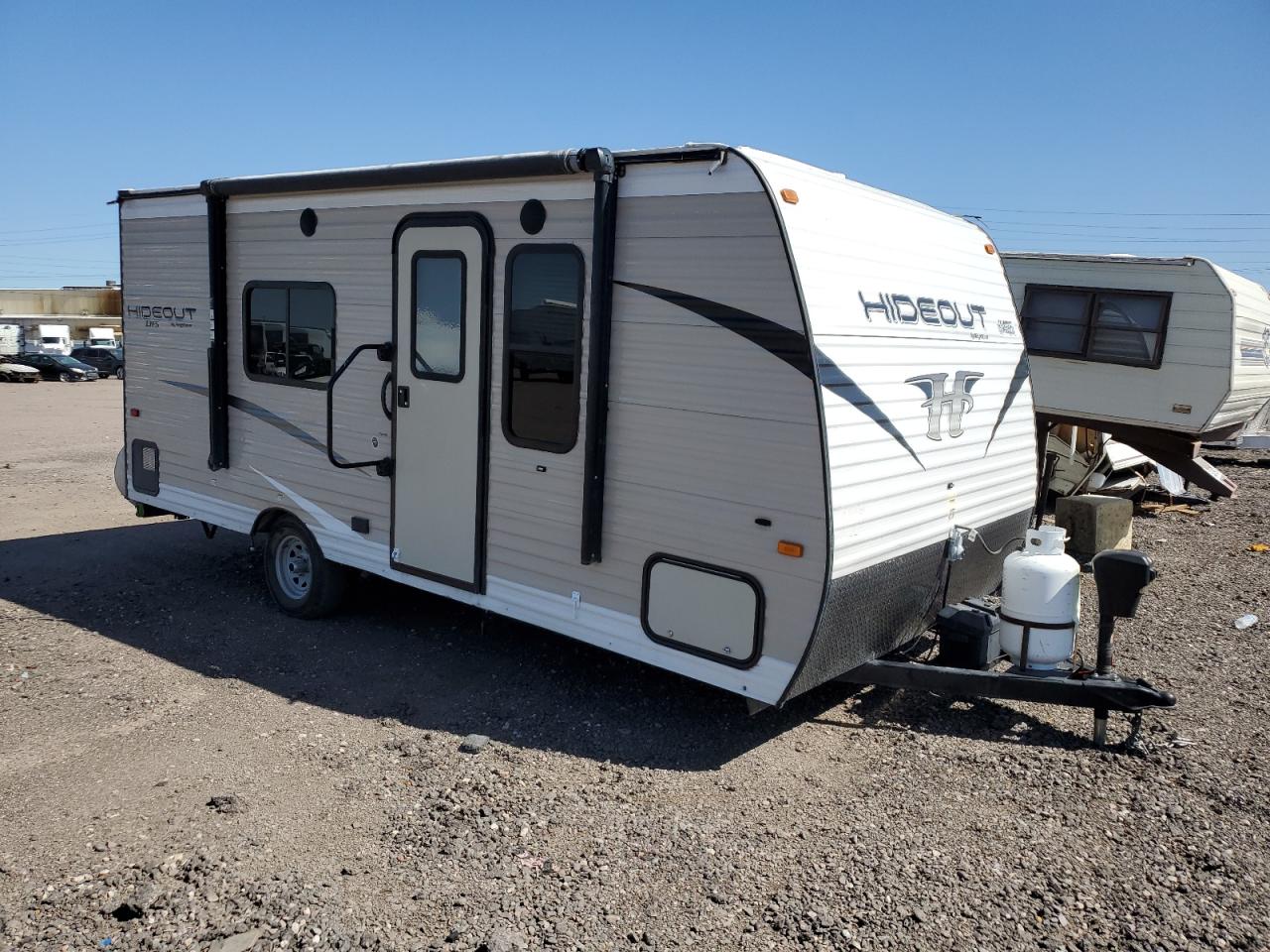 GoodThe KEYSTONE HIDEOUT 2019 appears to have body damage, affecting its exterior. The wheels and glasses seem to be in good condition. The vehicle has a white color. There is no damage to the wheels. It's a travel trailer, suggesting it's designed for recreational use, potentially for camping or road trips. The damage is cosmetic. The vehicle is drivable