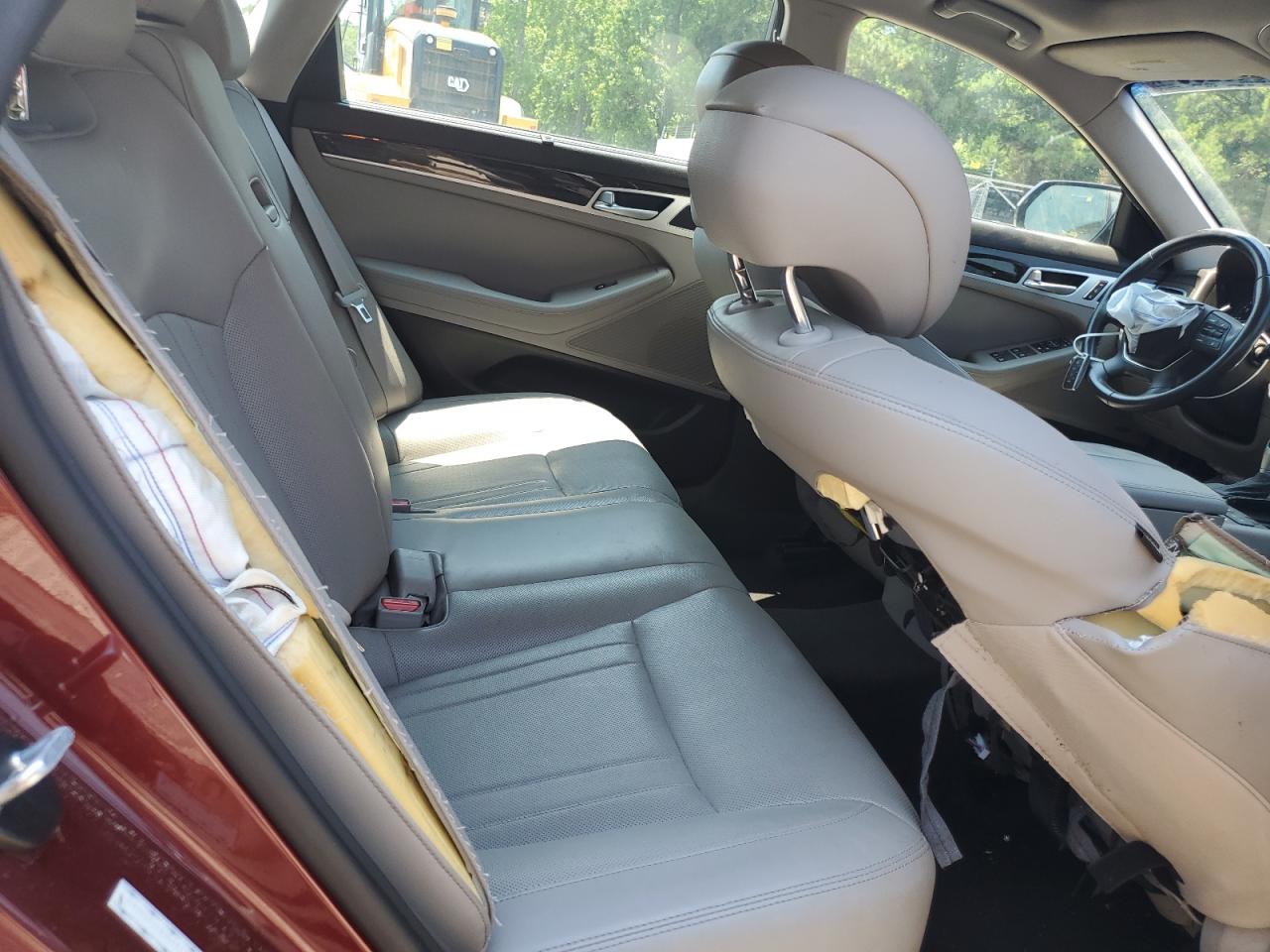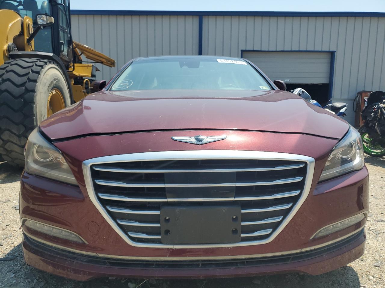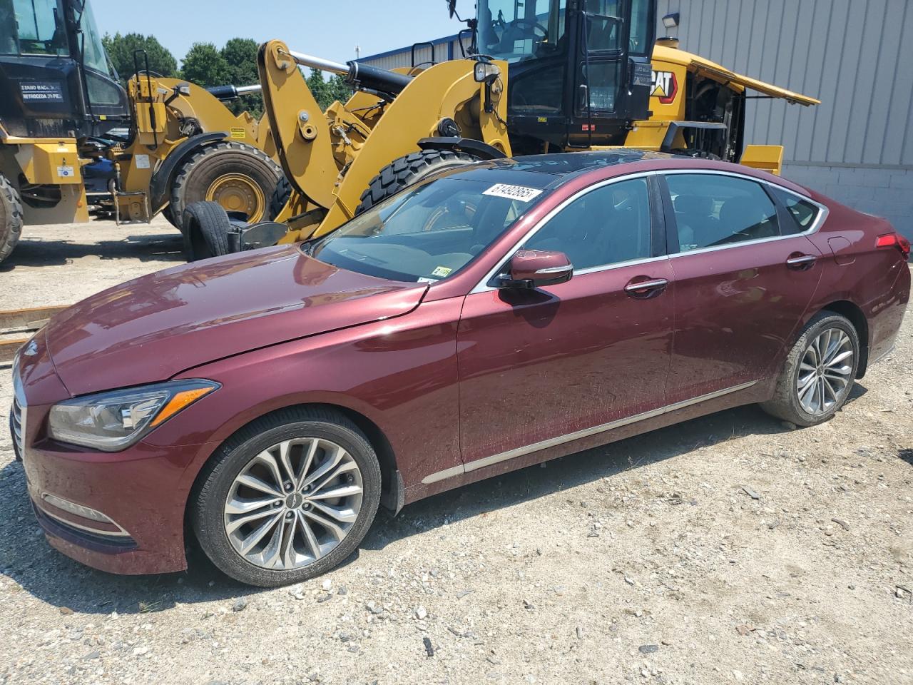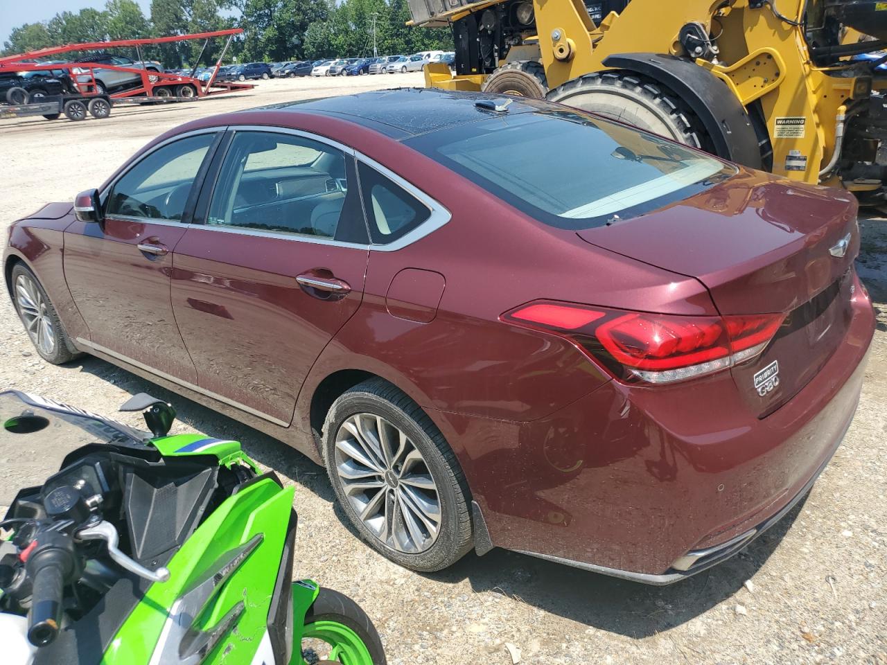 FairThe 2017 Genesis G80 BASE is burgundy with significant front-end damage and a damaged top/roof, indicating a 'Run & Drive Verified' start. The car shows visible damage to the front end with significant body panel damage. The interior shows moderate signs of wear, with possible airbag deployment. The wheels appear to be intact. The lights and glasses are damaged.