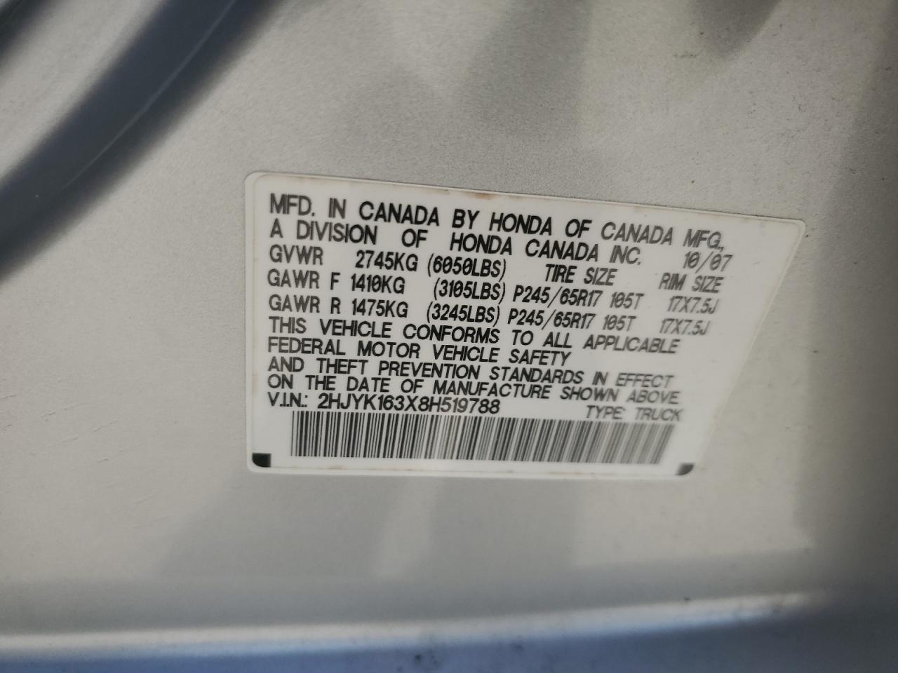 FairThe silver 2008 Honda Ridgeline has sustained damage primarily to the SIDE and FRONT END. The vehicle has a Run & Drive Verified start code. The exterior condition is assessed as fair with body panel damage, and the interior condition is also fair with apparent damage. The wheels and lights appear intact. The vehicle is drivable but requires repairs. The airbags have deployed.