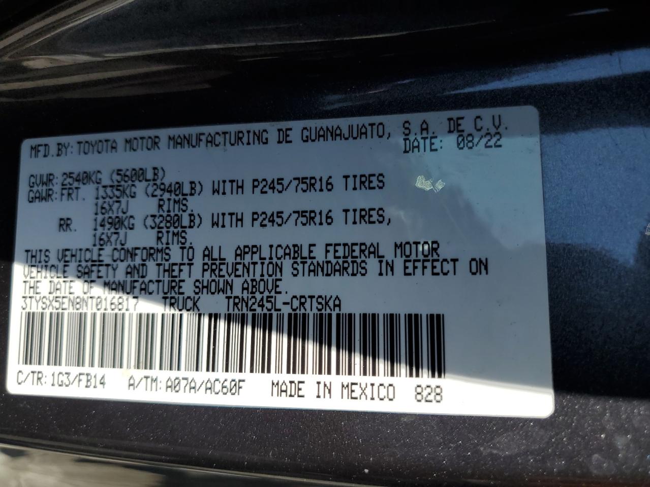 FairThis is a damaged 2022 Toyota Tacoma with front-end damage. The vehicle is gray. The primary damage is to the front end, and the secondary damage is noted as 'no damage.' The images show damage to the front of the vehicle, including the front panel, headlight, and possible structural issues. The interior appears to have airbag deployment, indicating a collision. The wheels seem to be intact. The glass appears to be in good condition. The car's overall condition is 'Fair'. The interior condition is 'Fair' due to the airbag deployment and possible interior damage. The vehicle is likely drivable with some repairs.