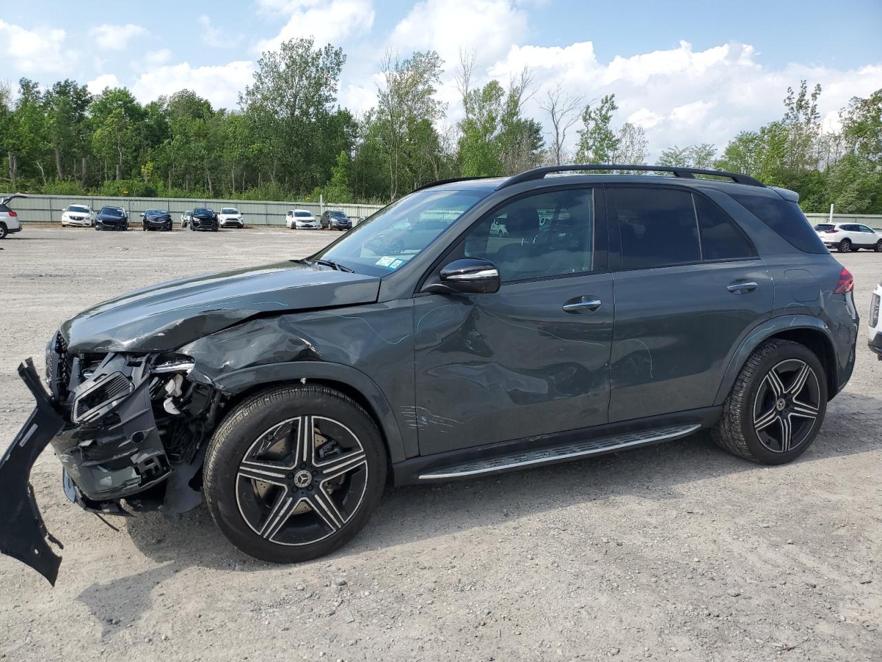 FairThis is a damaged 2025 MERCEDES-BENZ GLE 450E 4, gray in color. The vehicle has sustained front-end and side damage. It's a Run & Drive Verified vehicle. The overall state is assessed as Fair due to the extent of the damage. The damage category is Body.