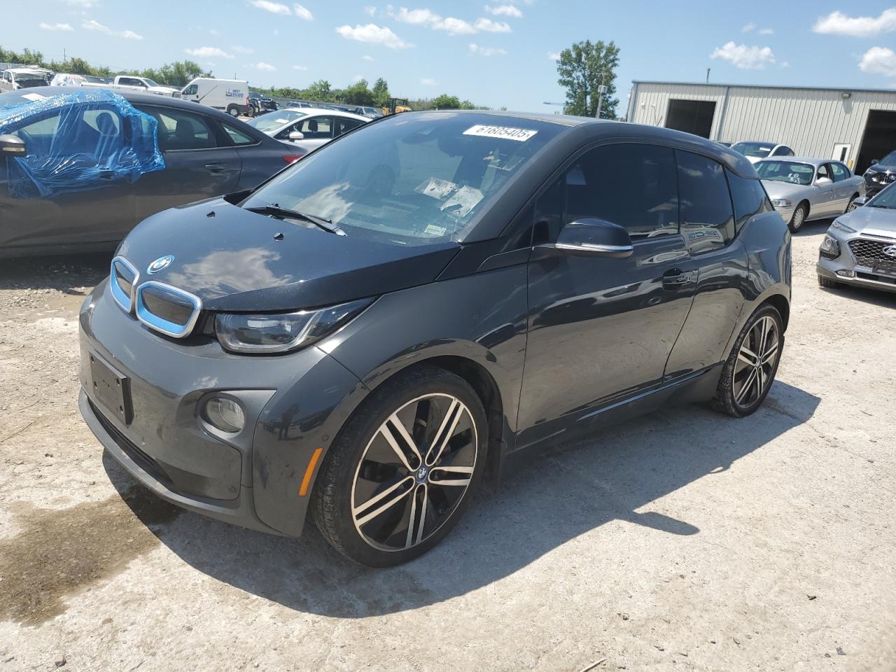 Fair2015 BMW i3 REx. This vehicle has suffered front-end damage, categorized as body damage. The car is black and the start code indicates it's a 'Run & Drive Verified' vehicle. Despite the body damage, the interior appears to be in good condition. The wheels and lights seem intact. The glasses look fine.