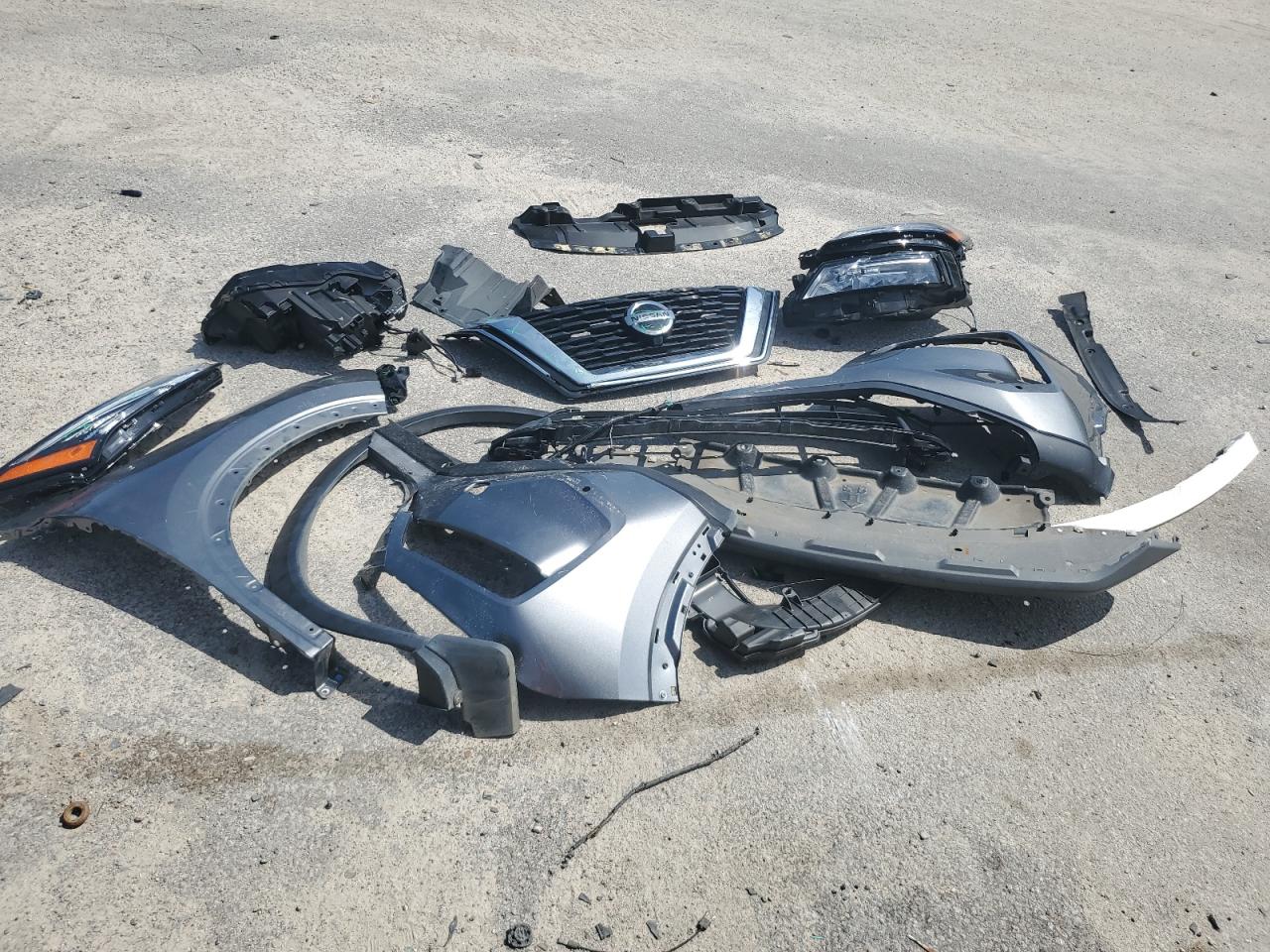 The primary damage is to the front end, with the bumper, grille, and potentially other front-end components damaged. The wheels appear to be intact. No other significant damage is visible.