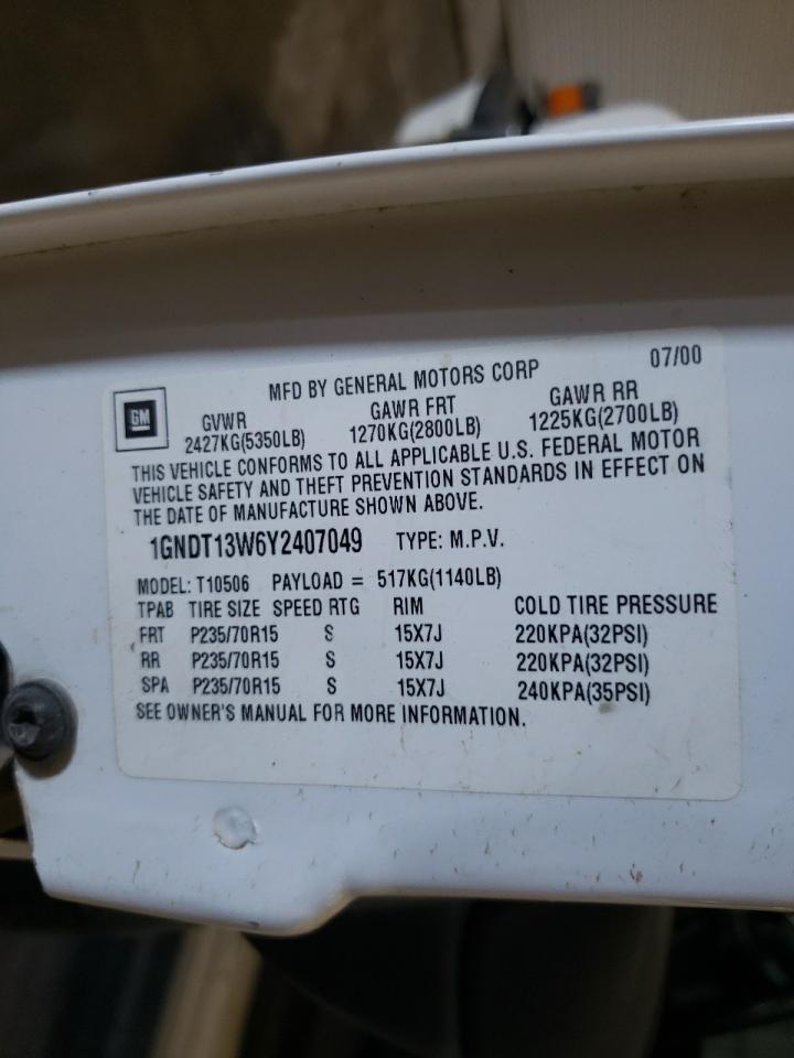 FairThis is a 2000 CHEVROLET BLAZER with front-end and rear-end damage. The vehicle is white. It has been verified as run and drive.