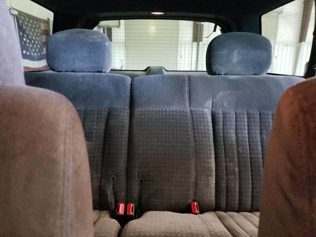 The vehicle has significant front-end damage, including a damaged hood and front fascia. The rear end also shows damage. Interior condition shows wear and tear consistent with age.