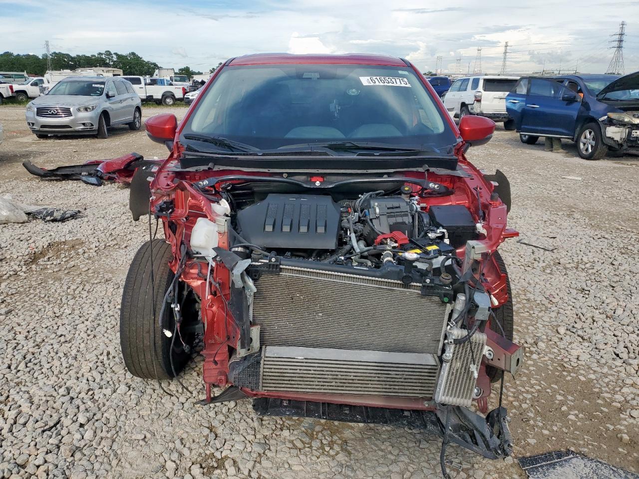 The vehicle sustained front-end damage, with significant impact visible. The car is red. The glass and wheels appear to be in good condition.