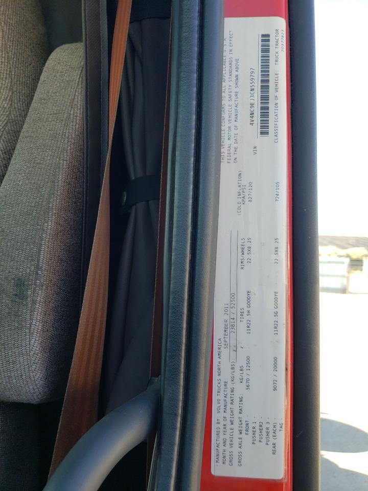 GoodThis is a red 2012 VOLVO VNL truck, in run and drive condition. The primary damage includes minor dents and scratches, with no secondary damage. The wheels and lights appear to be in good condition. The interior shows some wear and tear. Airbags status is unknown.