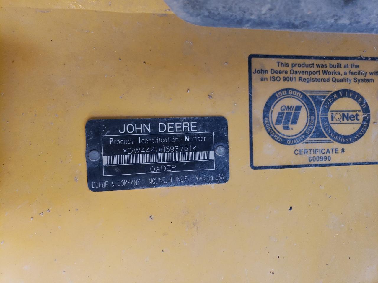 The JOHN DEERE TRACTOR sustained significant engine damage, resulting in a 'BURN - ENGINE' designation. The body panels show moderate damage. The interior condition reflects moderate damage. The wheels appear to be fine.