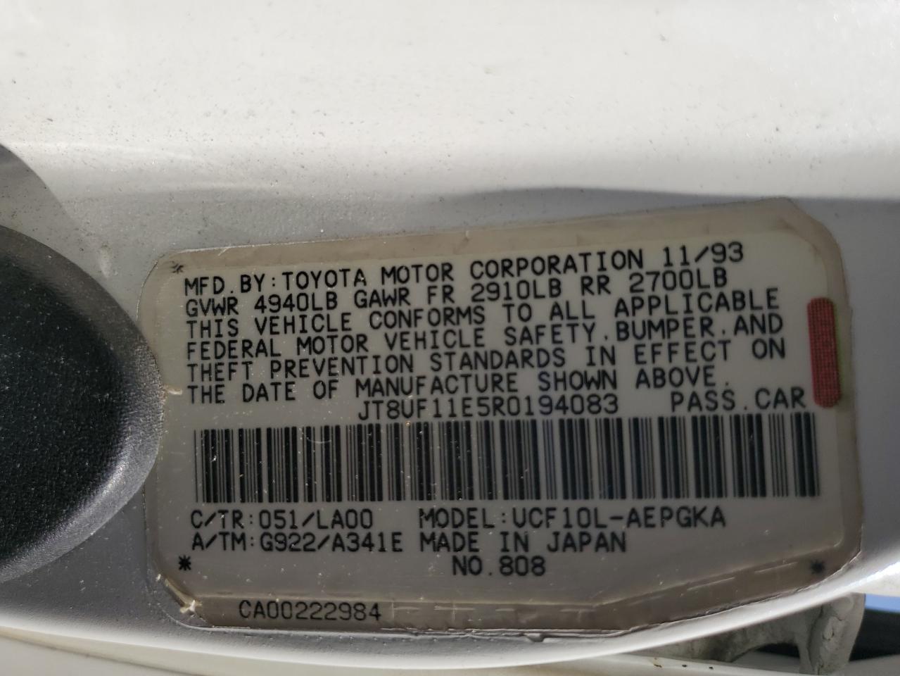 JT8UF11E5R0194083Final Bid