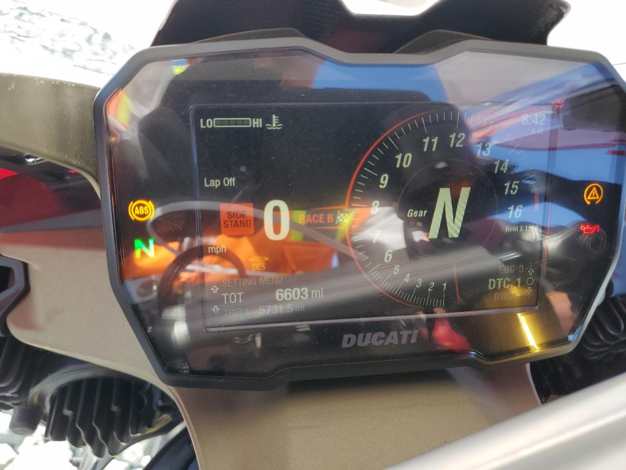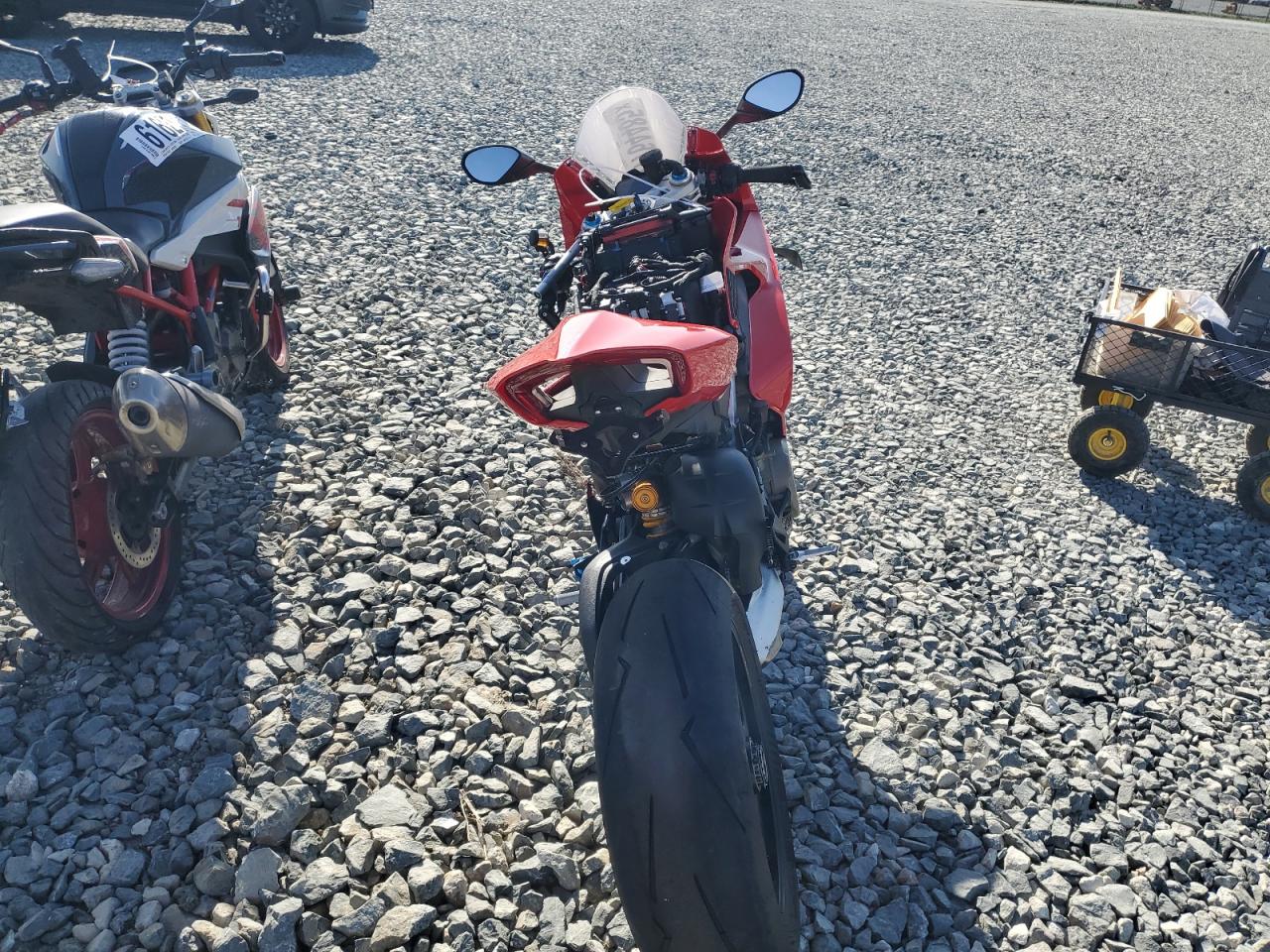 FairThe DUCATI PANIGALE V 2024, a red sportbike, shows signs of significant damage, primarily on the side, with partial repair indicated. The motorcycle appears to have sustained damage to its body panels, suggesting a 'Body' damage category. The interior also shows moderate damage. The vehicle's current state indicates a need for repair, potentially affecting its drivability.