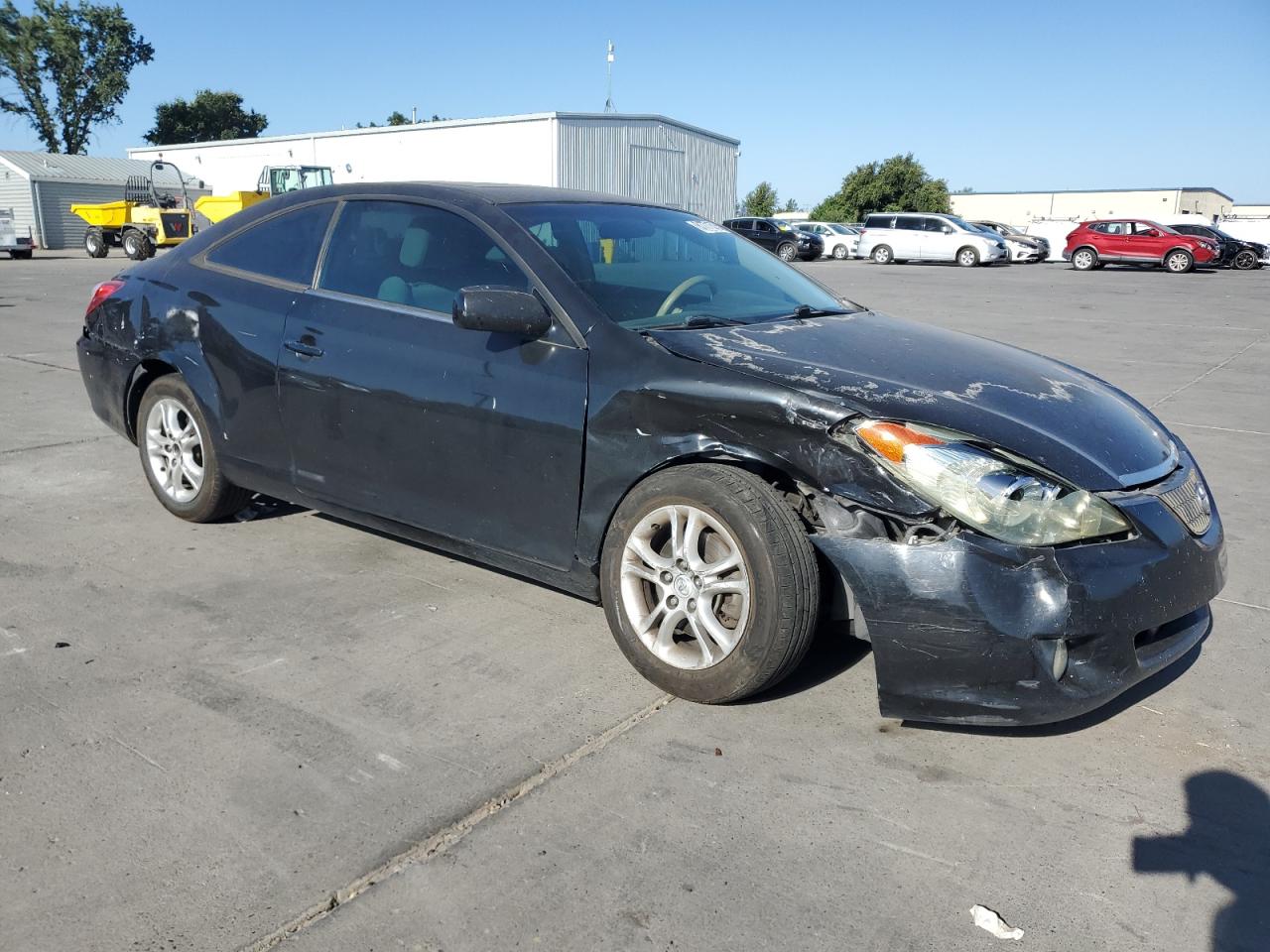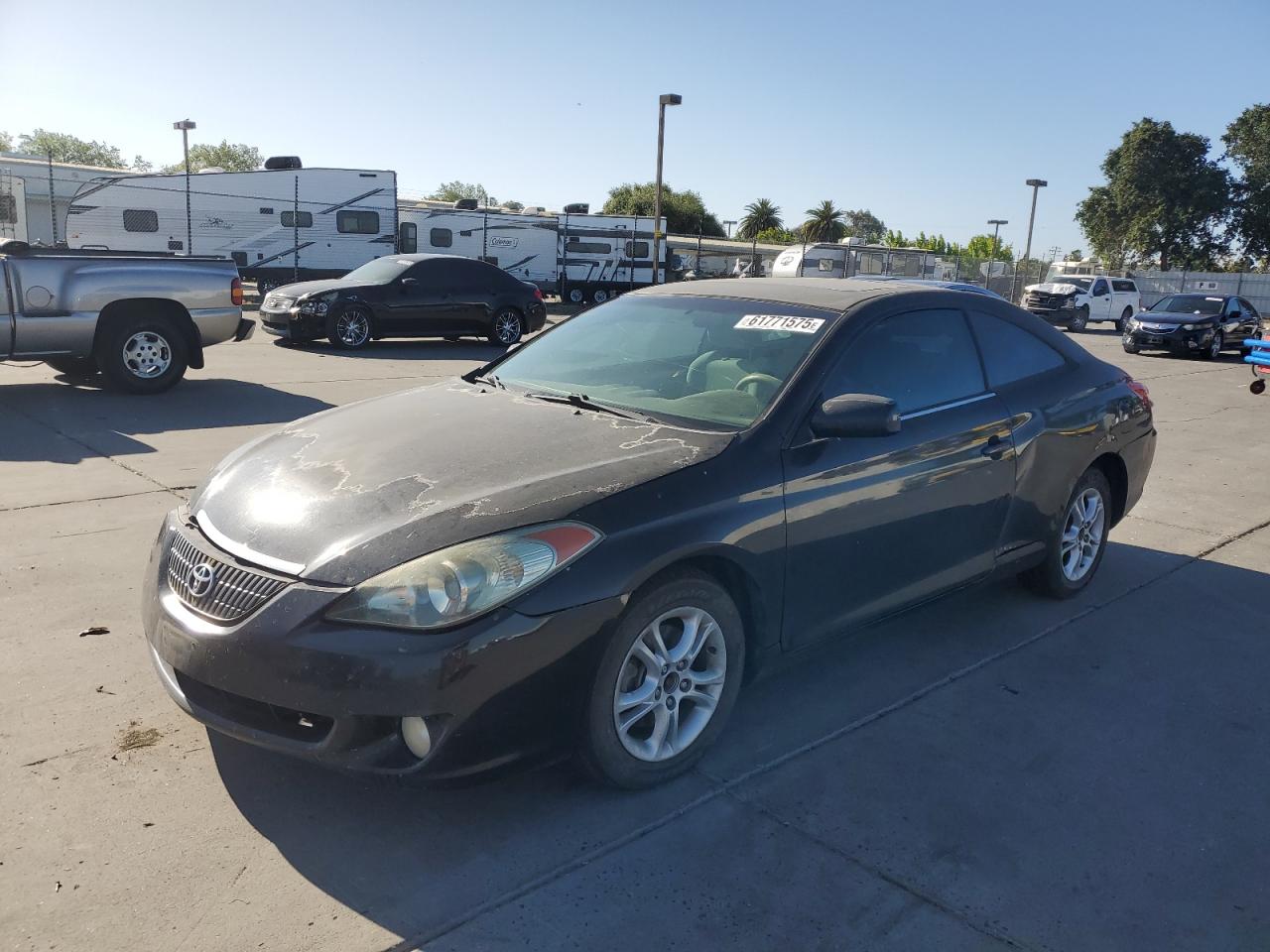 FairThis is a 2006 Toyota Camry Solara, presenting with significant damage. The front end exhibits severe impact damage, with compromised body panels and potential structural issues. The rear end also shows damage. The black exterior displays visible wear and tear. The interior condition reflects a fair state, suggesting wear. This vehicle requires considerable repairs. The airbags may have deployed.
