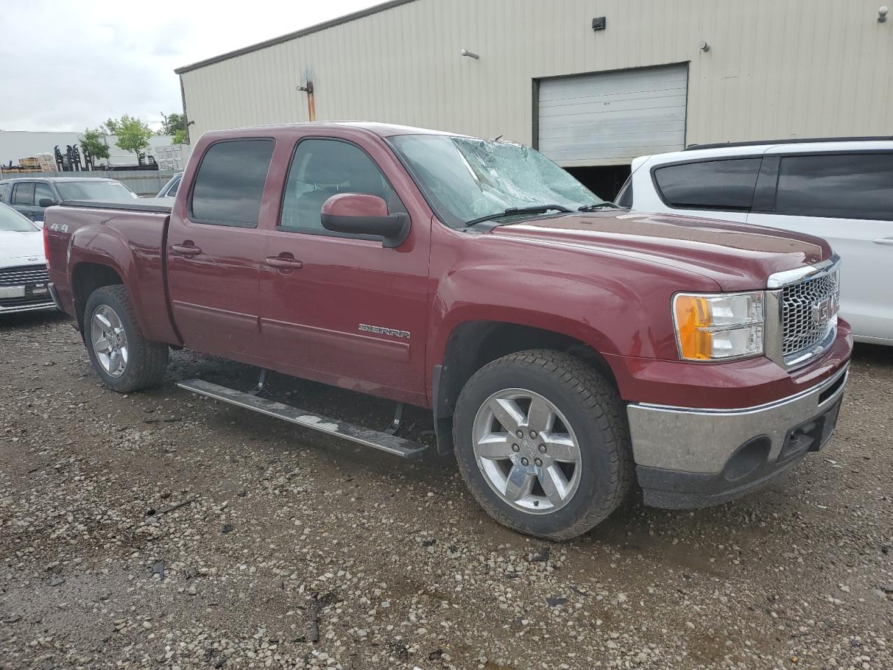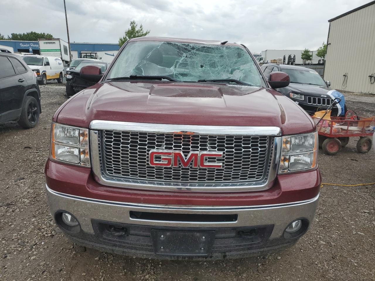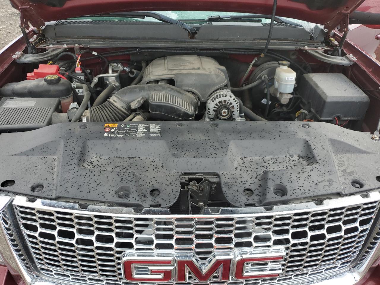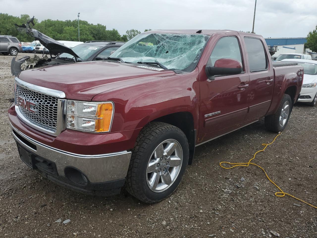 FairThe 2013 GMC Sierra 1500 is a maroon-colored pickup truck with significant damage. It is a 'Run & Drive Verified' vehicle. The primary damage includes a damaged top and roof, and secondary damage consists of minor dents and scratches. The windshield is severely damaged. The interior shows wear and tear, with the airbag status unknown.
