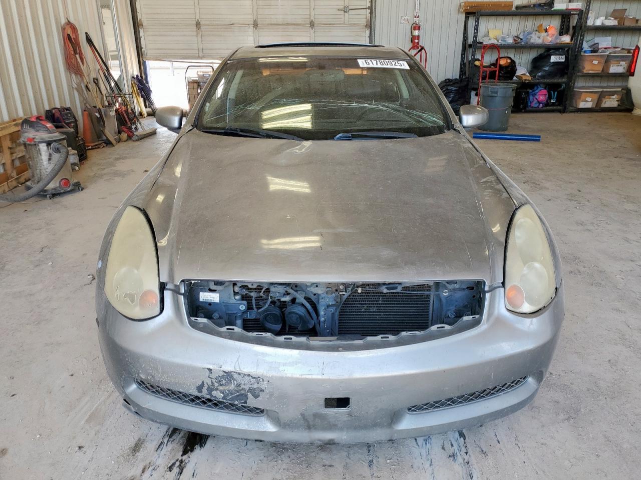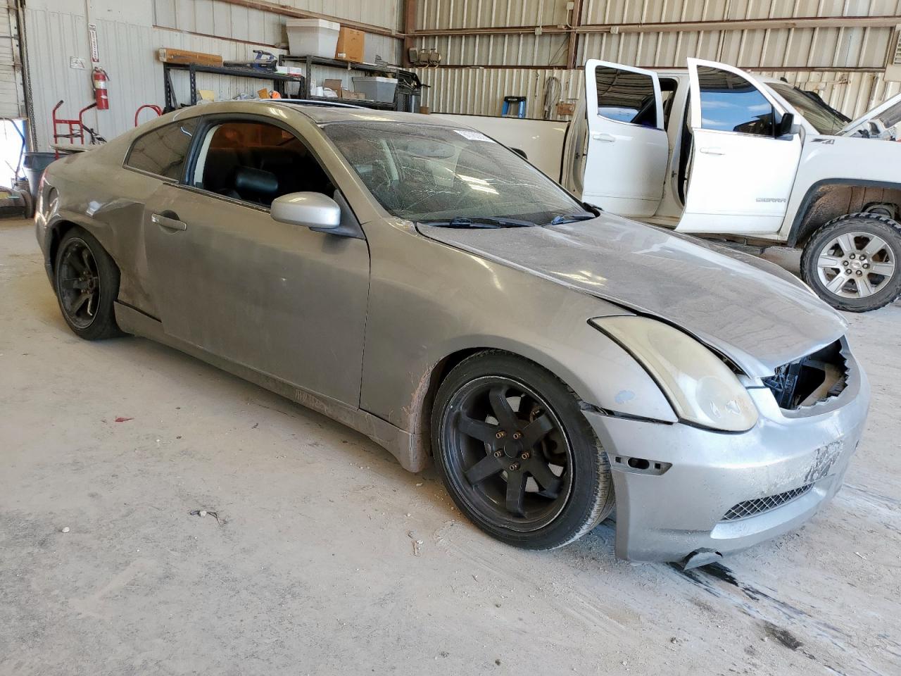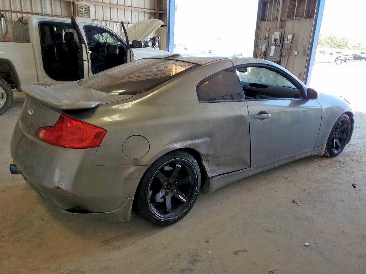 FairThis 2005 INFINITI G35 in gray color has sustained significant damage, particularly to its body panels and side due to hail. The vehicle's Run & Drive status is Verified. The exterior shows considerable wear, including dents and damage. The interior is showing significant wear and tear with torn seats. The wheels appear to be functional. The lights and glasses seem to be intact, but the overall condition is indicative of a vehicle that requires repair. The airbags condition is not clear.