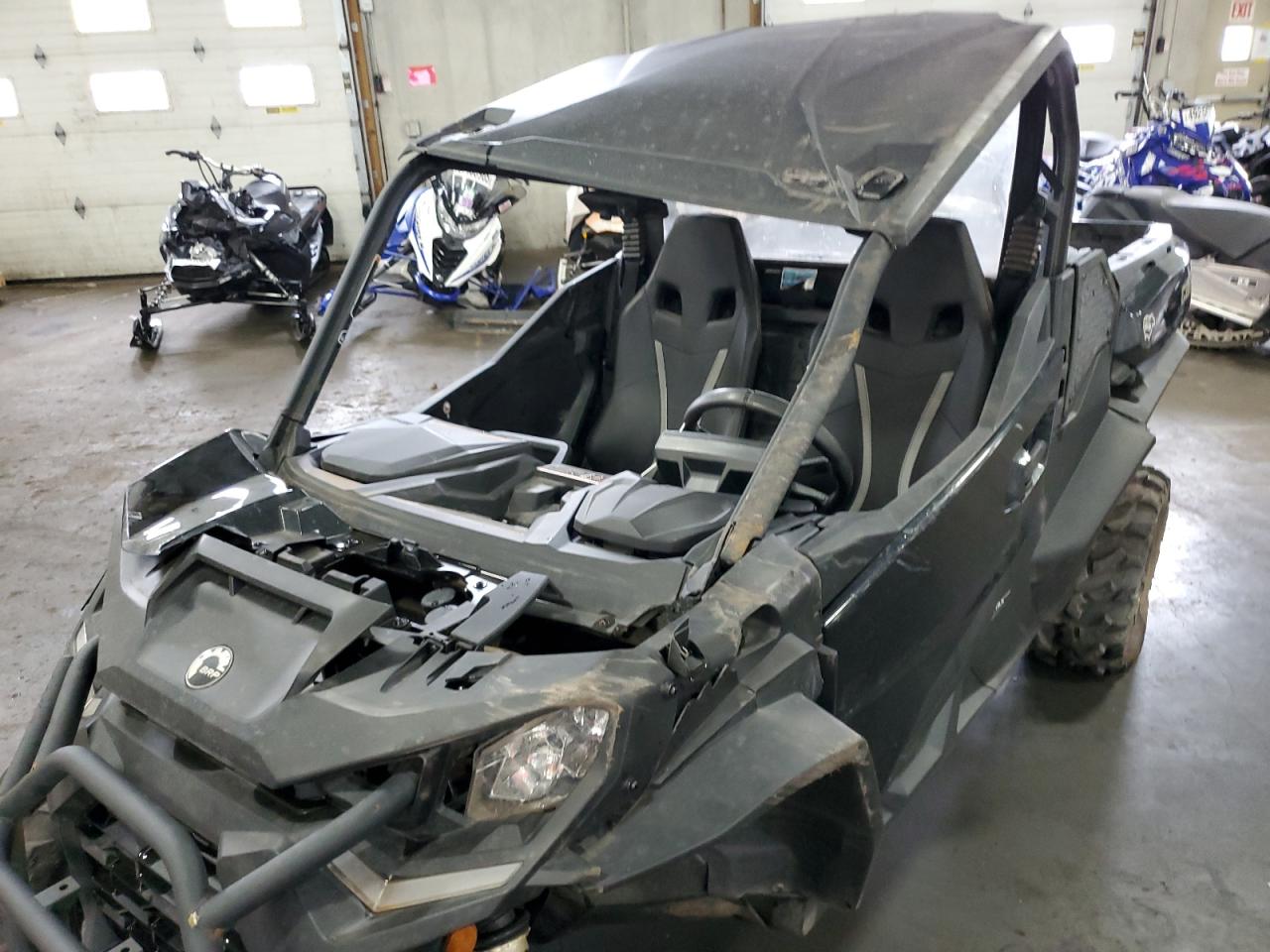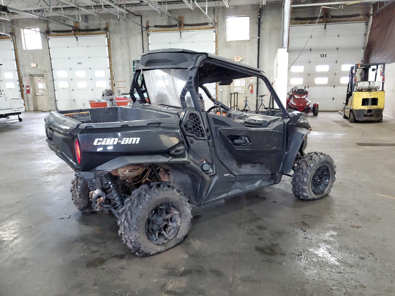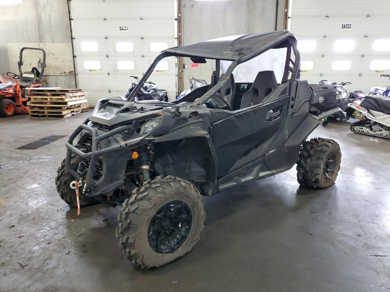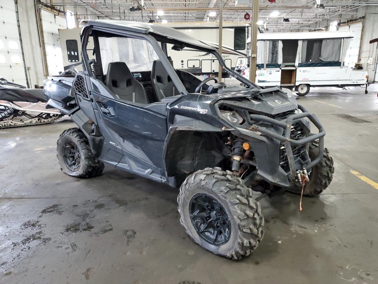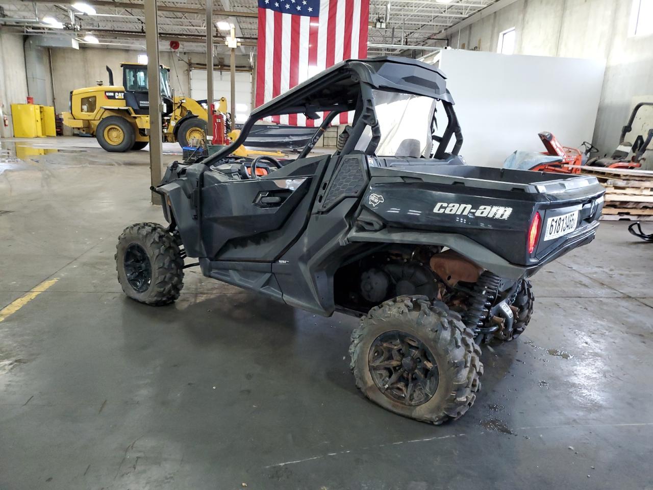 FairThis is a black 2023 Can-Am Commander, which has sustained rollover damage. The vehicle is listed as Run & Drive Verified. The primary damage is from the rollover, with no secondary damages. The vehicle's body panels show signs of damage. Wheels, lights, and glasses are present, but the condition requires inspection. The interior appears to have minor wear and tear. The vehicle has sustained damage to the body panels due to a rollover.