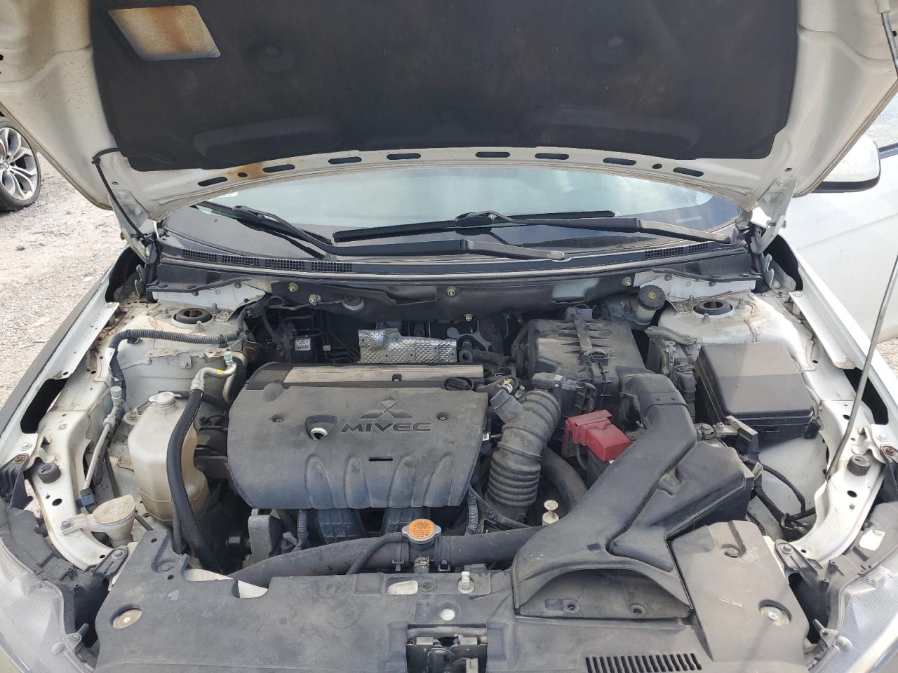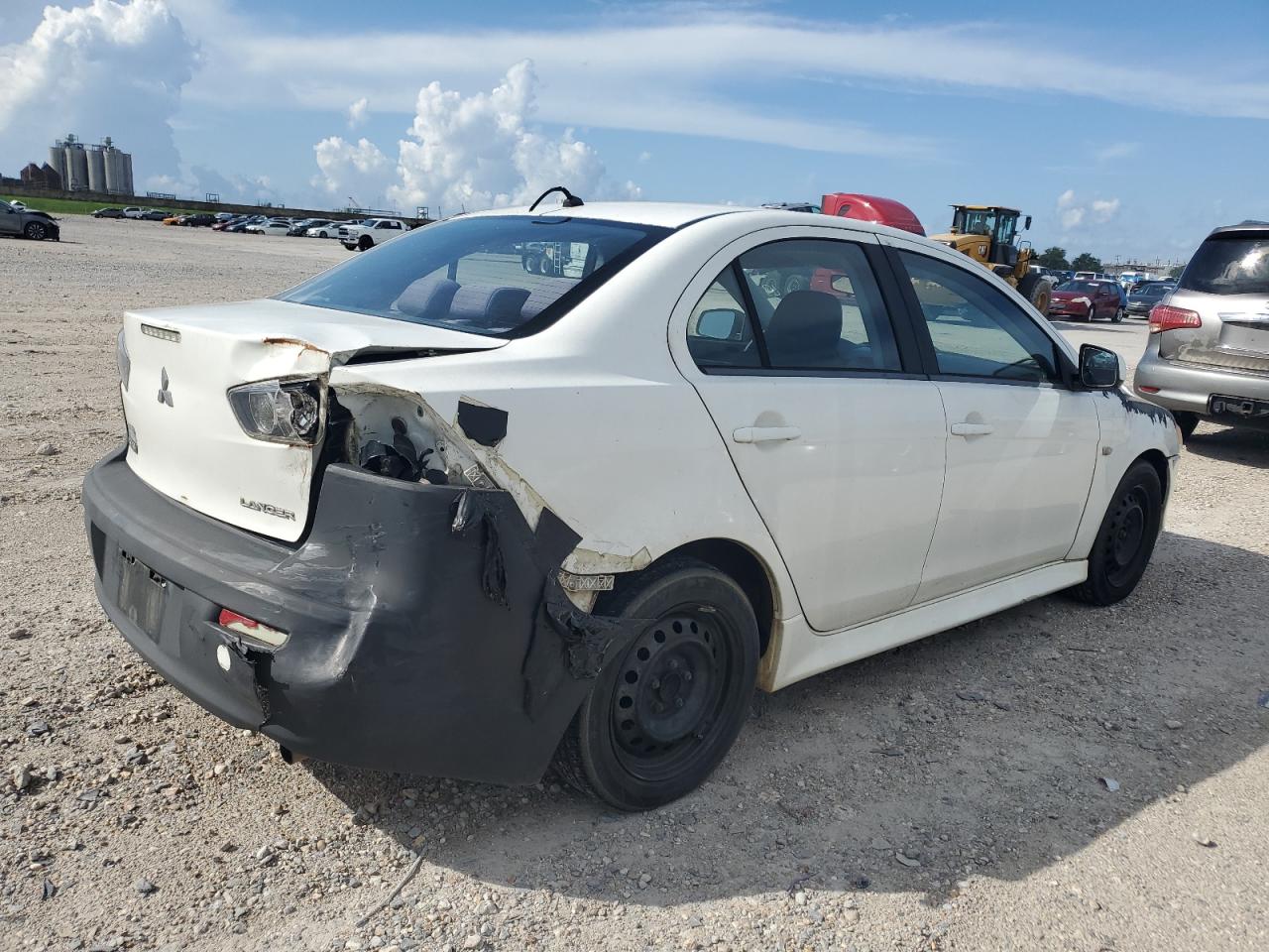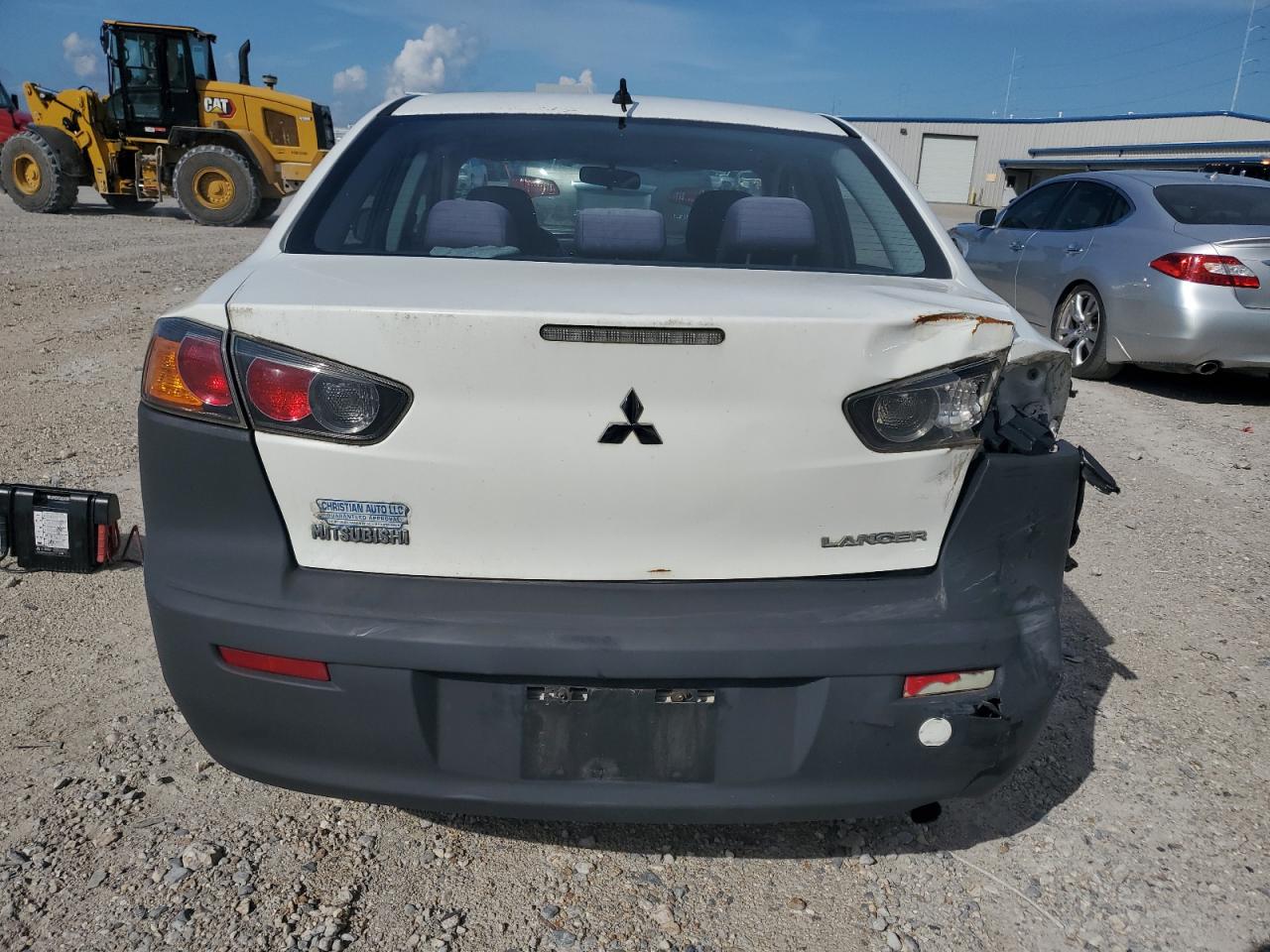 FairThis 2013 Mitsubishi Lancer ES shows significant rear-end damage, impacting the bumper and potentially the body panels. The white paint is likely affected in the damaged areas. Despite the damage, the car is reported as Run & Drive Verified. The interior shows wear and tear. Overall, the car is in fair condition, needing repair.