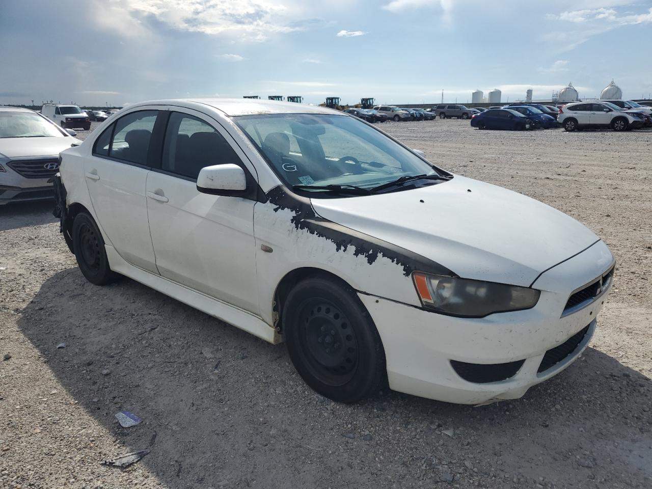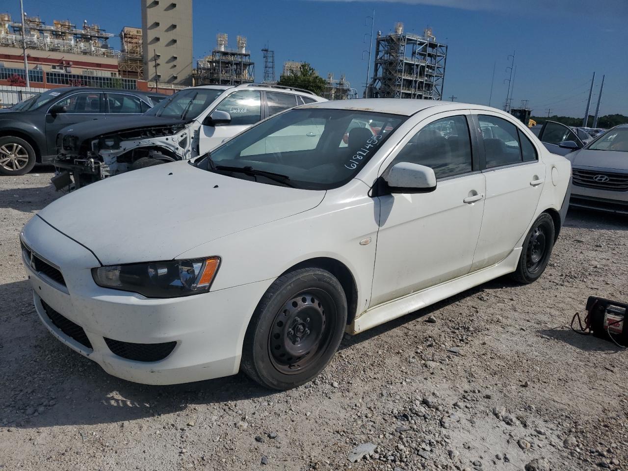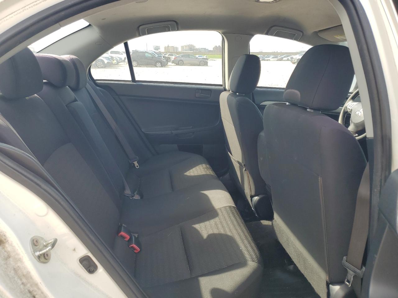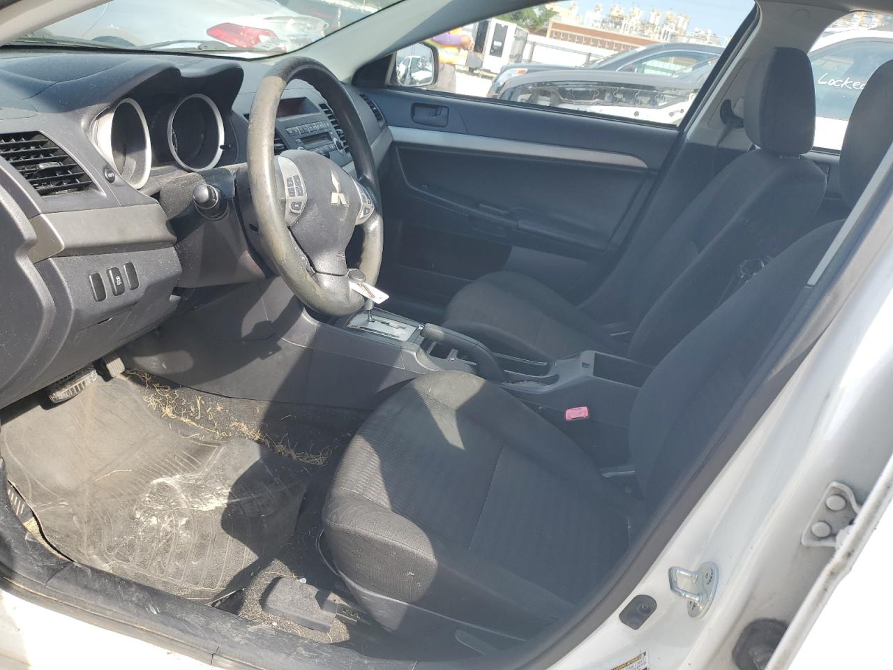 FairThis 2013 Mitsubishi Lancer ES shows significant rear-end damage, impacting the bumper and potentially the body panels. The white paint is likely affected in the damaged areas. Despite the damage, the car is reported as Run & Drive Verified. The interior shows wear and tear. Overall, the car is in fair condition, needing repair.