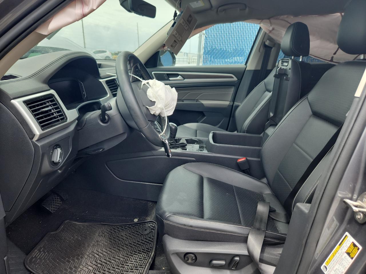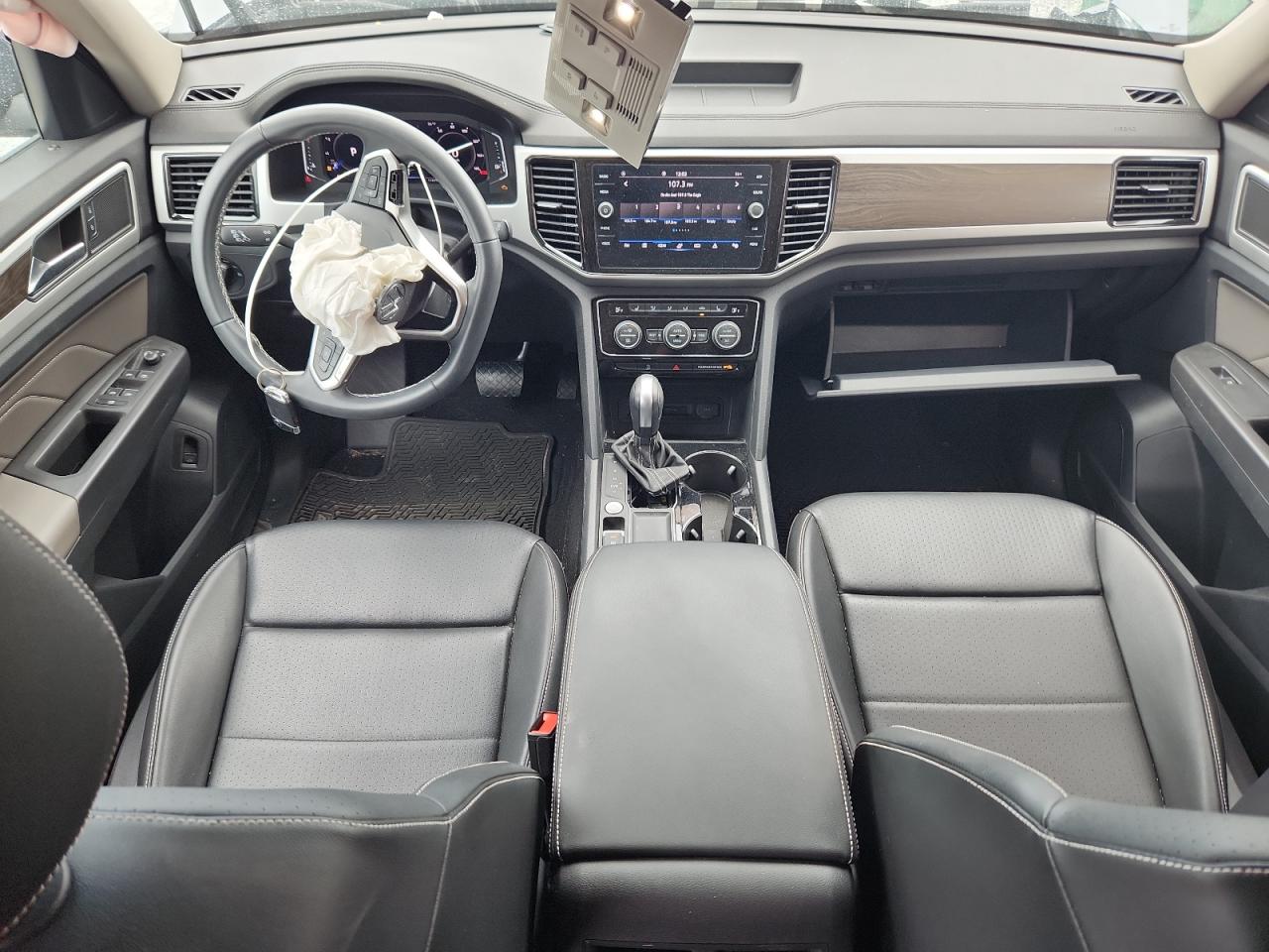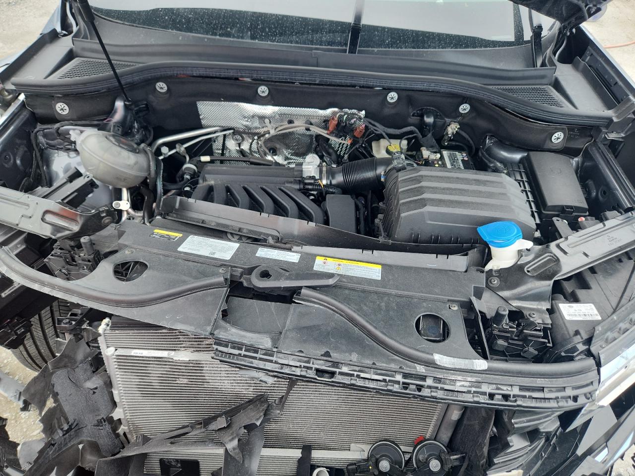 FairThe 2022 Volkswagen Atlas SE, a gray SUV, exhibits significant front-end damage. The vehicle is drivable. The front end has sustained extensive damage, including a crumpled front bumper, hood, and likely structural components. The wheels appear intact. The interior shows signs of airbag deployment and some damage, but is otherwise in decent condition. This Atlas SE is likely a candidate for repairs or salvage, depending on the extent of structural damage.
