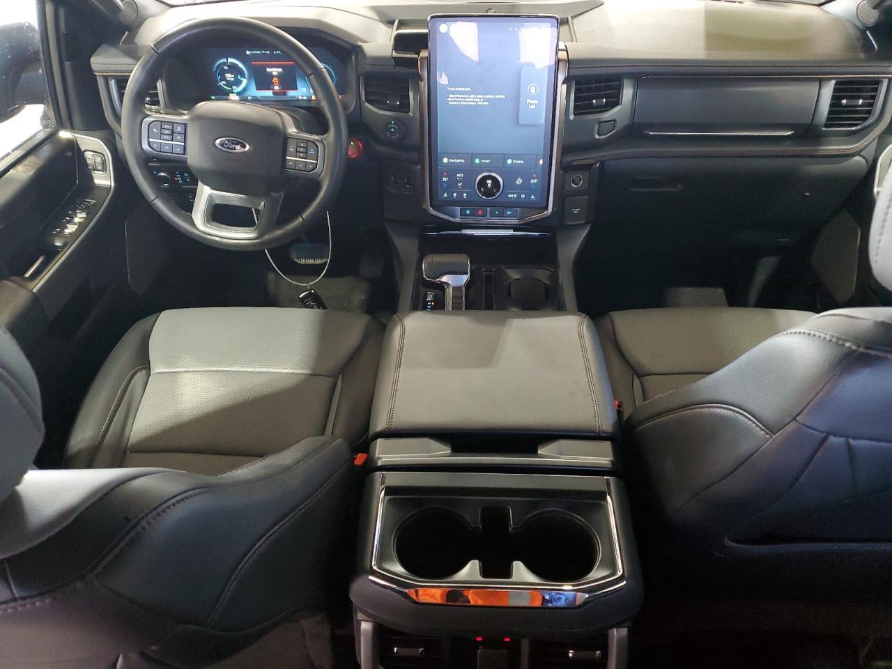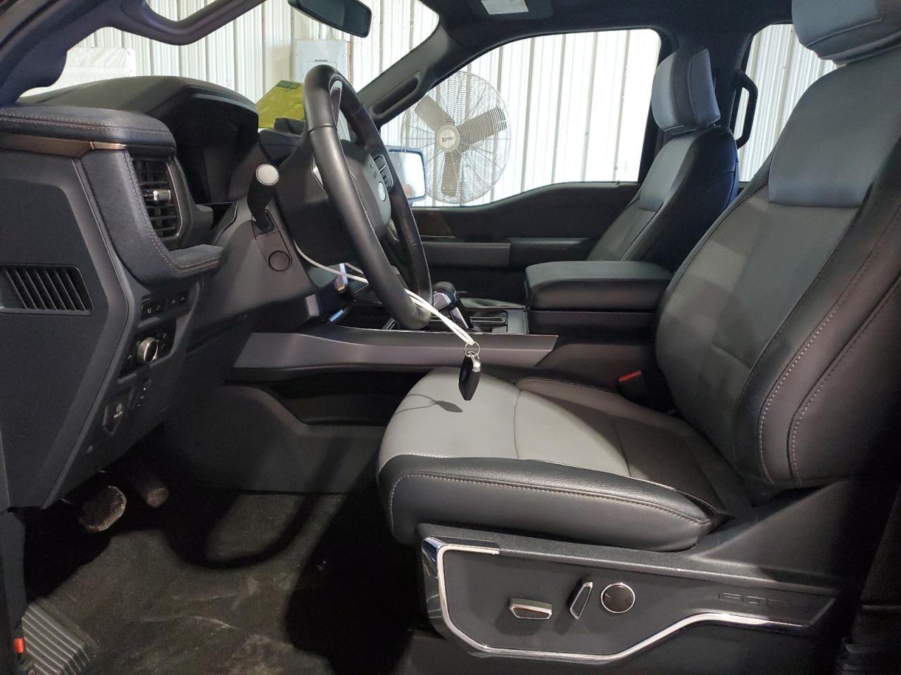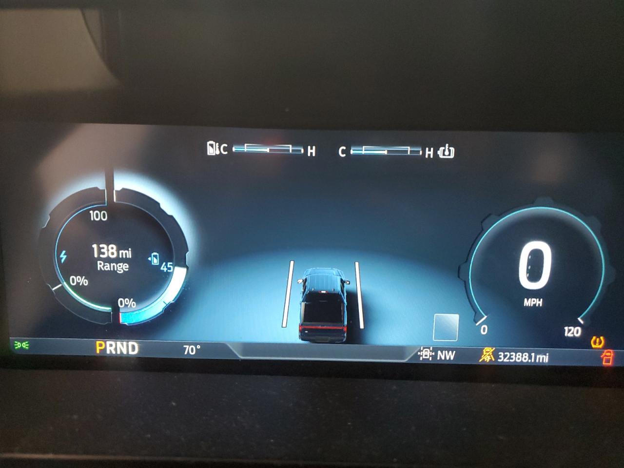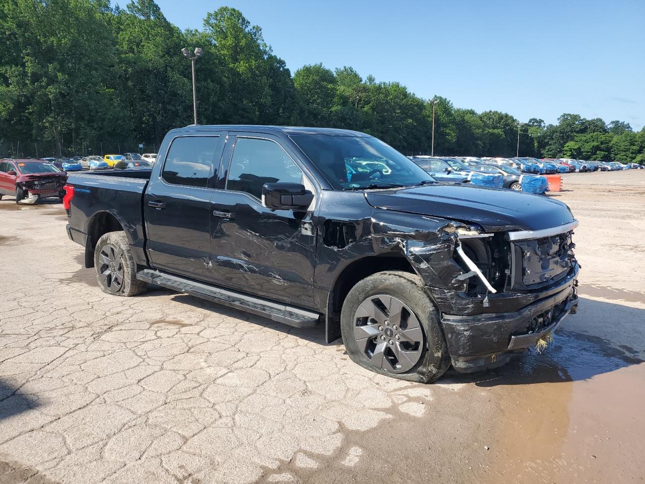 Fair2023 FORD F150 LIGHTNING, black, Run & Drive Verified. The vehicle has sustained front end and side damage. The front end exhibits significant damage, including the bumper, hood, and front panels. Side damage is also noticeable. Wheels appear damaged. The lights have sustained damage. The interior shows signs of use, with no visible airbag deployment. The car is drivable.