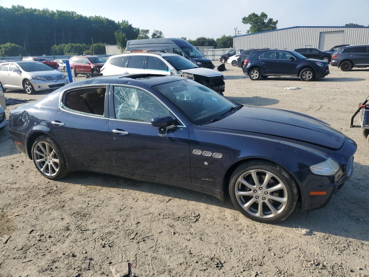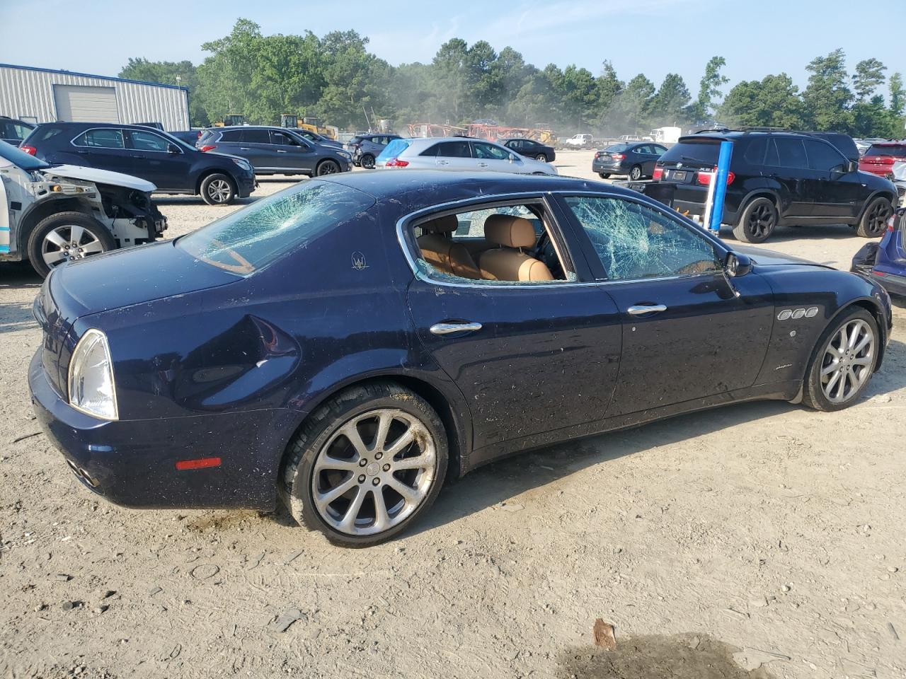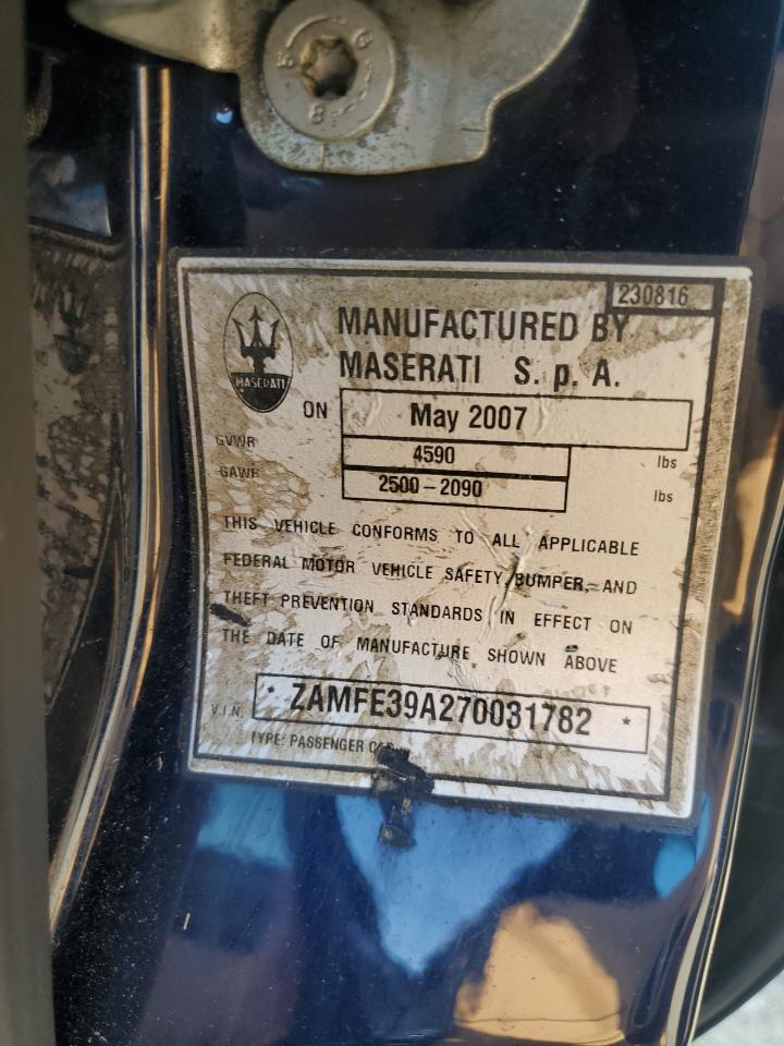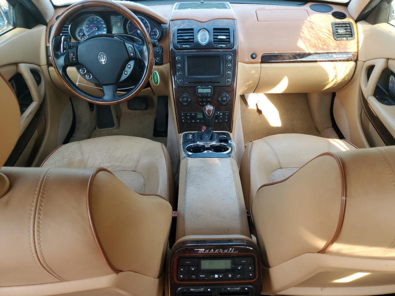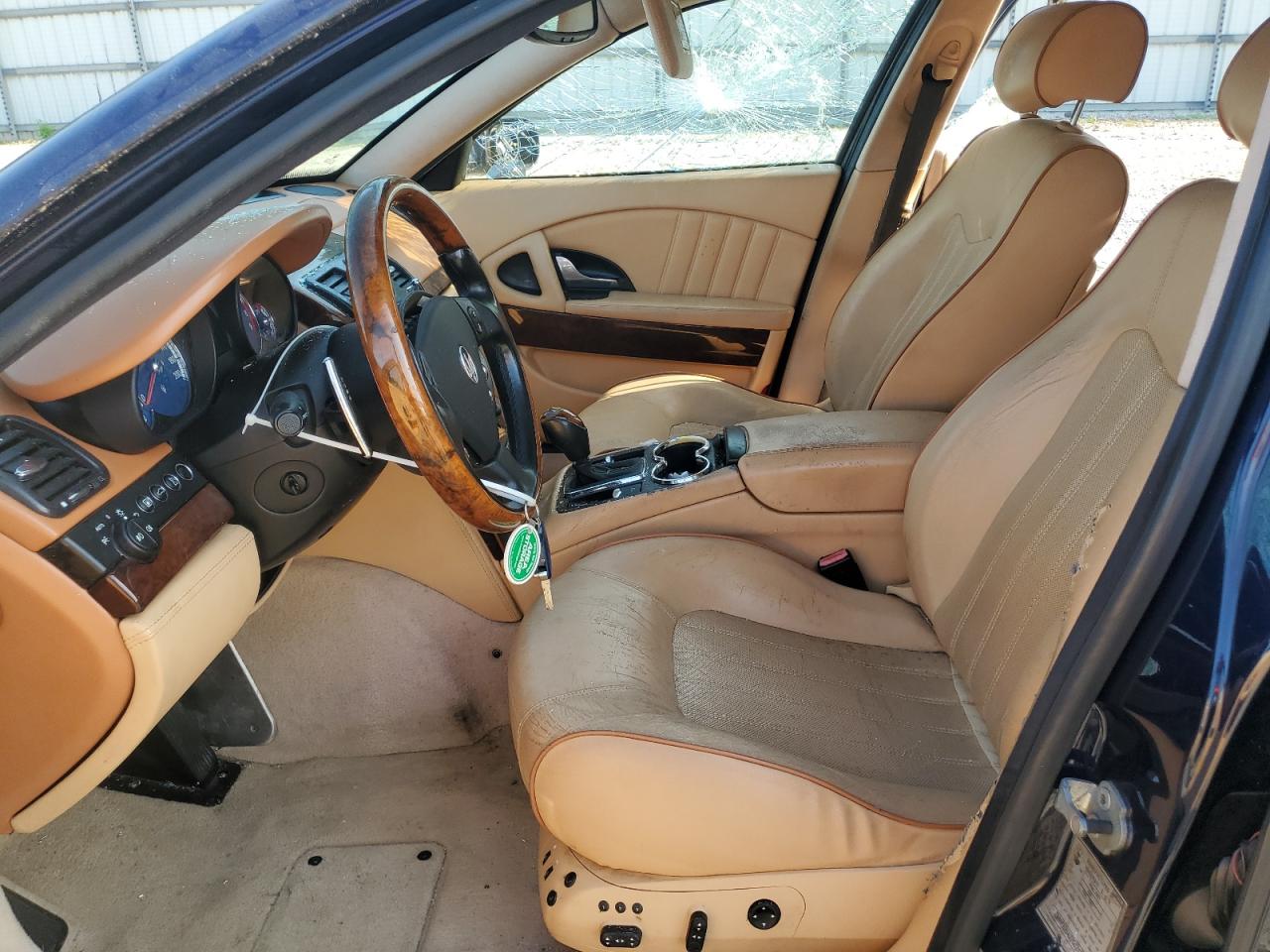 FairThe 2007 Maserati Quattroporte is a luxury sedan with clear signs of damage. The exterior is blue and shows significant visible damage, including broken glass in multiple locations and apparent body panel damage, indicating potential issues. Despite the condition, the 'Run & Drive Verified' code suggests it may still be drivable after repairs, with no damage to the wheels. Inside, the interior presents moderate wear and tear. The vehicle appears to have suffered both cosmetic and structural damage. The car's interior, featuring light-colored leather, shows wear and potential damage.