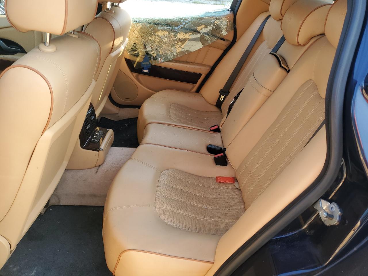 This Maserati Quattroporte has significant damage, primarily to the body and glass. Visible damages include broken glass, dents and damage to the body panels. Overall the interior shows moderate wear and tear.