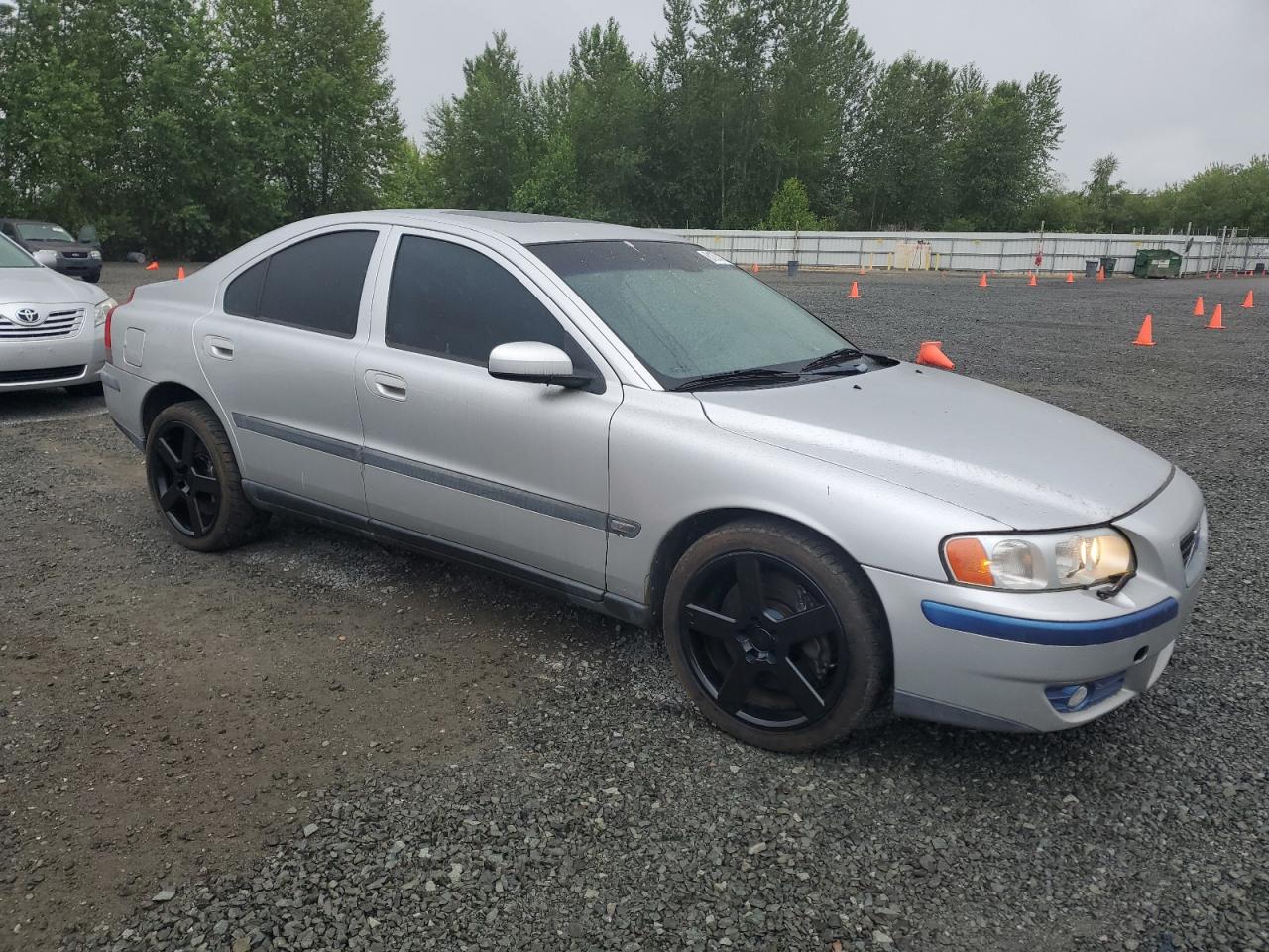 FairThe 2004 VOLVO S60 R, silver in color, presents with damage. The primary damage is to the side, and the secondary damage is to the front end. The car's condition suggests it is drivable but requires repair. The wheels appear intact, while the lights and glasses show signs of wear or damage. The car has Run & Drive Verified status. The car has body damage.