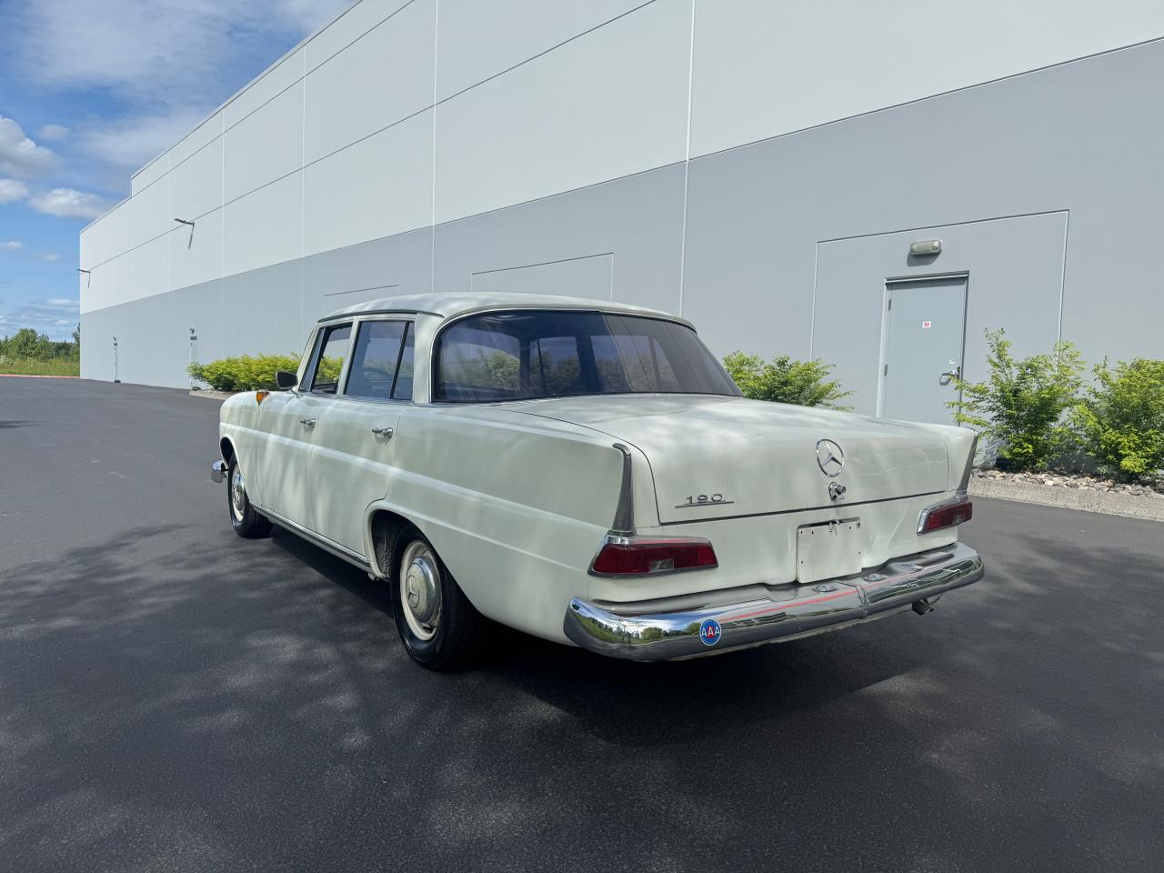 GoodThe 1965 Mercedes-Benz 190, presented in white, exhibits minor dents and scratches, indicating normal wear for its age. The car has a run-and-drive verification. The wheels, lights, and glasses appear to be in acceptable condition. The vehicle damage is categorized as 'Body' with cosmetic issues. The interior shows minor visible damage. The car is drivable.