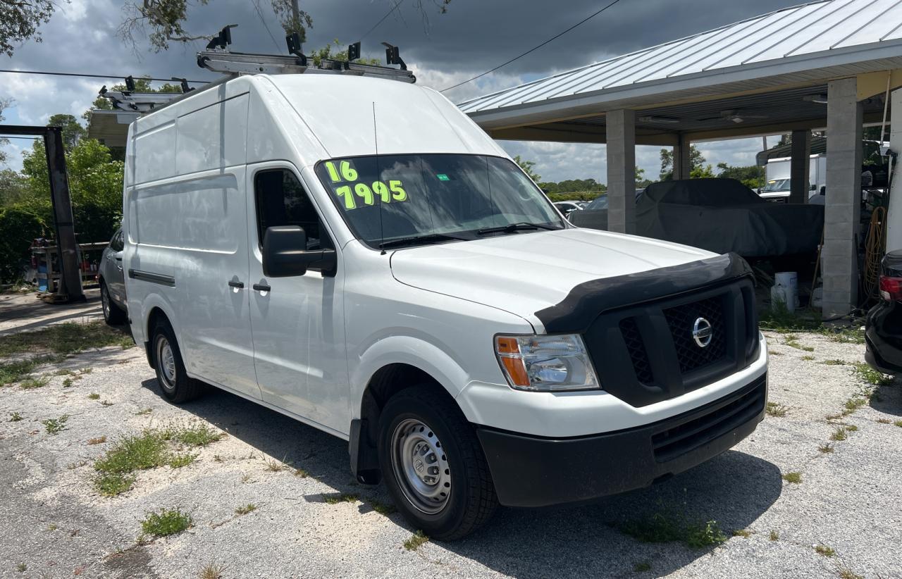 GoodThe 2016 Nissan NV 2500 S in white shows signs of minor dents and scratches, along with normal wear and tear, placing it in good condition. The vehicle is run and drive verified. The wheels appear to be in good condition, and the lights and glasses seem intact. The interior shows minor wear consistent with age and mileage.