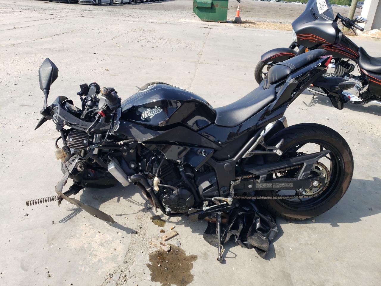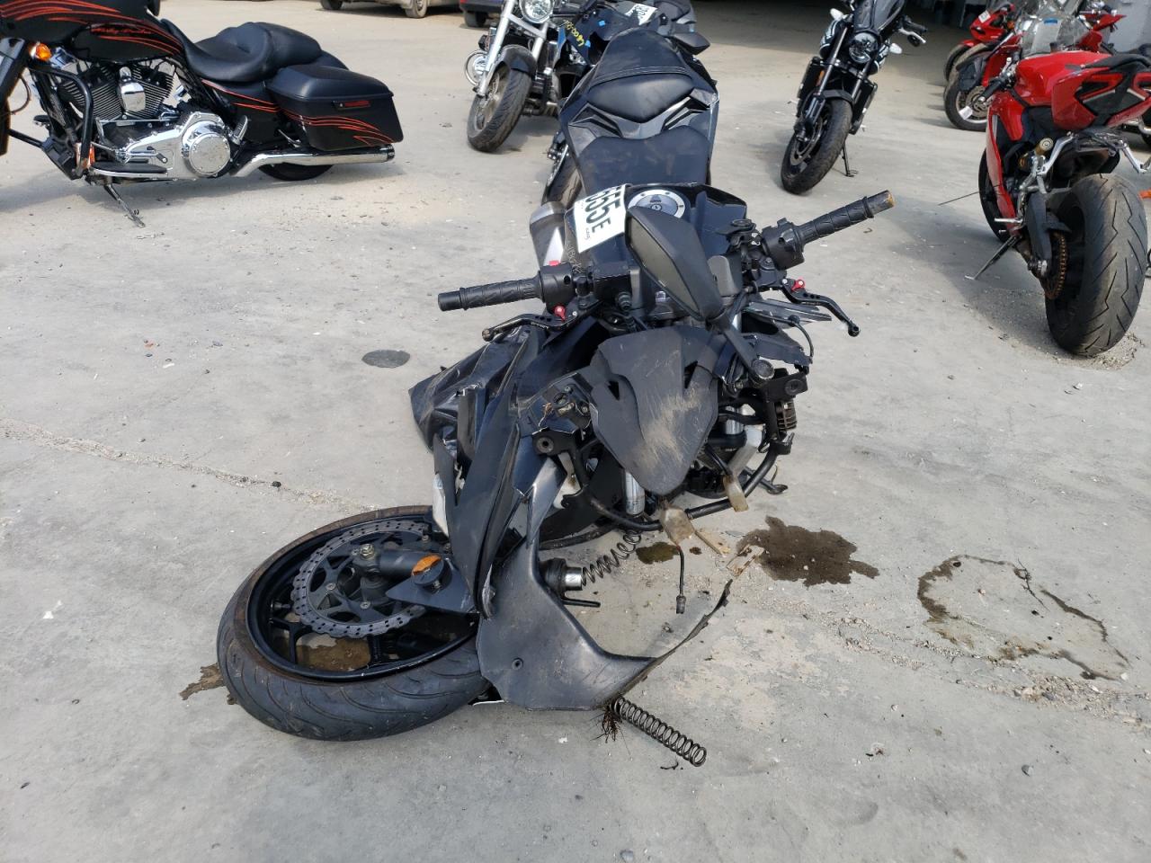 PoorThis is a heavily damaged 2013 KAWASAKI EX300 A motorcycle. The front end has sustained significant damage, including the front wheel, fairing, and handlebars. The primary damage is to the front end with secondary minor dents/scratches present. The motorcycle is black. Overall, the vehicle is in poor condition and requires considerable repair. The interior condition is fair, with possible damage. Given the extent of the front-end damage, the vehicle is likely not drivable without extensive repairs.